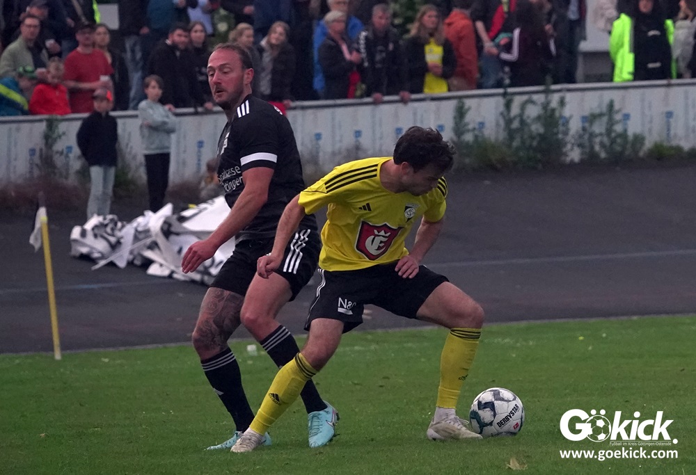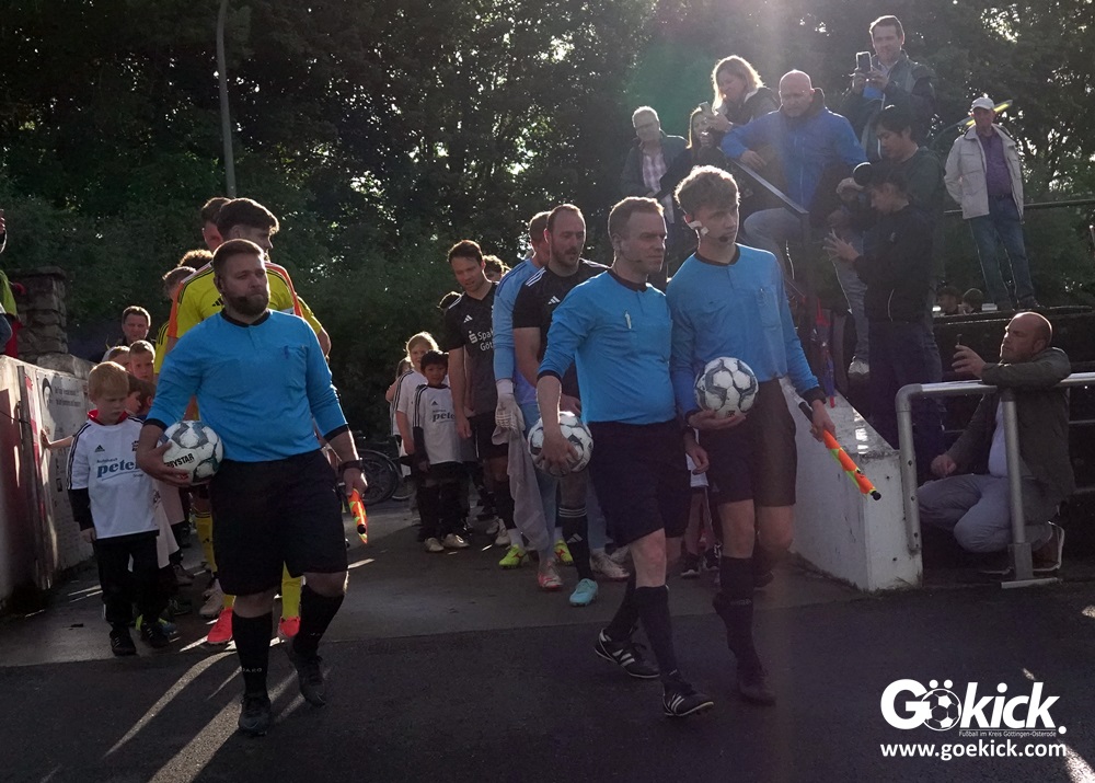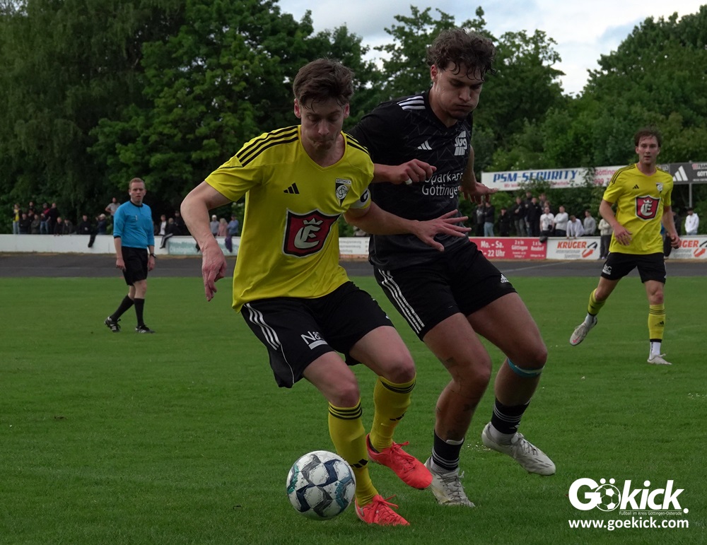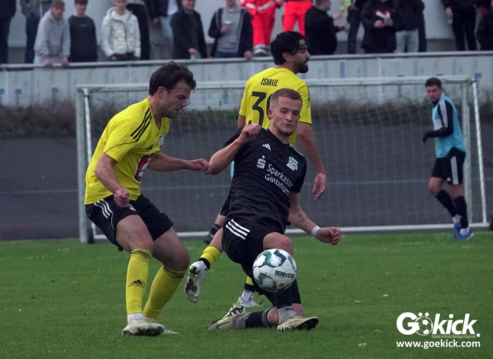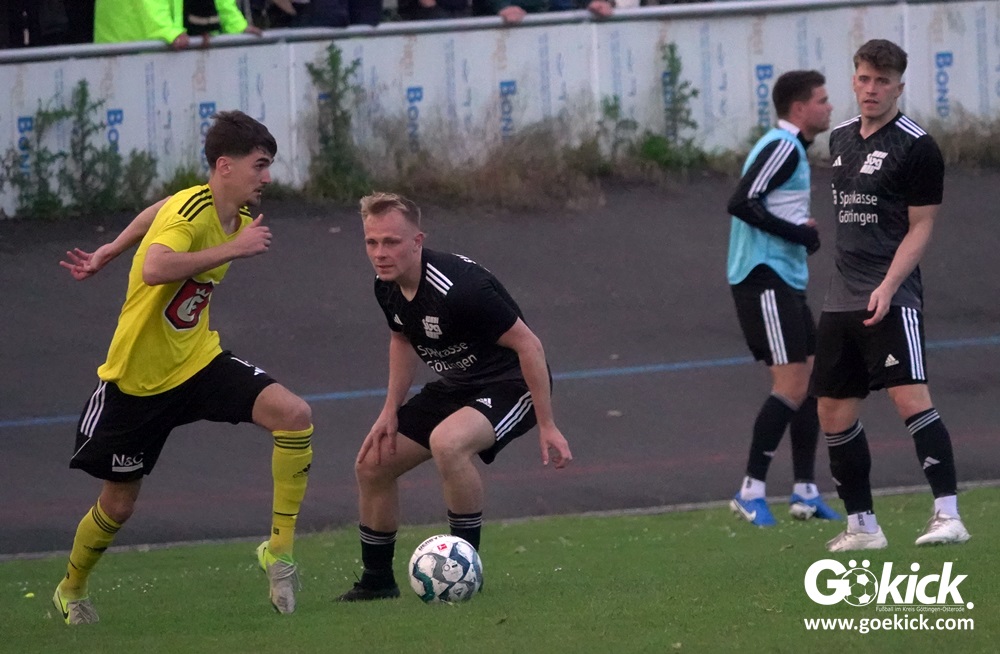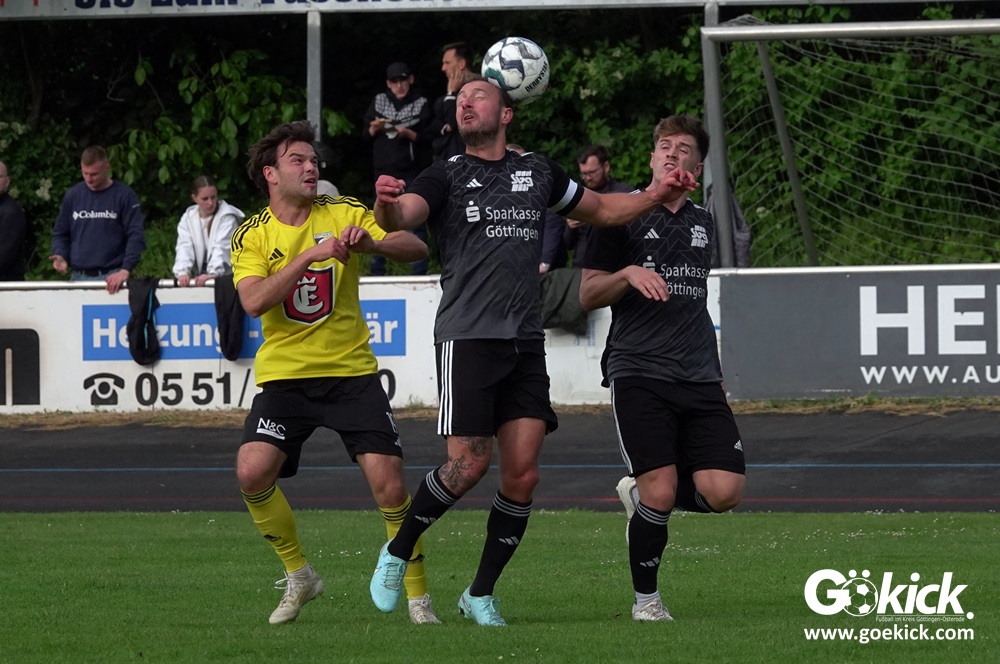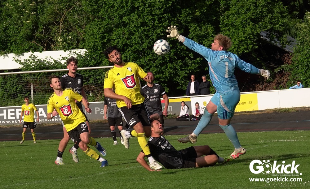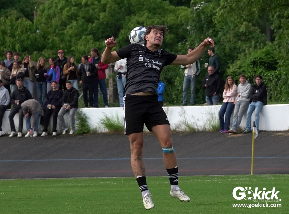 Pünktlich zum Anpfiff der Partie endete der Regen, der Göttingen am gesamten Tag im festen Griff hatte. Die SVG startete furios. Nach dem ersten Eckball von Janis Kniepen in der zweiten Minute köpfte Steffen Doll das Spielgerät mustergültig zum 1:0 in die Maschen des Gästetores. Doch fortan übernahm das Maschpark-Team die Regie über die Partie. SVG-Torwart Marvin Brelage war bis zur 39. Minute der Mann, der gemeinsam mit dem Aluminium des SVG-Tores mit seinen Paraden die SVG-Führung verteidigte. Dann war auch er machtlos, als 05-Kapitän Jannis Wenzel nach Vorlage von Jannes Paul Gremler den Ball zum längst überfälligen Ausgleich aus zwei Metern über die Linie drückte.