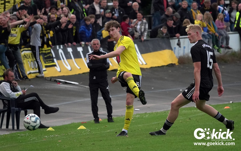 Nur sechs Minuten waren im zweiten Durchgang gespielt, als der ehemalige SVG-Spieler Ali Ismail – er war im Winter von Eintracht Northeim zu 05 gewechselt – die Führung für die Gäste erzielte. Und zehn Minuten später vollendete er einen 05-Angriff über die rechte Angriffsseite zum 3:1 für das schwarz-gelbe Team. Die Führung verwaltete der Gast mit großer Routine gegen eine harmlose SVG-Mannschaft bis zum Abpfiff des Regionalliga-Schiedsrichters Ben-Erik Salb. Ein hochverdienter Sieg für die Jungs von Maschpark, die ihren großen Anhang jubeln ließen.