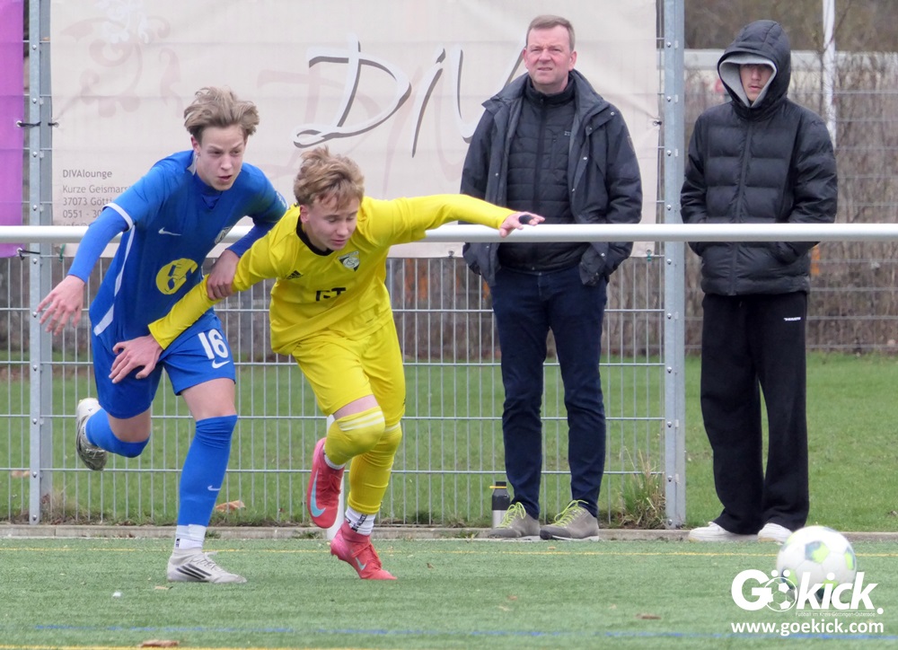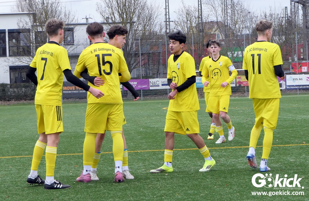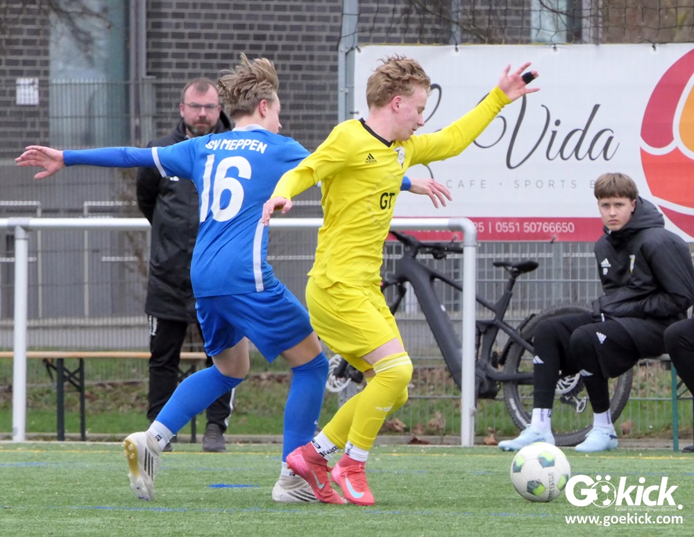 Auf dem Kunstrasenplatz der BSA Maschpark entwickelte sich zunächst eine ausgeglichene Partie. Der 1. SC Göttingen 05, der mit zwei Siegen optimal gestartet war, traf auf einen körperlich und spielerisch anspruchsvollen Gegner aus Meppen, der trotz zweier Niederlagen zu Beginn der Runde keineswegs zurücksteckte. Beide Teams erarbeiteten sich Möglichkeiten, wobei die Göttinger ebenso Chancen ungenutzt ließen wie die Gäste, die nach Ballverlusten der Gastgeber zu guten Gelegenheiten kamen. Mehrfach verhinderte der Göttinger Torhüter Tristan Steinmetz einen Rückstand.