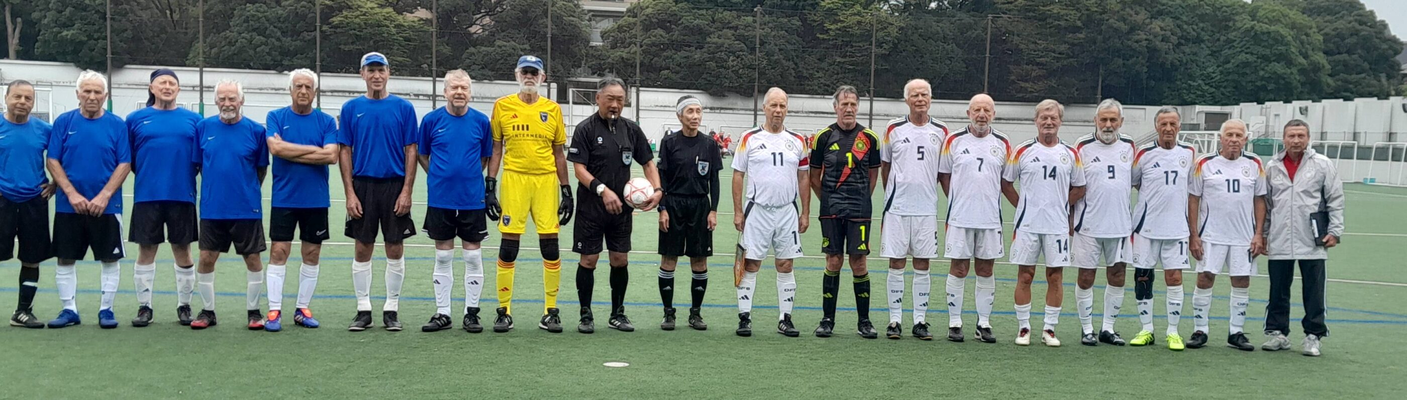 Das deutsche Team der Ü75-Senioren ist in der japanischen Hauptstadt Tokio erfolgreich in die Veteranen-WM gestartet. Am Auftakttag bezwangen die Schützlinge von Trainer Marek Wanik zunächst die Golden State Azzurris (USA) mit 9:1, ehe sie Stunden später auch dem Titelverteidiger aus England das Nachsehen gaben (5:2). Beide Spiele gingen über 2 x 30 Minuten. Gespielt wird in dieser Altersklasse im 8-gegen-8 auf einem Feld, das 68 Meter breit und 50 Meter lang ist. Die Tore sind Juniorentore und haben das Ausmaß 4,9 x 2,1 Meter.