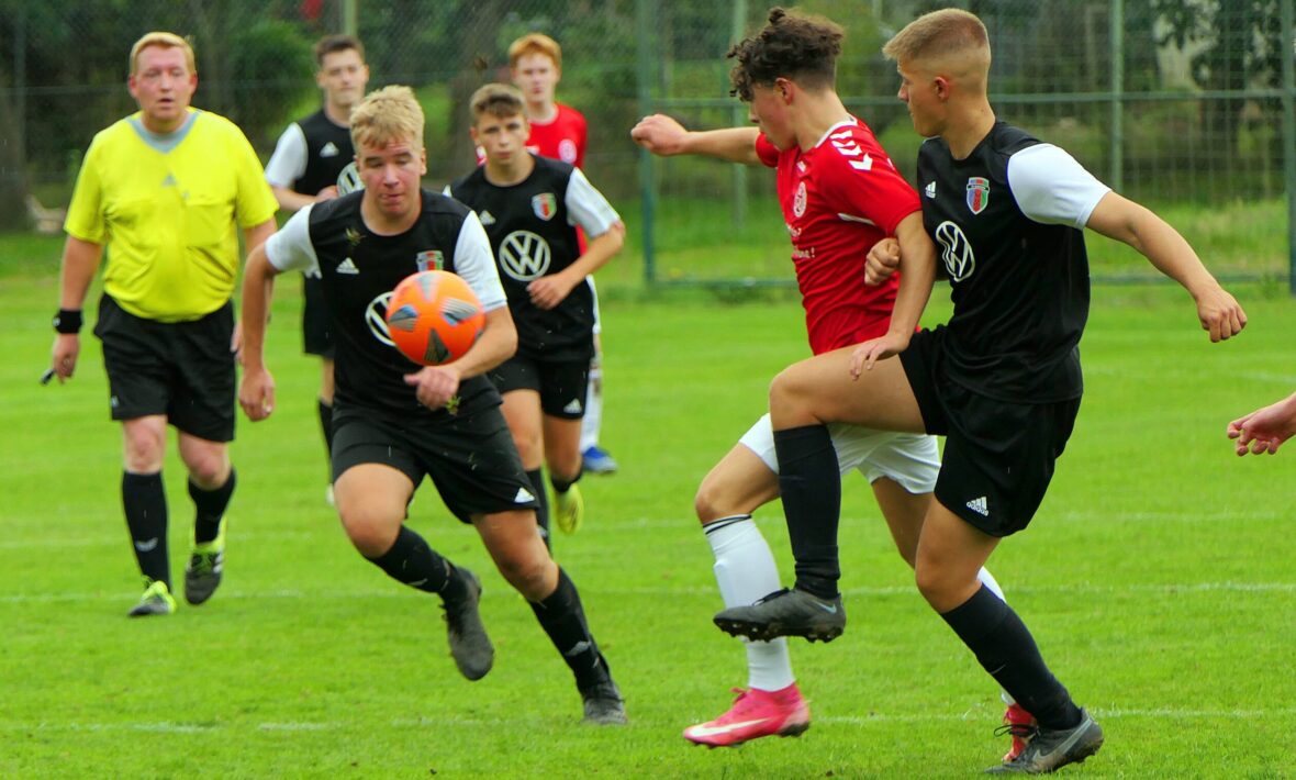 Bereits am 24. September besiegte der FC Gleichen in der A-Jugend-Bezirksliga nach einem turbulenten Spielverlauf die zweite Mannschaft des MTV Wolfenbüttel mit 5:4 (3:1). Die Tore für das Team von Trainer Yusuf Can erzielten Elias Müller (3), Pascal Hohmeister und Julius Mühlhausen. Wir liefern eine Bildergalerie der Partie hiermit nach.
