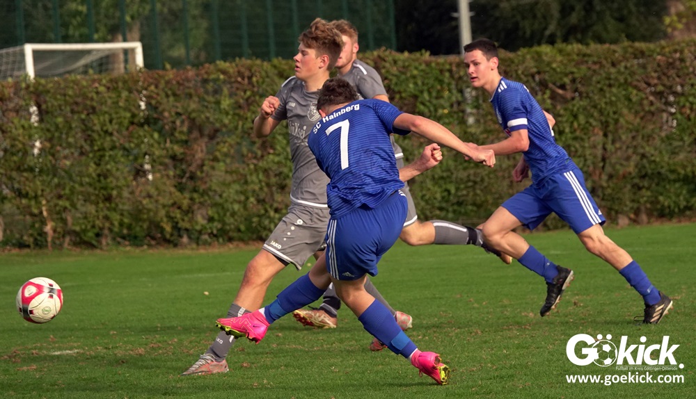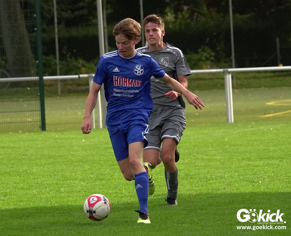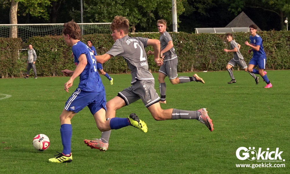 Die A-Jugend des SC Hainberg spielt in der Kreisliga Nord. Dort absolvierte das Team von Trainer Pepe Huenges am vergangenen Samstag auf dem Rasenplatz des Göttinger Jahnsportparks sein drittes Punktspiel gegen die JSG Radolfshausen/Eichsfeld. Und die Zietenterrassen-Kicker blieben auch diesmal ungeschlagen und siegten deutlich mit 9:0 (6:0). In der Tabelle, die aufgrund der unterschiedlichen Anzahl an Spielen wenig aussagekräftig ist, belegt der SC Hainberg hinter der ebenfalls ungeschlagenen JSG Söse/Harz mit sieben Punkten aus drei Spielen Platz zwei. Der Gas aus dem Eichsfeld bleibt mit sechs Punkten aus fünf Spielen Tabellen-Fünfter.