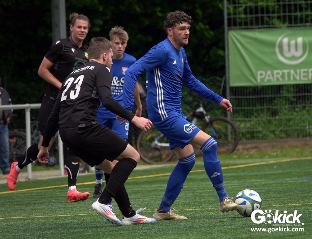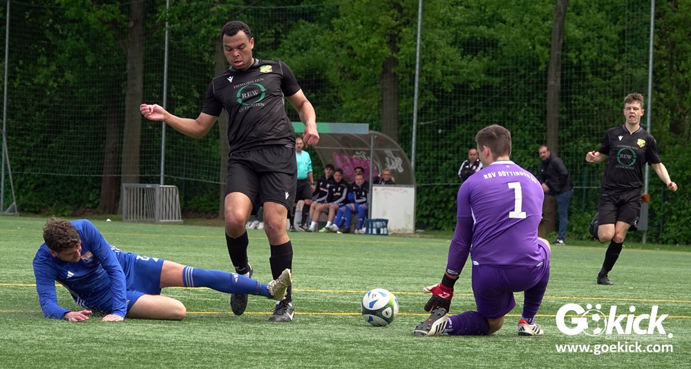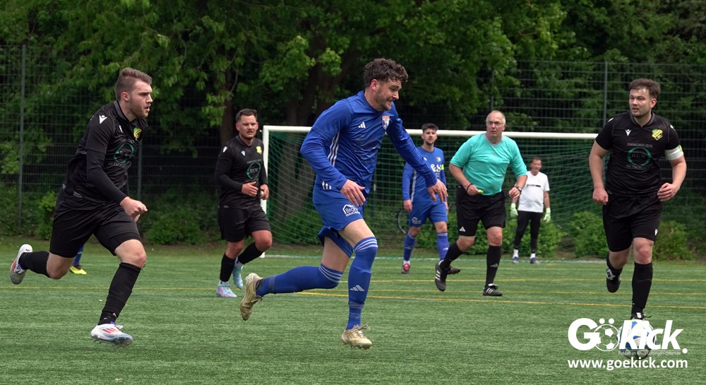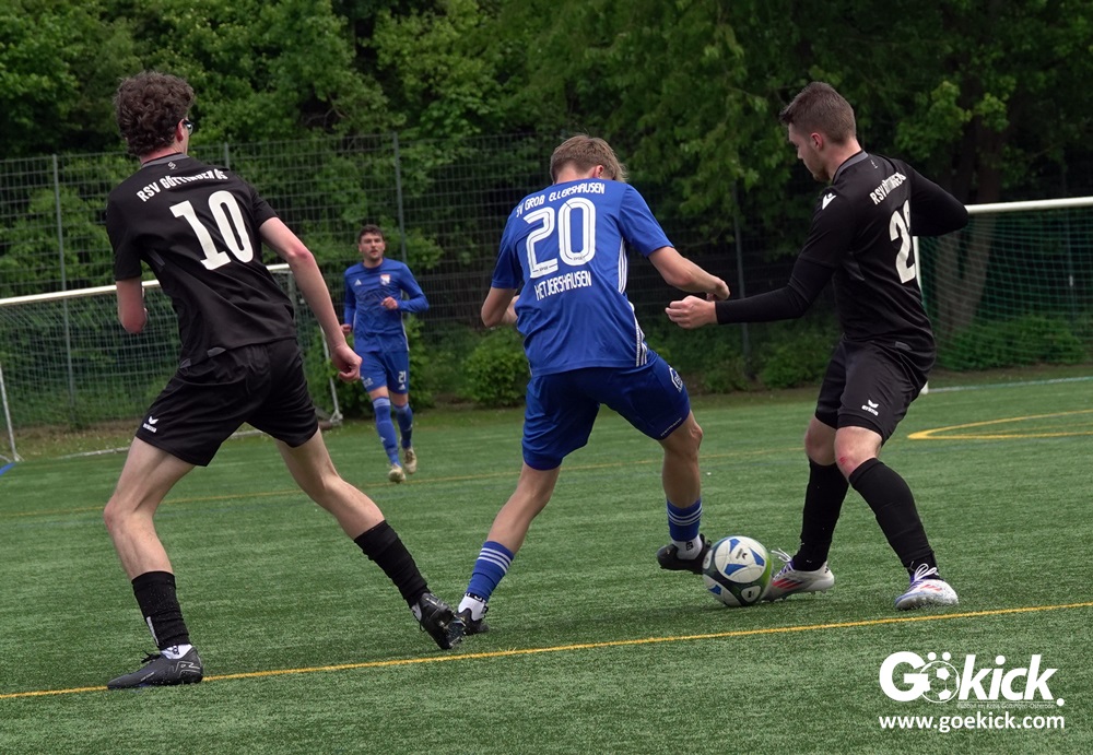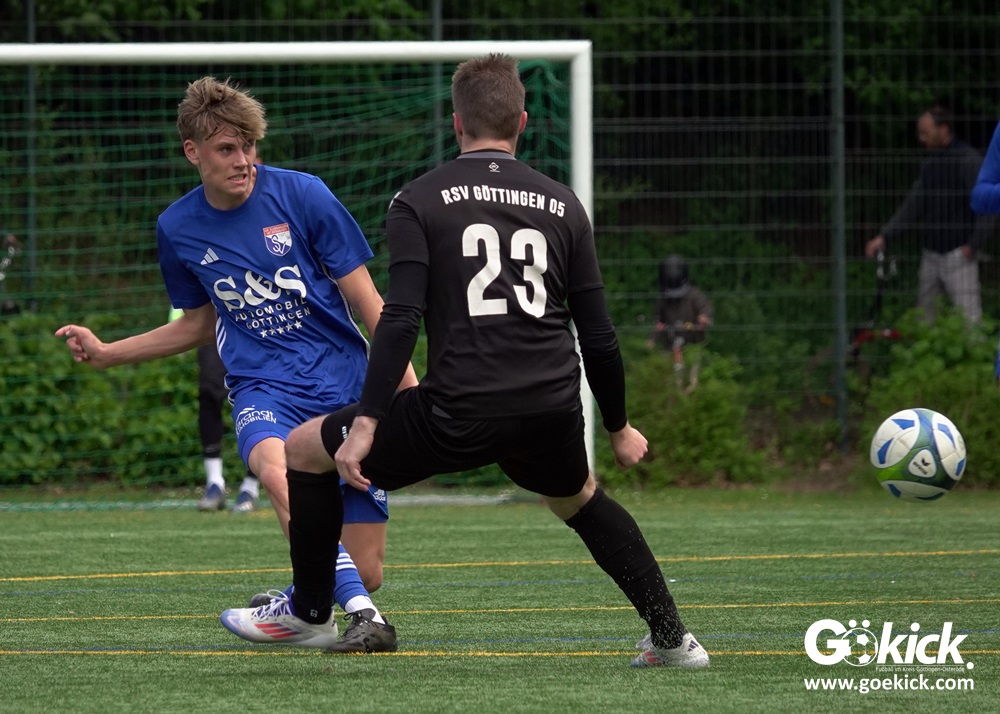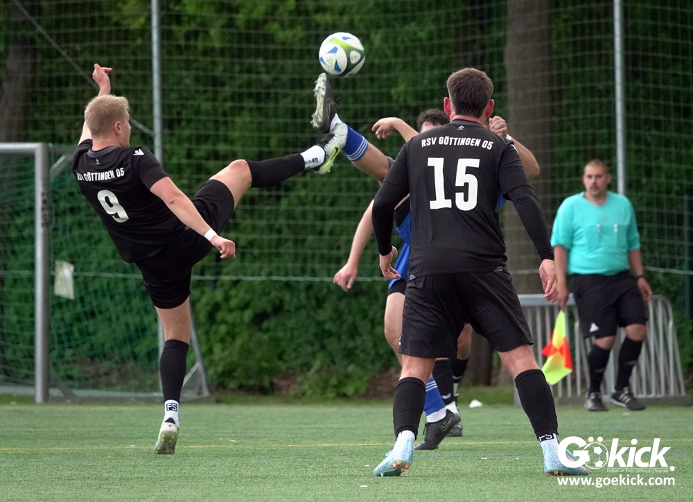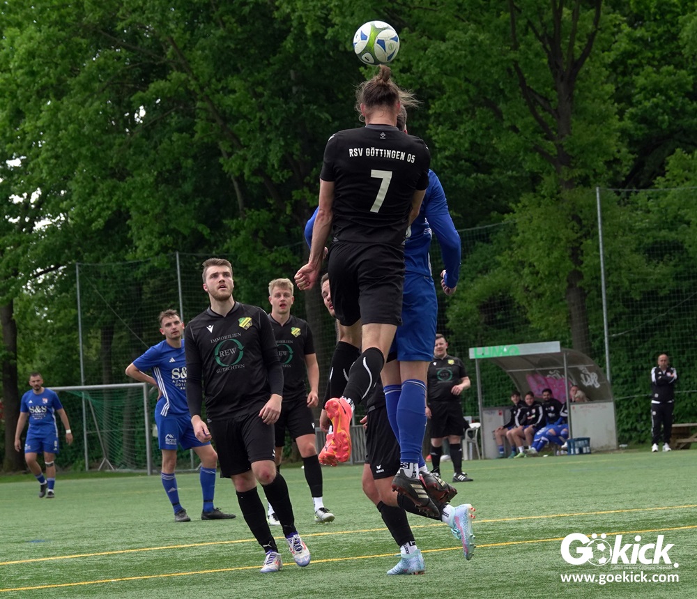 Nach Wiederbeginn ließ sich der Gast etwas fallen, wollte offensichtlich die Führung verwalten. Doch die Rechnung sollte nicht aufgehen. In Überzahl gelang Johannes-Bernard-Friedrich Buschermöhle nach 53 Spielminuten der Anschlusstreffer. Ein deutliches Signal der Hausherren, sich mit der Niederlage noch nicht abfinden zu wollen. Und Torjäger-Routinier Kevin Müller, diesmal in der RSV-Startelf, traf nach 67 Minuten zum 3:3-Ausgleich. Der Siegtreffer für den RSV genauso außergewöhnlich, wie die Partie: Lennart Jonathan Perczynski wollte in den Gäste-Strafraum flanken, wo der großgewachsene Julian Muster oft das Ziel ist. Doch die Flanke senkte sich hinter dem aus dem Ruhestand zurückgeholten SVGE-Schlussmann Florian Knauf in Richtung Tor. Bei seinem Rettungsversuch boxte der Torwart-Routinier den Ball in die eigenen Maschen. Am Ende blieb es beim 4:3-Sieg für die Hausherren.