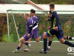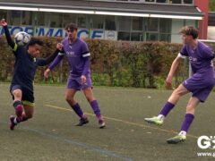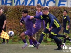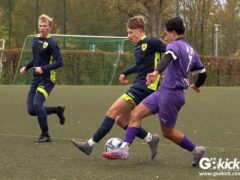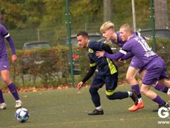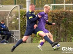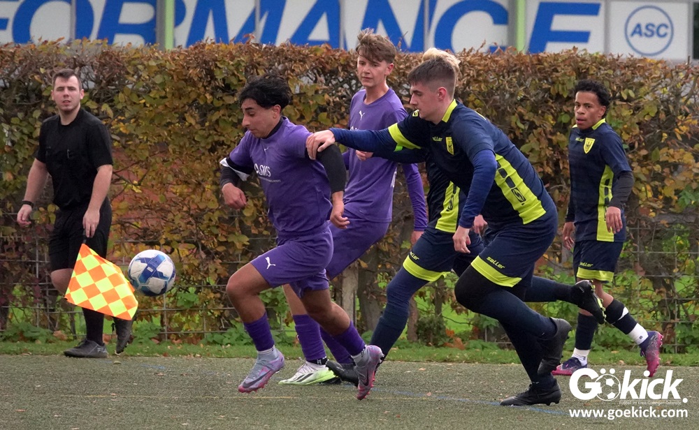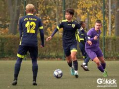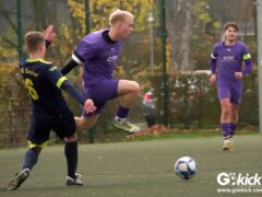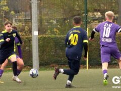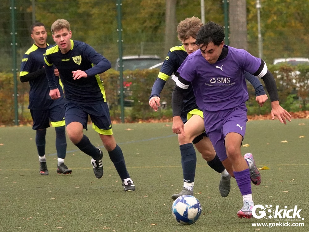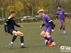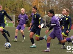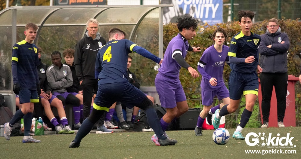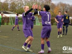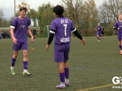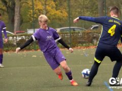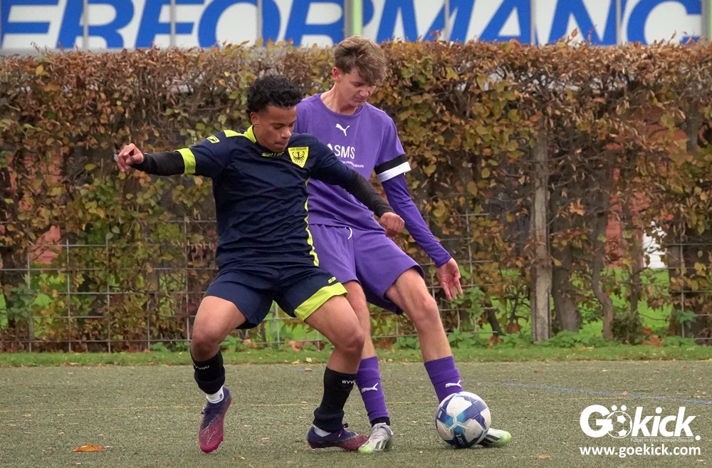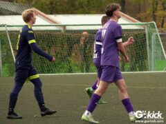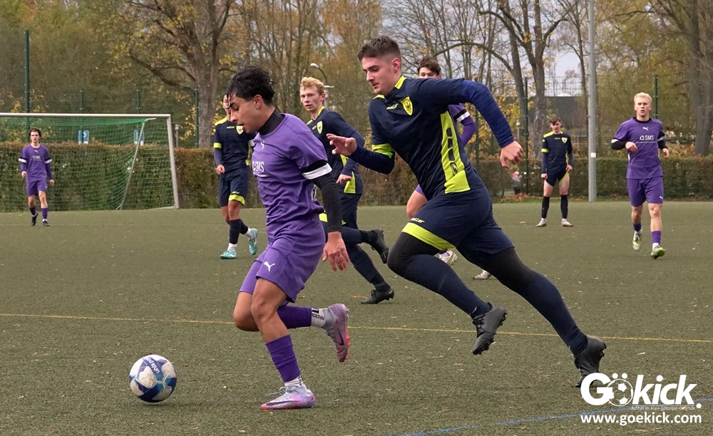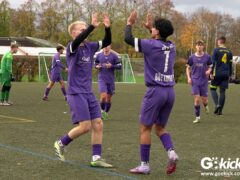 Perrin Willmann traf bereits nach acht Minuten zum 1:0 für die Gastgeber. Nur drei Minuten später erhöhte Carl Frieder Behrendt auf 2:0. Das 3:0 war Tom Brille nach 26 Minuten vorbehalten. Der nach 34 Minuten eingewechselte Tyler-Jay Lux bedankte sich bei seinen Trainern nach 41 Minuten mit dem 4:0. Nur eine Minute später sorgte Erik Mädler für das 5:0 für das lila Team. Und noch vor der Pause traf Tyler-Jay Lux mit seinem zweiten Treffer zum 6:0-Halbzeitstand.