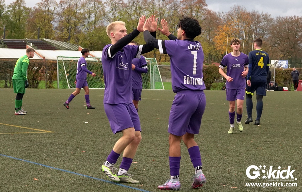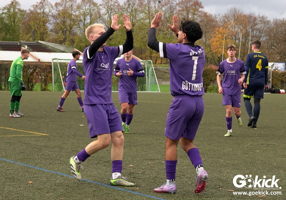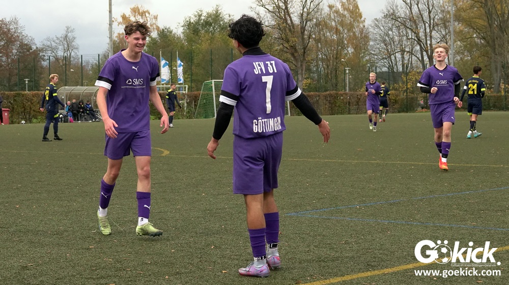 Die erste A-Jugend-Mannschaft (U19) des JFV 37 Göttingen ist als Meister der Bezirksliga der vergangenen Saison in die Landesliga aufgestiegen. Im ersten Spiel trat das Team vom Trainerduo Oliver Hille und Lars Willmann gleich beim aktuell ungeschlagenen Tabellenführer MTV Wolfenbüttel an und musste sich mit 2:5 geschlagen geben. Doch anschließend folgten sechs Siege in Folge mit einem Torverhältnis von 28:3. Den letzten Sieg gab es am vergangenen Samstag auf dem Kunstrasenplatz des Göttinger Jahnsportparks. Die JSG Goslar wurde mit einen klaren 6:0 (6:0) zurück an den nördlichen Harzrand geschickt. Die Göttinger belegen aktuell Platz drei, haben aber mit erst sieben Partien die wenigsten der Landesliga ausgetragen.