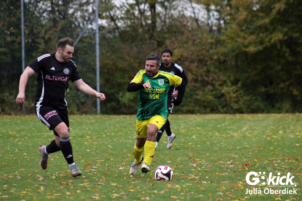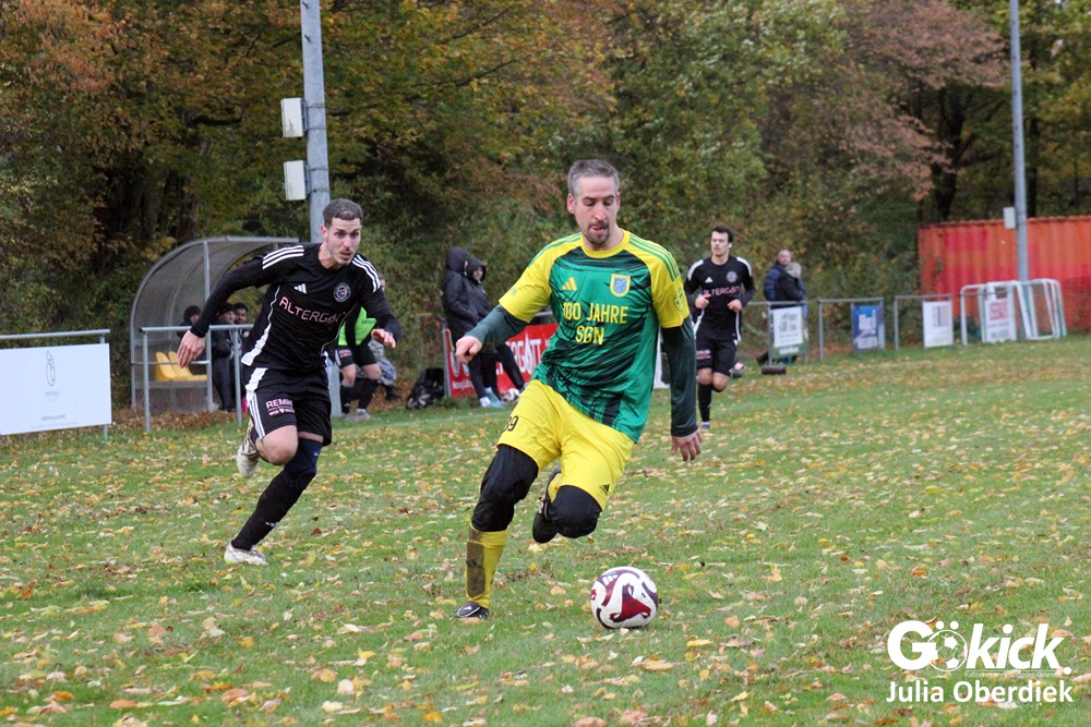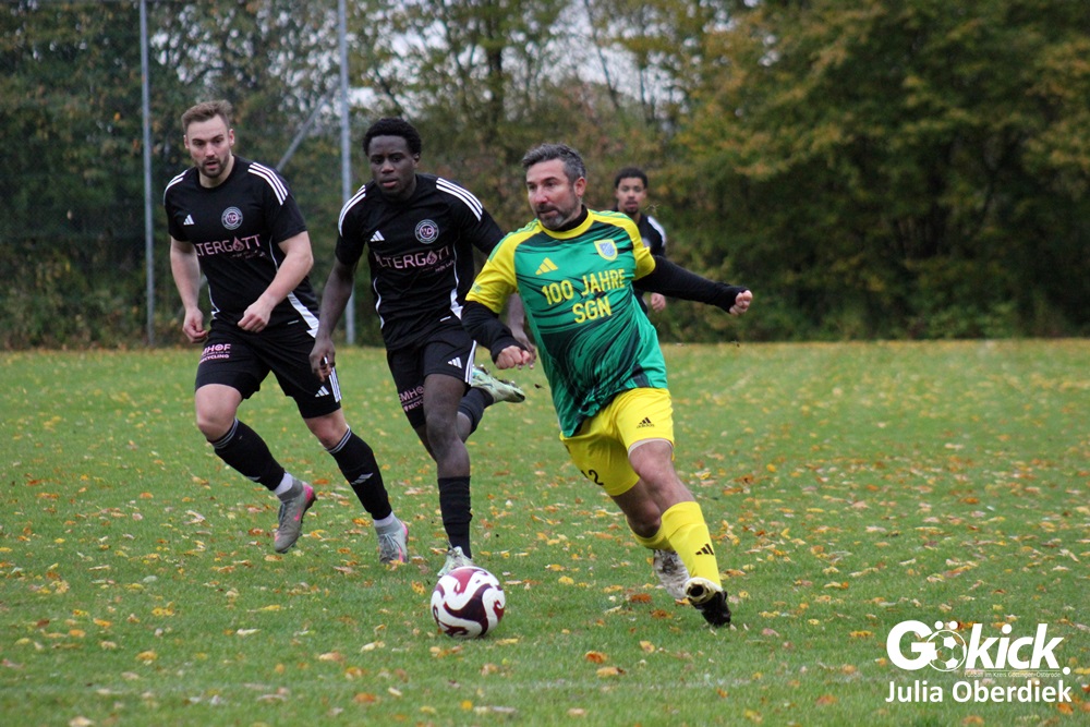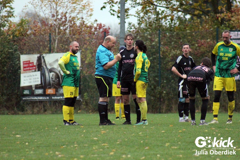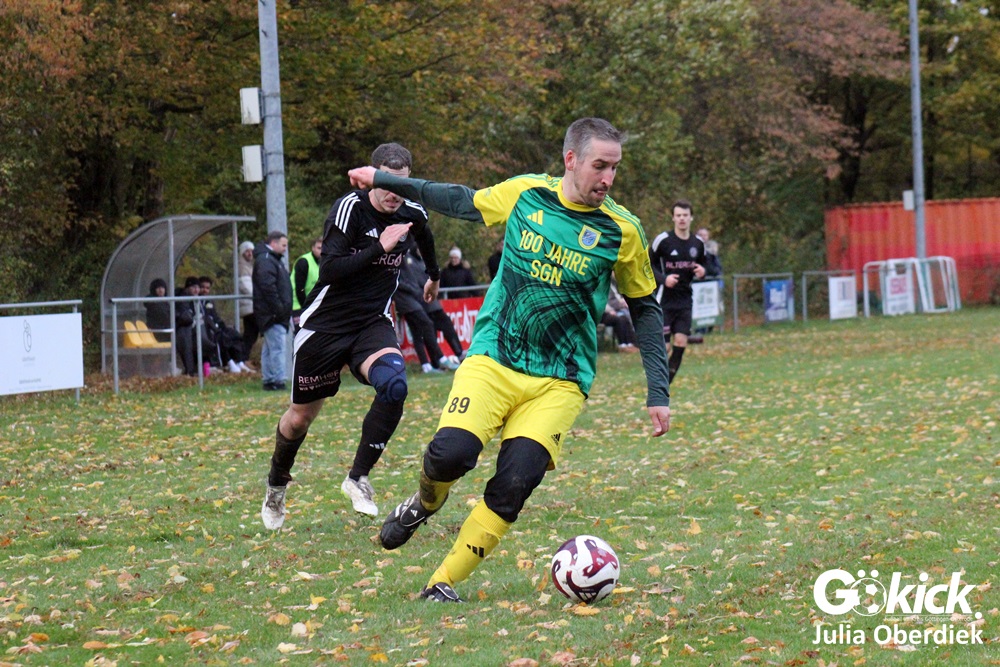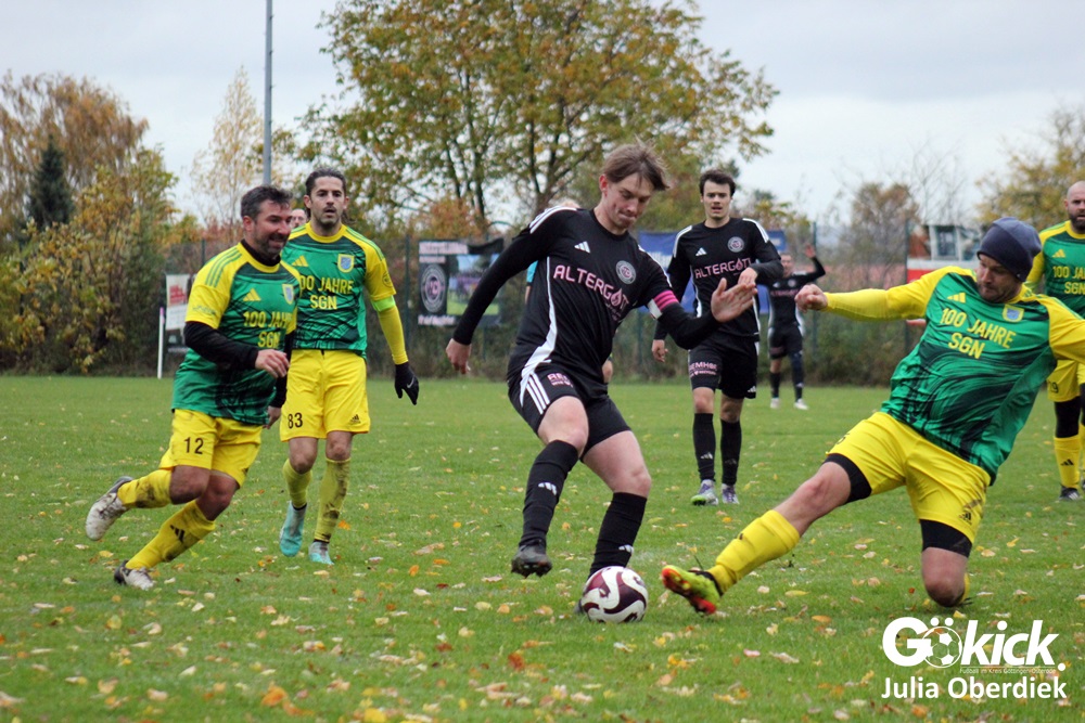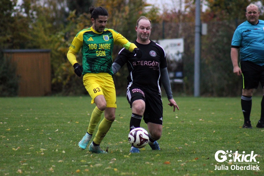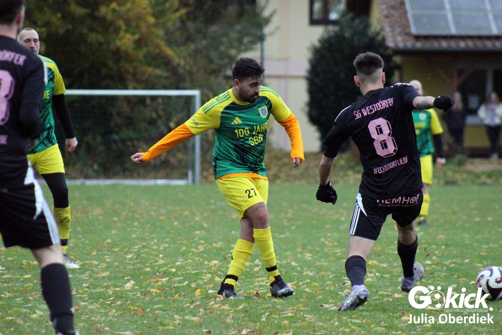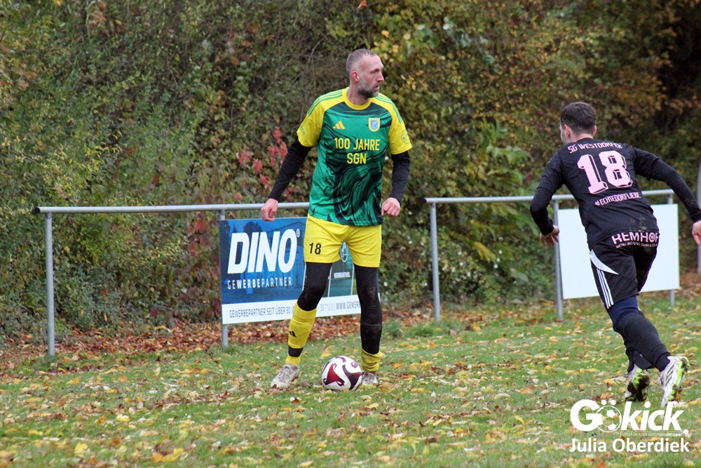 Die Partie auf dem Sportplatz in Mengershausen begann mit viel Tempo und intensiven Zweikämpfen – kein Wunder, schließlich war das Prestige in dieser Partie bis auf die Zuschauer-Ränge zu spüren. Nach einer guten Anfangsphase der Gäste nutzte Elias Franke in der 12. Minute eine Unachtsamkeit in der SGN-Abwehr, lief frei auf das Tor zu und brachte die SG Westdörfer mit 1:0 in Führung. Der Treffer fiel in einer Phase, in der die Mannschaft von Mario Volpini eigentlich das Geschehen kontrollierte.