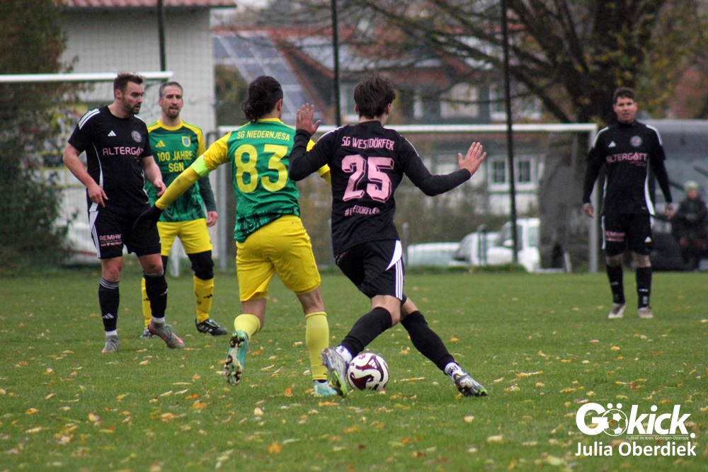 Die SG Niedernjesa II hat ihre beeindruckende Serie fortgesetzt und das Derby bei der SG Westdörfer mit 3:1 gewonnen. Damit feierte das Team von Trainer Mario Volpini den vierten Sieg in Folge und schob sich sich am Gegner in der Tabelle vorbei. Für die Gastgeber von Trainer Chris Behrens, der einst für den Kontrahenten kickte, war es dagegen ein weiterer Rückschlag im Kampf um den Anschluss an die Spitze der 2. Kreisklasse Süd.