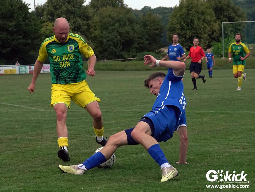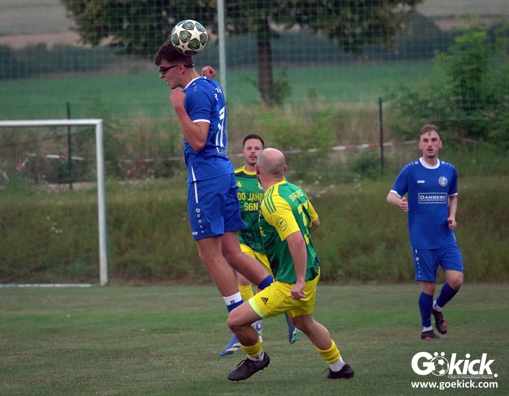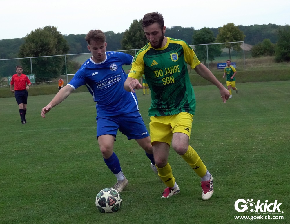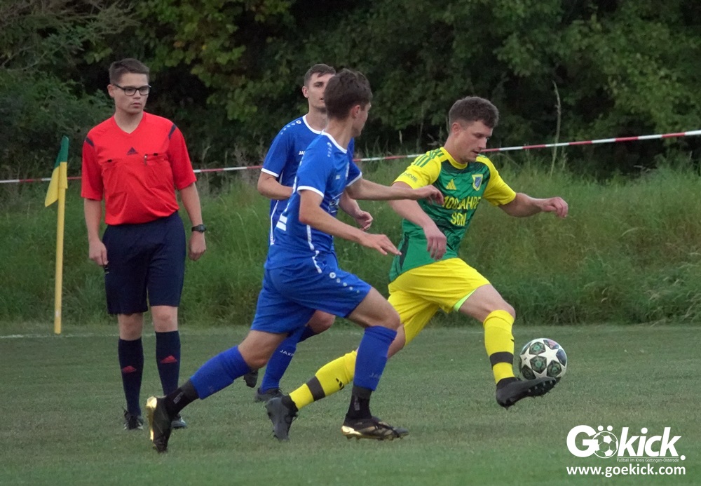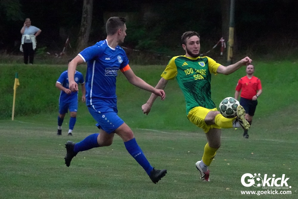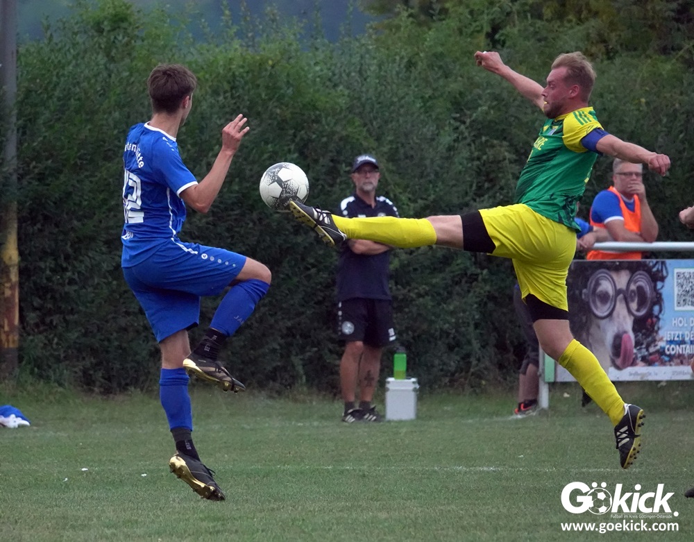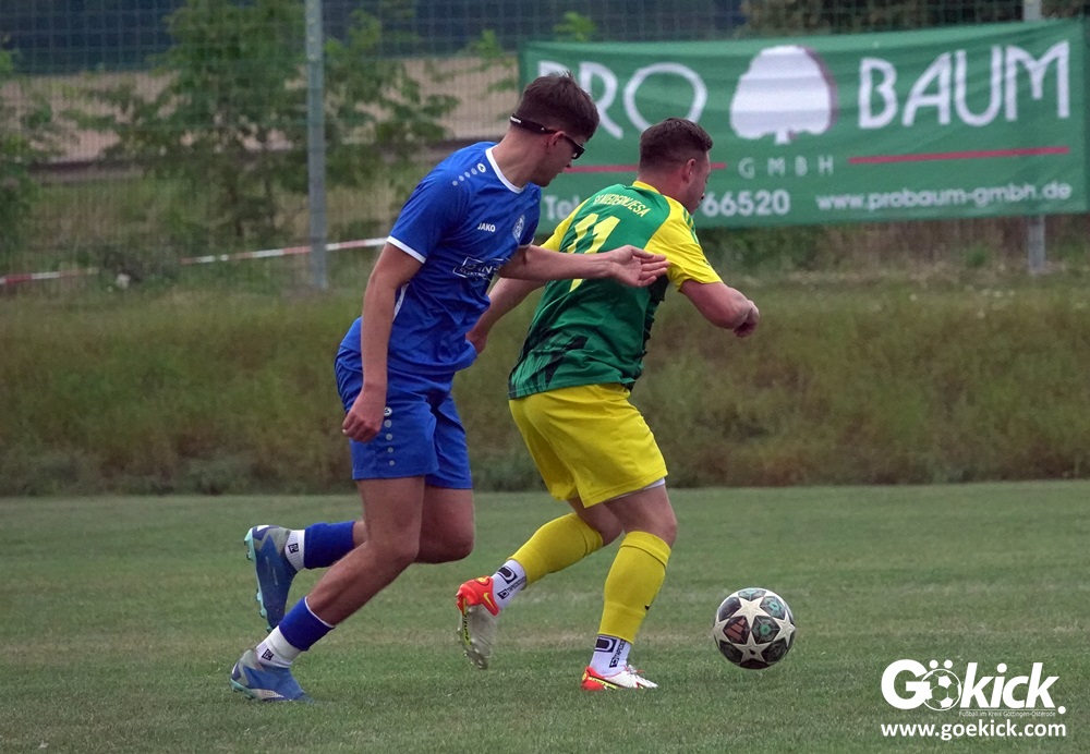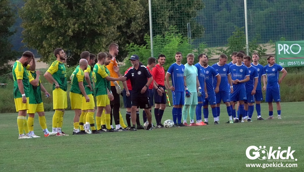 Schon in den Anfangsminuten zeichnete sich ein lebendiges Spiel ab. Pascal Aschenbrandt vergab in der 10. Minute nach Vorarbeit von Akhmed Akhaev die erste große Chance der Gastgeber, als er freistehend aus fünf Metern über das Tor schoss. Kurz darauf meldeten sich die Gäste zu Wort: Jonah Kriebel schoss aus kurzer Distanz Jannis Mattern an, der sich furchtlos in den Schuss warf. Auch der anschließende Kopfball von Niclaas Domjahn nach der Ecke brachte Torwart Dominik Hoffmann nicht in Bedrängnis.