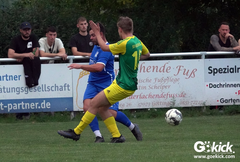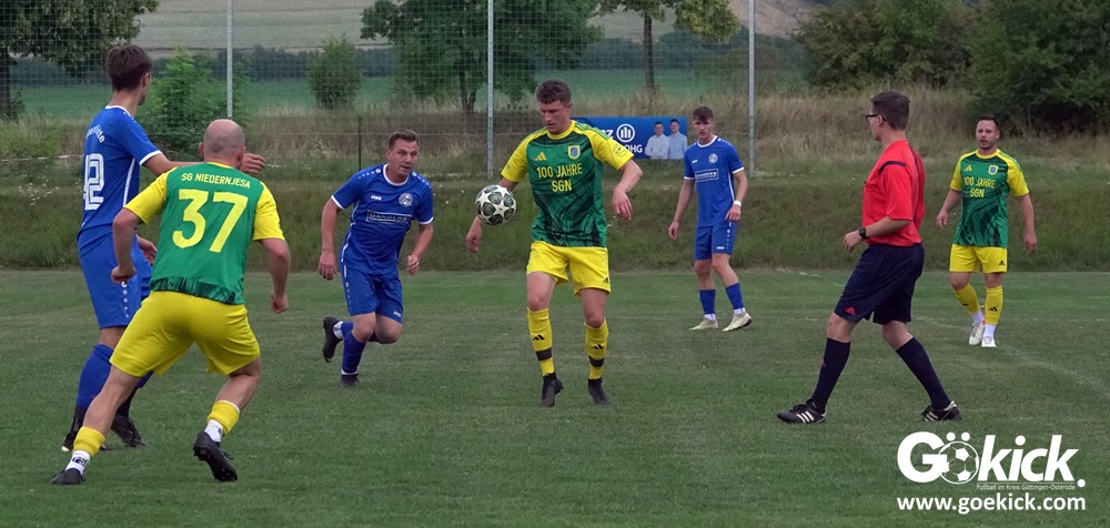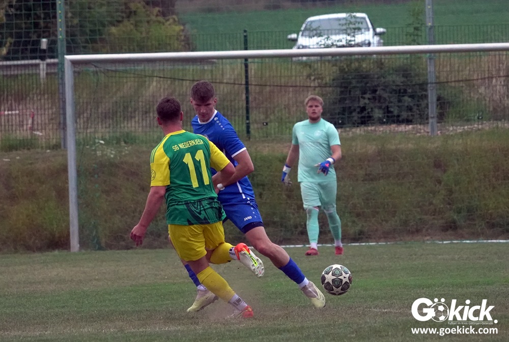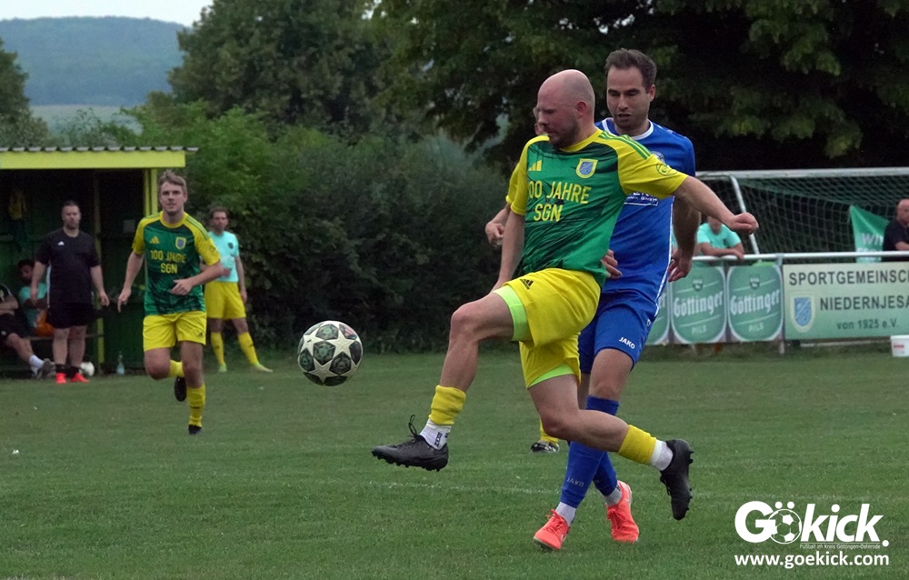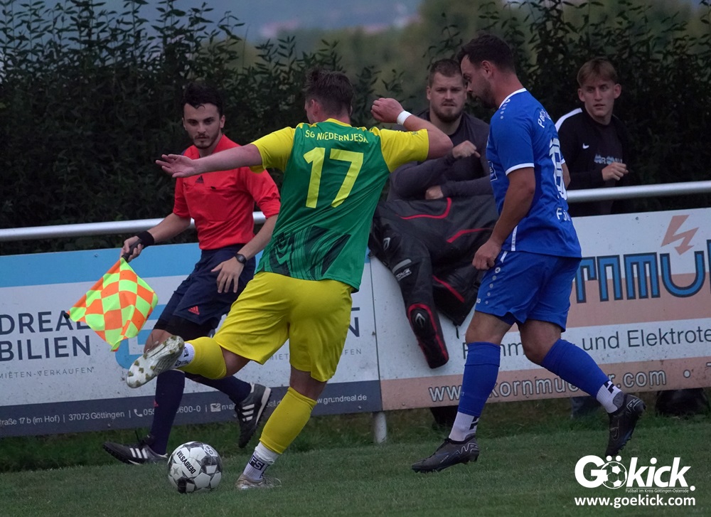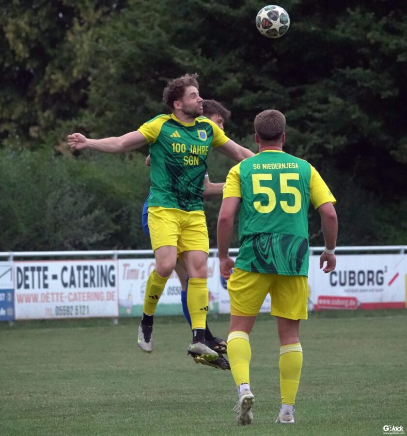 In der 16. Minute brach dann Jubel in Niedernjesa aus: Nach einem langen Freistoß von Jannik Lösekrug nahm Niclas Becker den Ball gekonnt an und vollendete zur 1:0-Führung. Nur acht Minuten später erhöhte Dominik Brömsen per Kopf nach einem weiteren ruhenden Ball auf 2:0. Kurz vor der Pause setzte Akhmed Akhaev das nächste Ausrufezeichen, als er nach einer Ecke von Max Walter zum 3:0 einköpfte (45.+1).