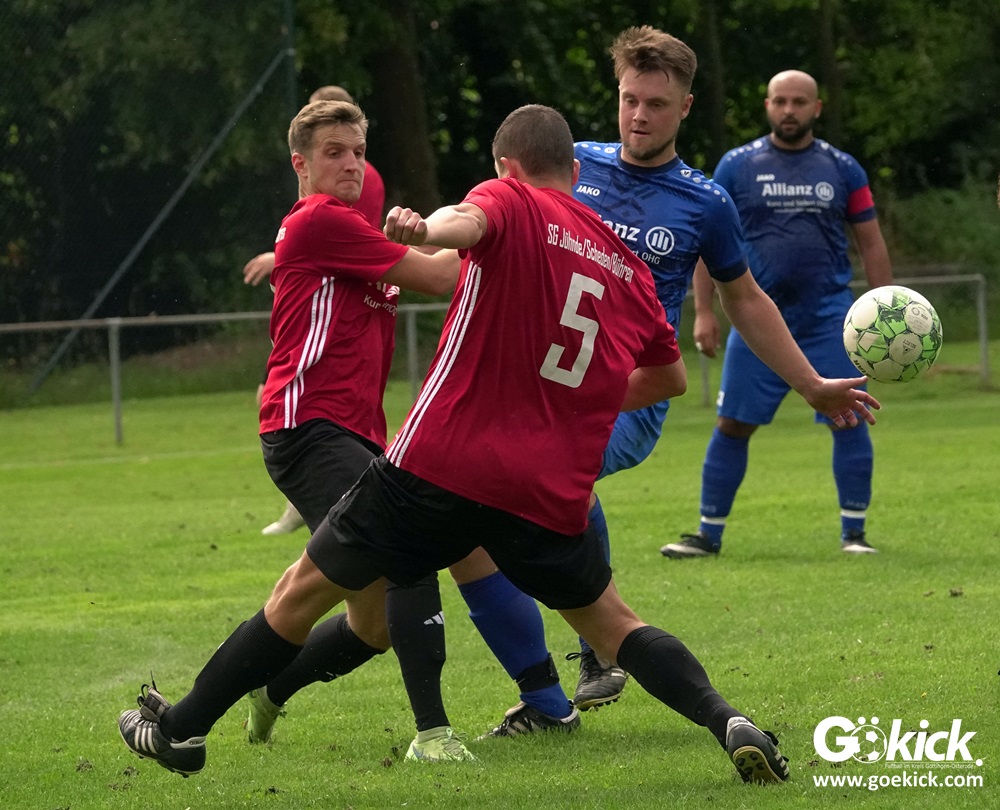 Kaum war die zweite Halbzeit angepfiffen, gelang Sascha Fuchs mit seinem zweiten Tagestreffer die erstmalig Führung für die Gäste (46.). Anschließend entwickelte sich ein Kampfspiel mit vielen Fouls. Renneberg zeigte den Gästen viermal die Gelbe Karte. Kurz vor dem Ende der Partie wurde Mohamed Sofien Ben Jannet mit Gelb-Roter Karte vorzeitig zum Duschen geschickt. Das änderte aber nichts mehr am 2:1-Sieg der SG aus Jühnde, Scheden und Bühren, die nunmehr mit zwei Siegen aus zwei Spielen dem aktuellen Tabellenführer FC Lindenberg Adelebsen auf den Fersen bleibt.