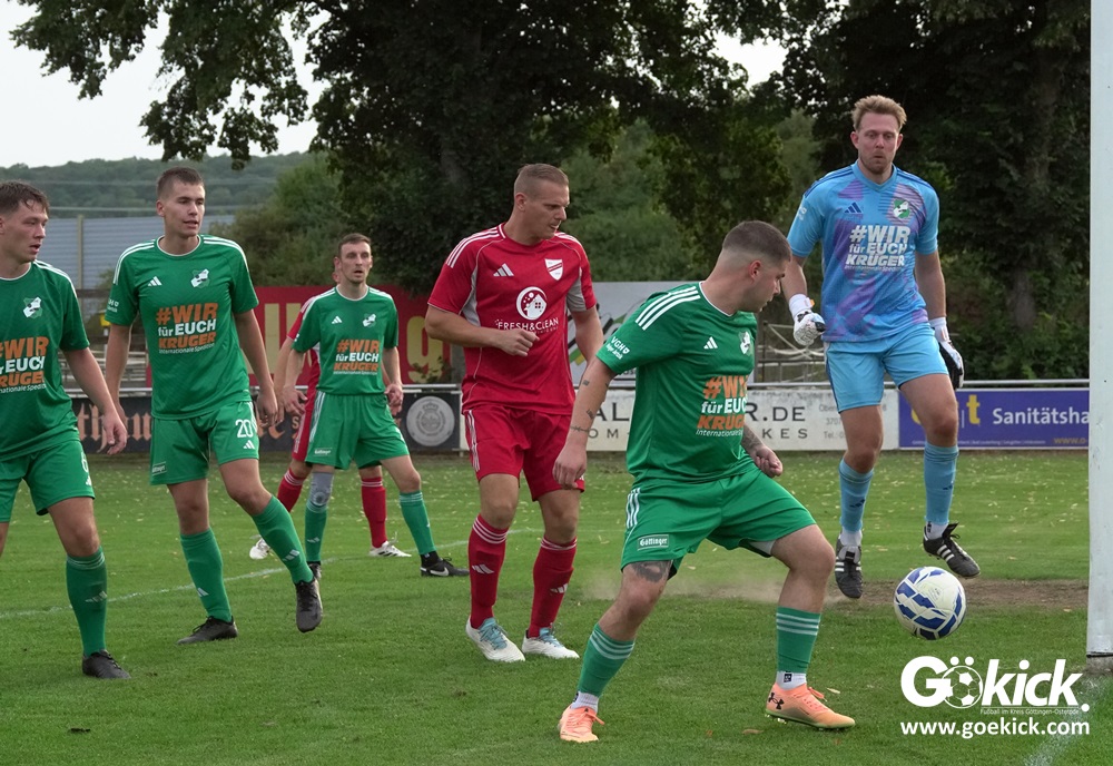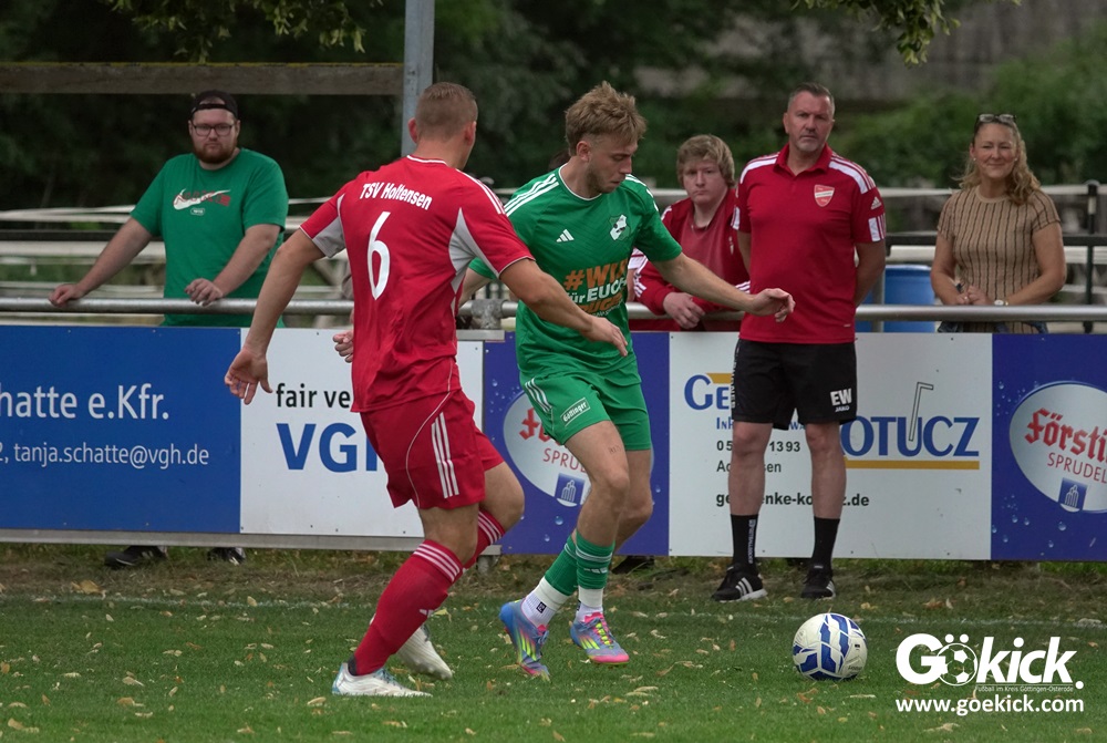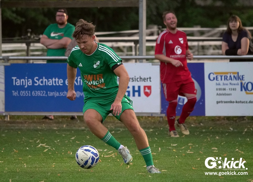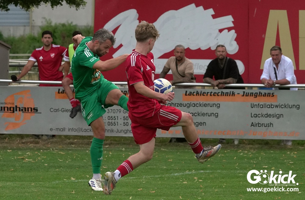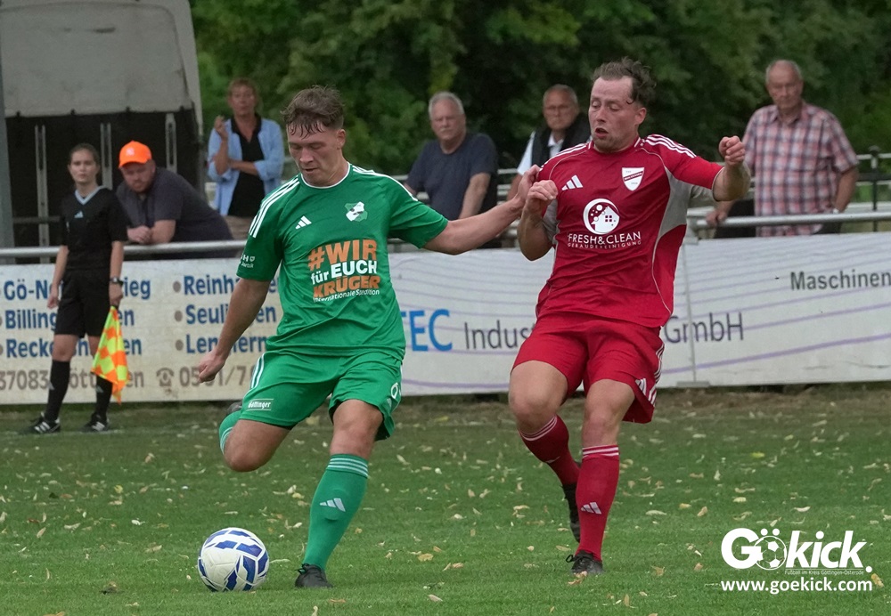 In einer ausgeglichenen ersten Halbzeit begegneten sich beide Teams auf Augenhöhe. Sowohl Holtensen als auch Grone erspielten sich zwei klare Möglichkeiten, scheiterten jedoch jeweils am gegnerischen Torhüter oder an der eigenen Präzision. Vor allem in der Schlussviertelstunde vor der Pause übernahmen die Gäste zunehmend das Kommando, angetrieben vom agilen Nico Chrustel auf der rechten Außenbahn. Tore blieben jedoch aus.
