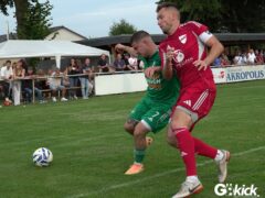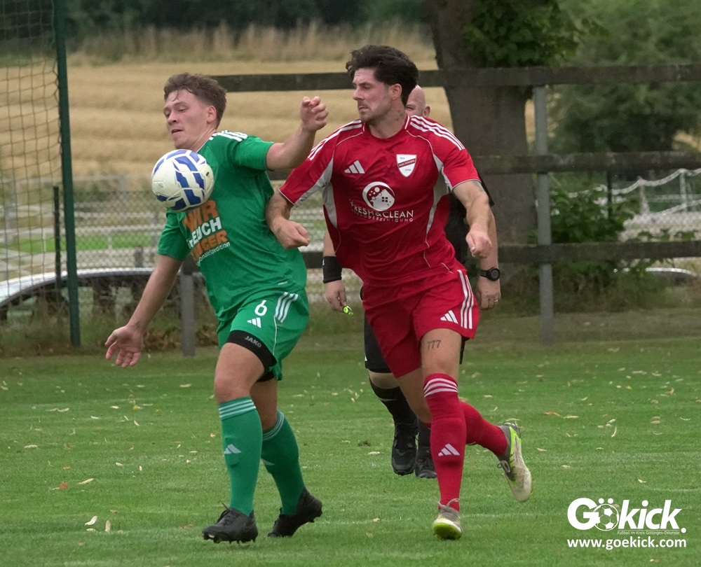 Nach dem Seitenwechsel folgte ein regelrechter Sturmlauf der Hausherren. Die Führung erzielte Marcel Heimbüchel in der 49. Minute direkt von der Eckfahne: Sein scharf getretener Ball sprang kurz vor dem ersten Pfosten auf und flog von dort über die Linie. Ein kurioser Treffer! Nur zehn Minuten später erhöhte Viktor Gerlitz mit einem platzierten Linksschuss von der Strafraumgrenze auf 2:0.