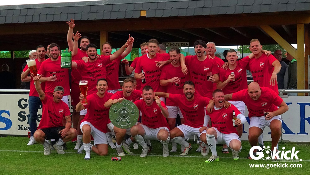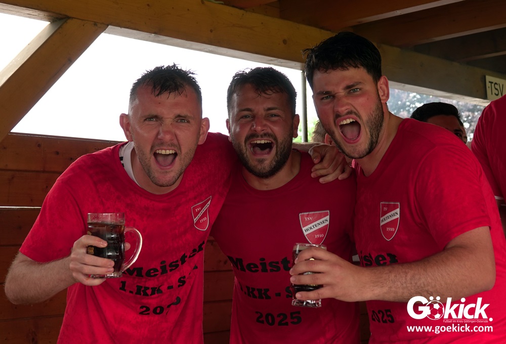 Es ist vollbracht! Im zweiten Jahr seiner Tätigkeit beim TSV Holtensen hat Trainer Enrico Weiß seine Mannschaft zur Meisterschaft in der 1. Kreisklasse Süd und damit zum Aufstieg in die Kreisliga geführt. Nach dem 3:0 (1:0)-Sieg am vergangenen Sonntag auf eigenem Platz gegen die zweite Mannschaft des SC Hainberg ist der TSV nicht mehr von der Tabellenspitze zu verdrängen. Entsprechend ausgiebig wurde am Sonntag nach dem Schlusspfiff von Schiedsrichter Andre Grimme in Holtensen gefeiert.