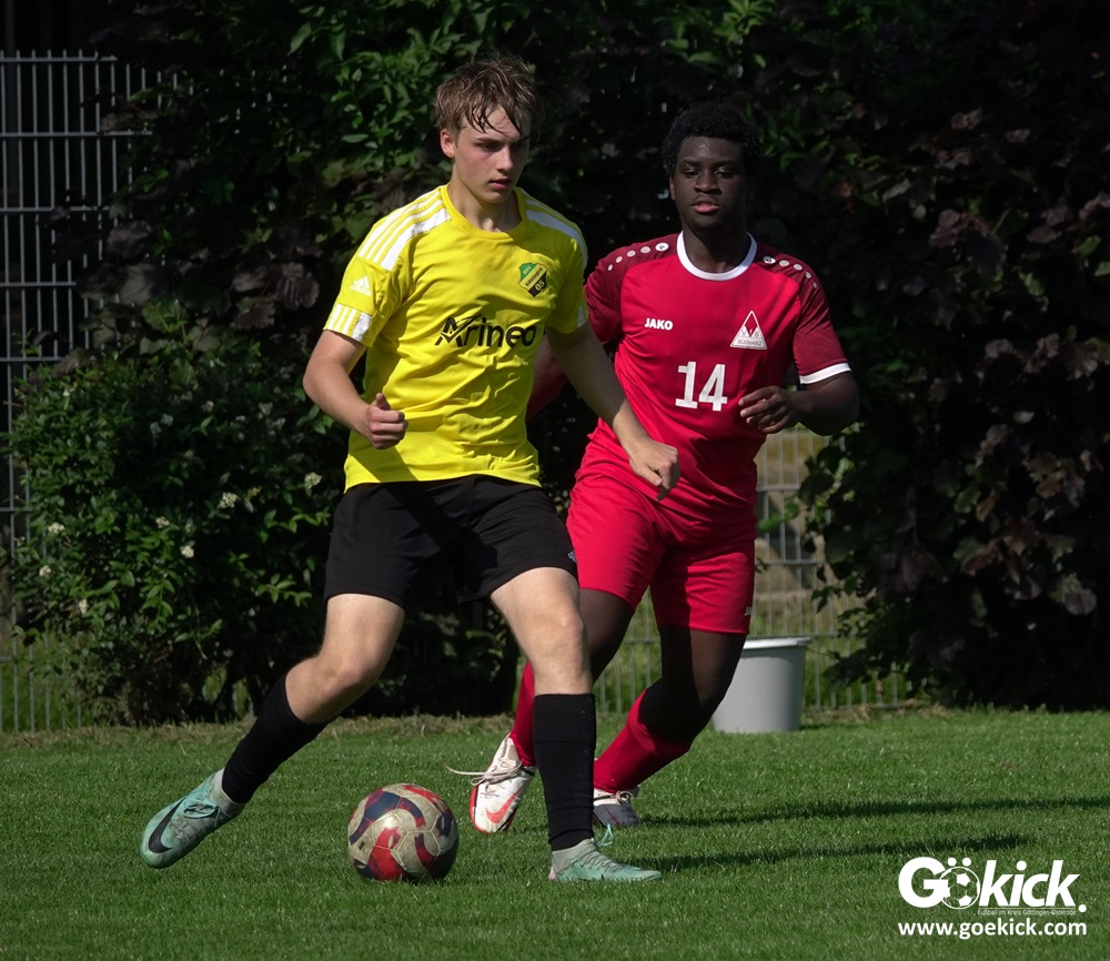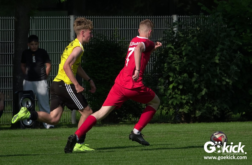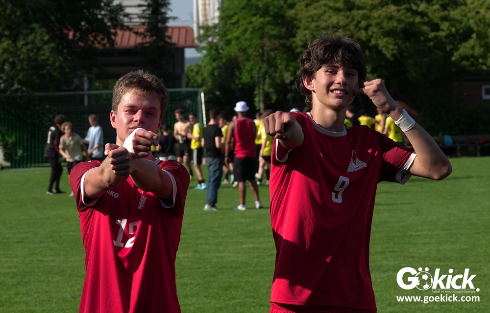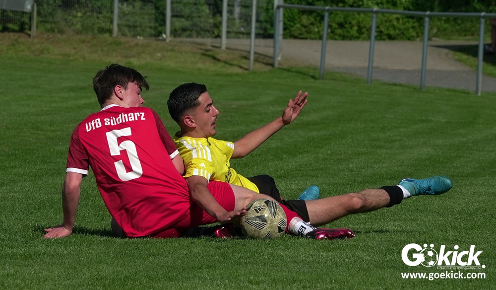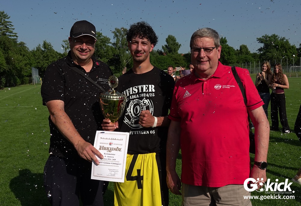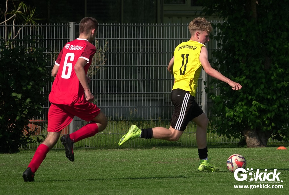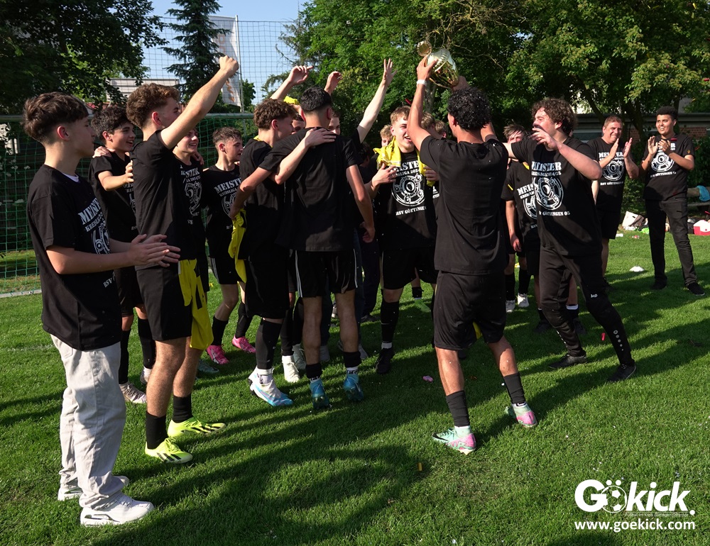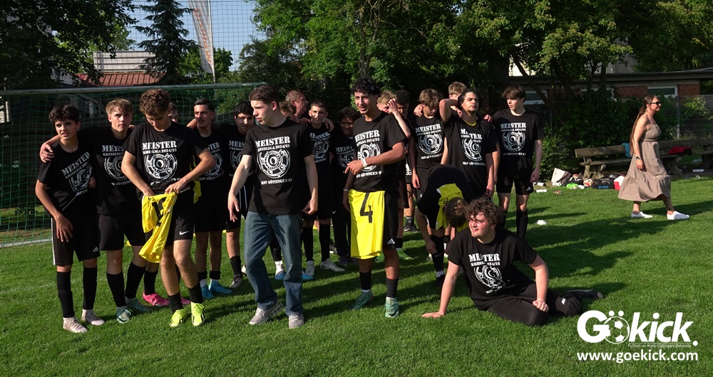 Die Meister-T-Shirts waren gedruckt, die Getränke waren kalt gestellt. Die B-Jugend-Mannschaft des RSV Geismar wollte am vergangenen Samstag mit einem Heim-Sieg über das Schlusslicht der B-Jugend-KreisligaMeisterrunde, den VfB Südharz, die Meisterschaft eintüten. Doch der Gast wehrte sich stärker, als erwartet und ließ den großen Anhang der Hausherren lange zittern. Doch letztendlich siegte der Gastgeber von Trainer Sascha Wiedemann mit 2:1 (1:1) und konnte nach dem Abpfiff über die Kreismeisterschaft jubeln. Das Ergebnis vom Verfolger-Duell zwischen der JSG HarzTor/Neuhof und der SVG Göttingen in Neuhof (2:2) war ohne Bedeutung für den Ausgang der Meisterschaft.