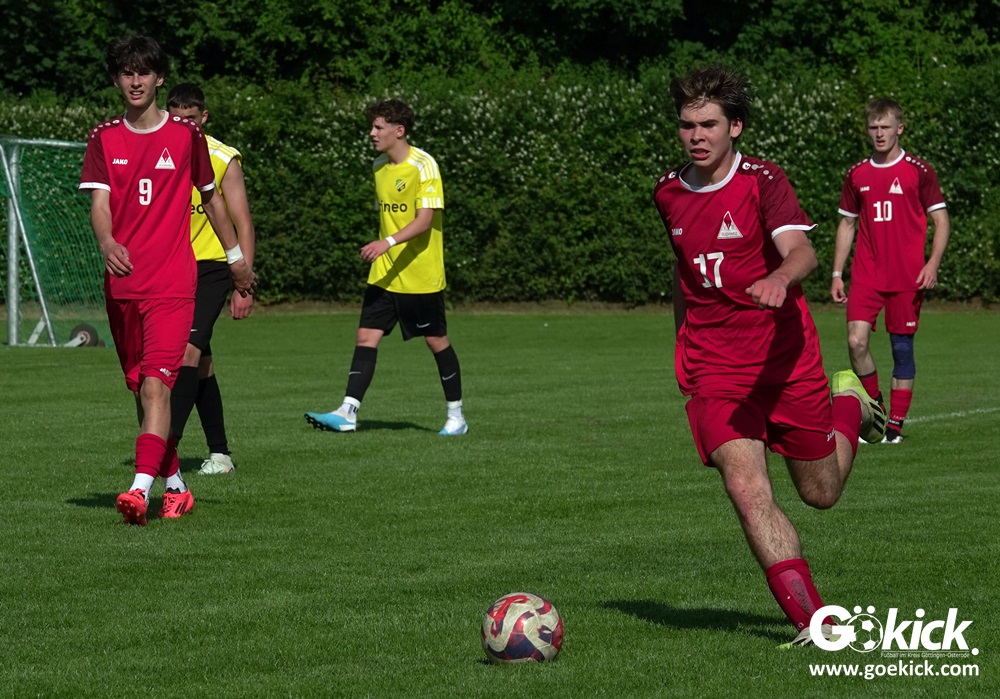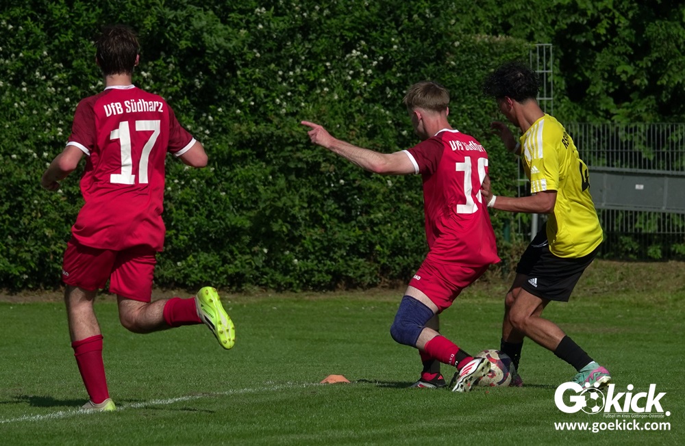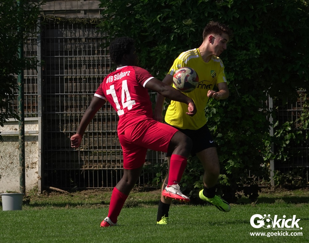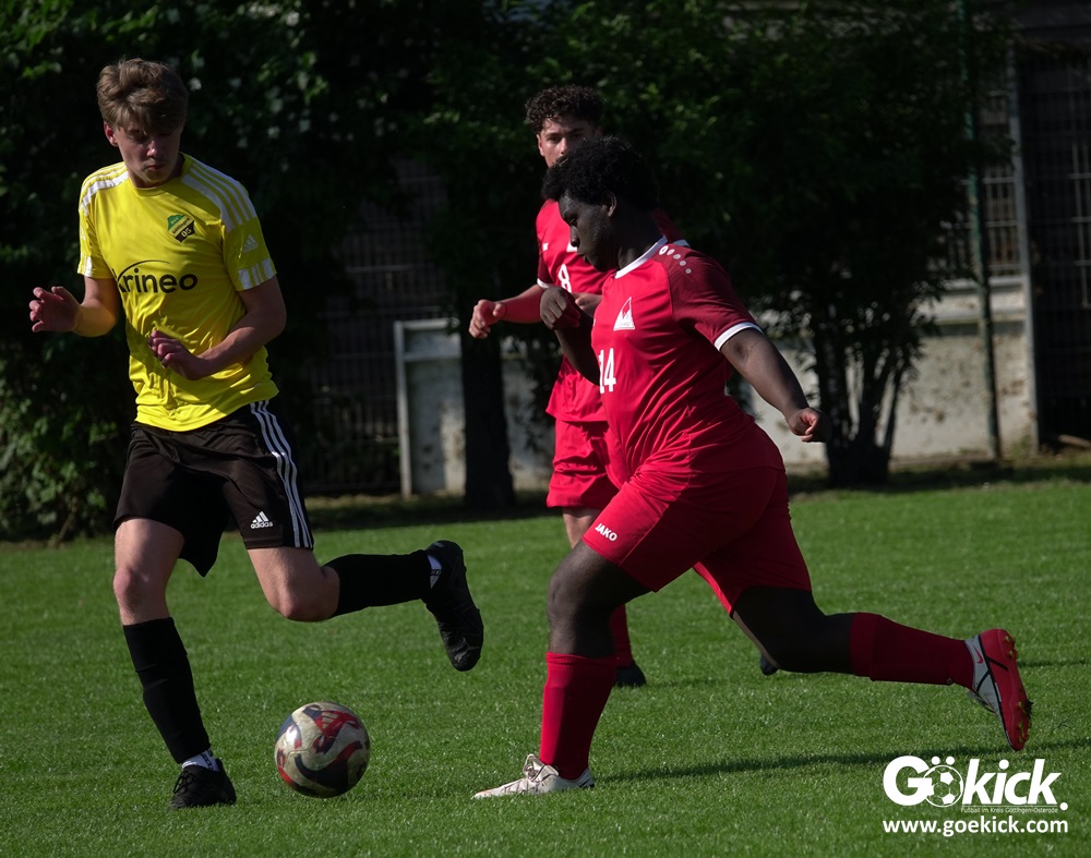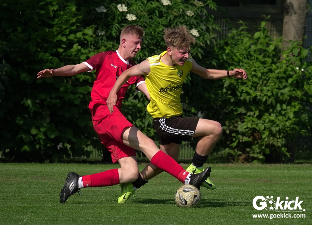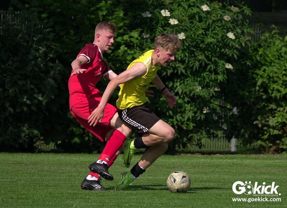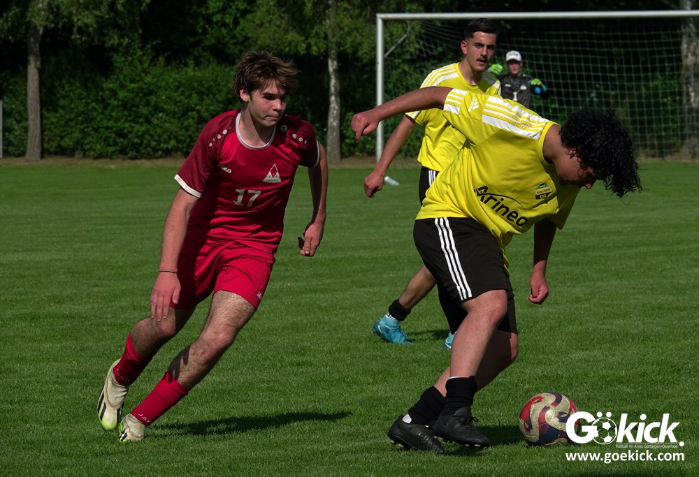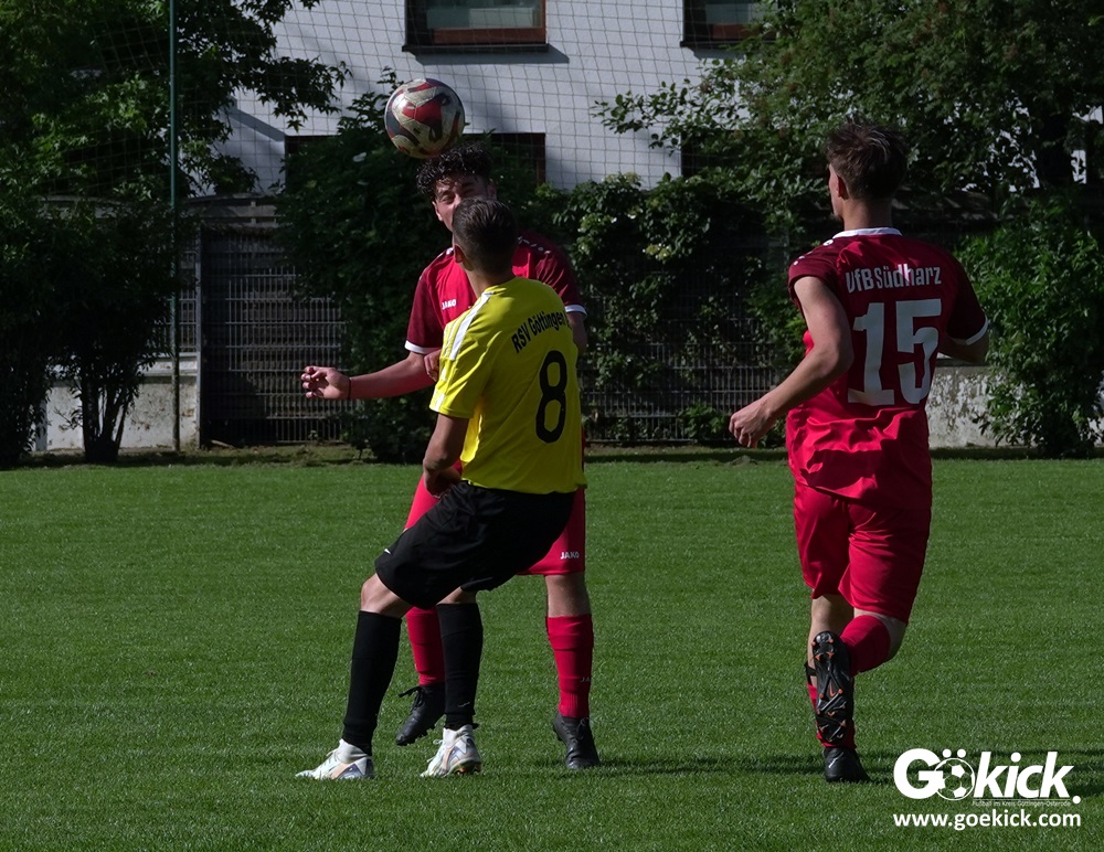 Die Meister-T-Shirts waren gedruckt, die Getränke waren kalt gestellt. Die B-Jugend-Mannschaft des RSV Geismar wollte am vergangenen Samstag mit einem Heim-Sieg über das Schlusslicht der B-Jugend-KreisligaMeisterrunde, den VfB Südharz, die Meisterschaft eintüten. Doch der Gast wehrte sich stärker, als erwartet und ließ den großen Anhang der Hausherren lange zittern. Doch letztendlich siegte der Gastgeber von Trainer Sascha Wiedemann mit 2:1 (1:1) und konnte nach dem Abpfiff über die Kreismeisterschaft jubeln. Das Ergebnis vom Verfolger-Duell zwischen der JSG HarzTor/Neuhof und der SVG Göttingen in Neuhof (2:2) war ohne Bedeutung für den Ausgang der Meisterschaft.