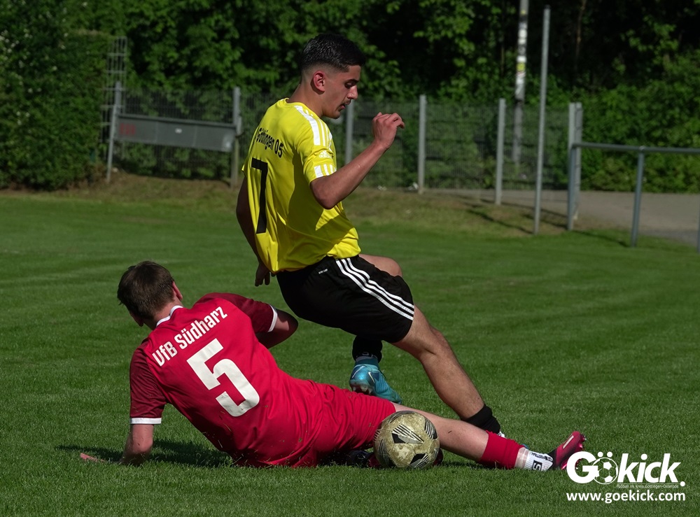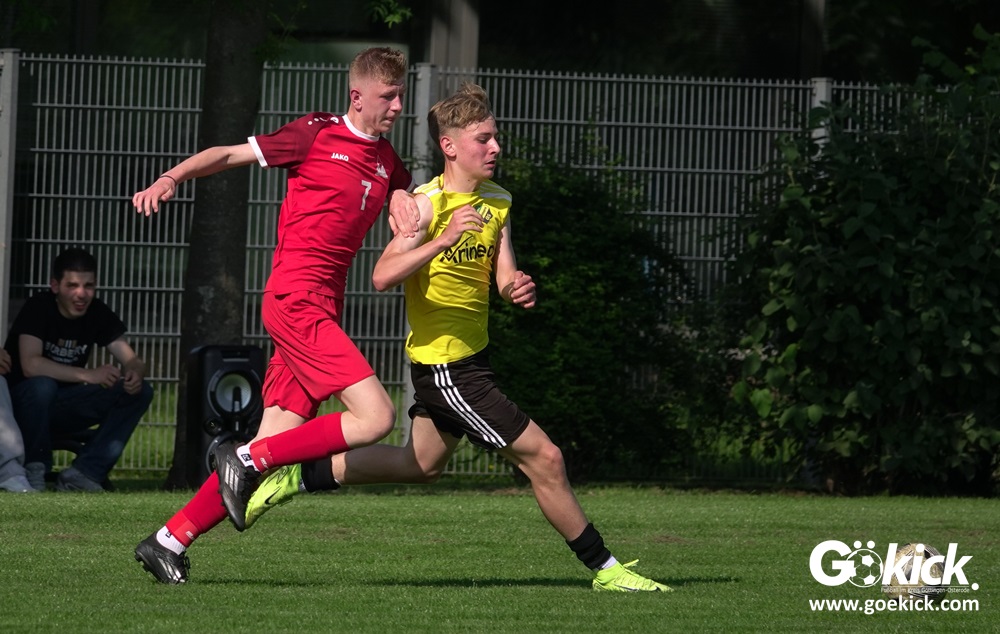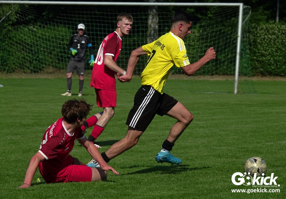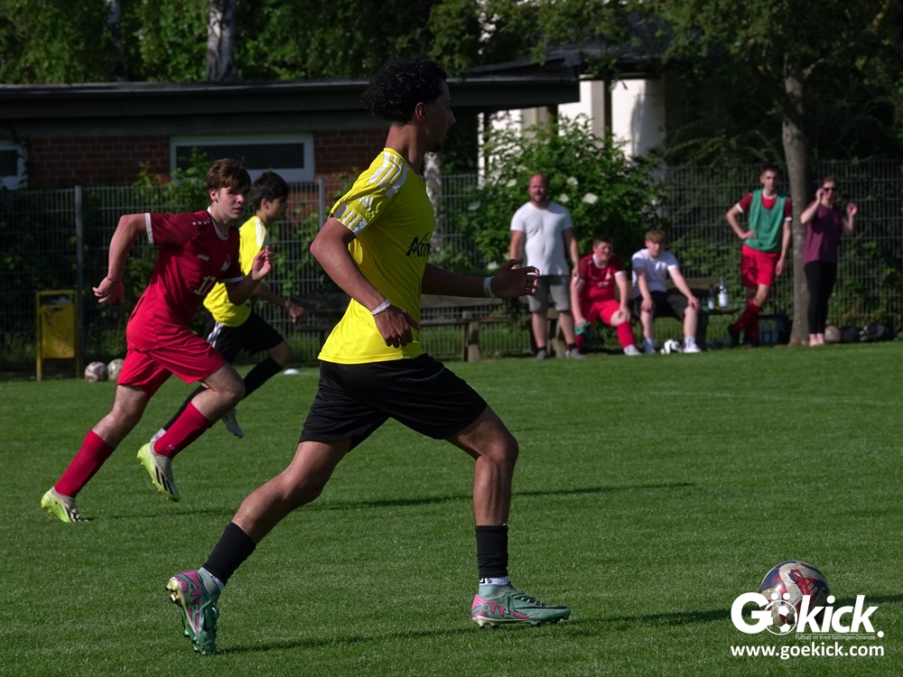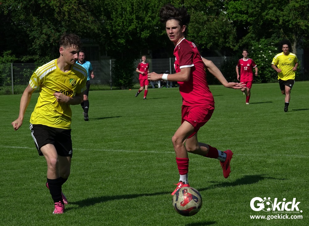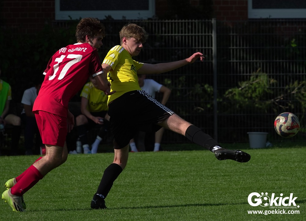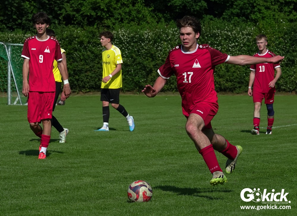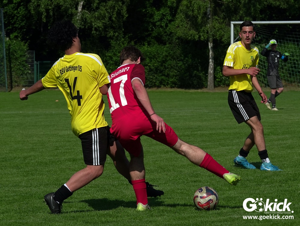 Die Meister-T-Shirts waren gedruckt, die Getränke waren kalt gestellt. Die B-Jugend-Mannschaft des RSV Geismar wollte am vergangenen Samstag mit einem Heim-Sieg über das Schlusslicht der B-Jugend-KreisligaMeisterrunde, den VfB Südharz, die Meisterschaft eintüten. Doch der Gast wehrte sich stärker, als erwartet und ließ den großen Anhang der Hausherren lange zittern. Doch letztendlich siegte der Gastgeber von Trainer Sascha Wiedemann mit 2:1 (1:1) und konnte nach dem Abpfiff über die Kreismeisterschaft jubeln. Das Ergebnis vom Verfolger-Duell zwischen der JSG HarzTor/Neuhof und der SVG Göttingen in Neuhof (2:2) war ohne Bedeutung für den Ausgang der Meisterschaft.