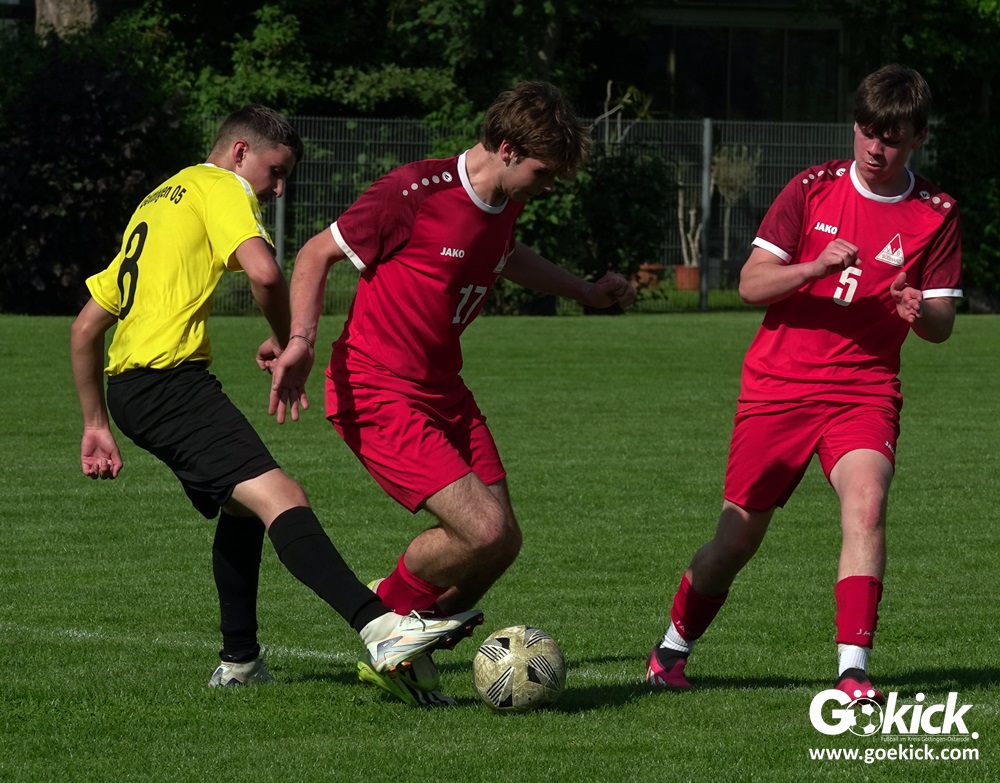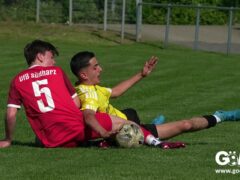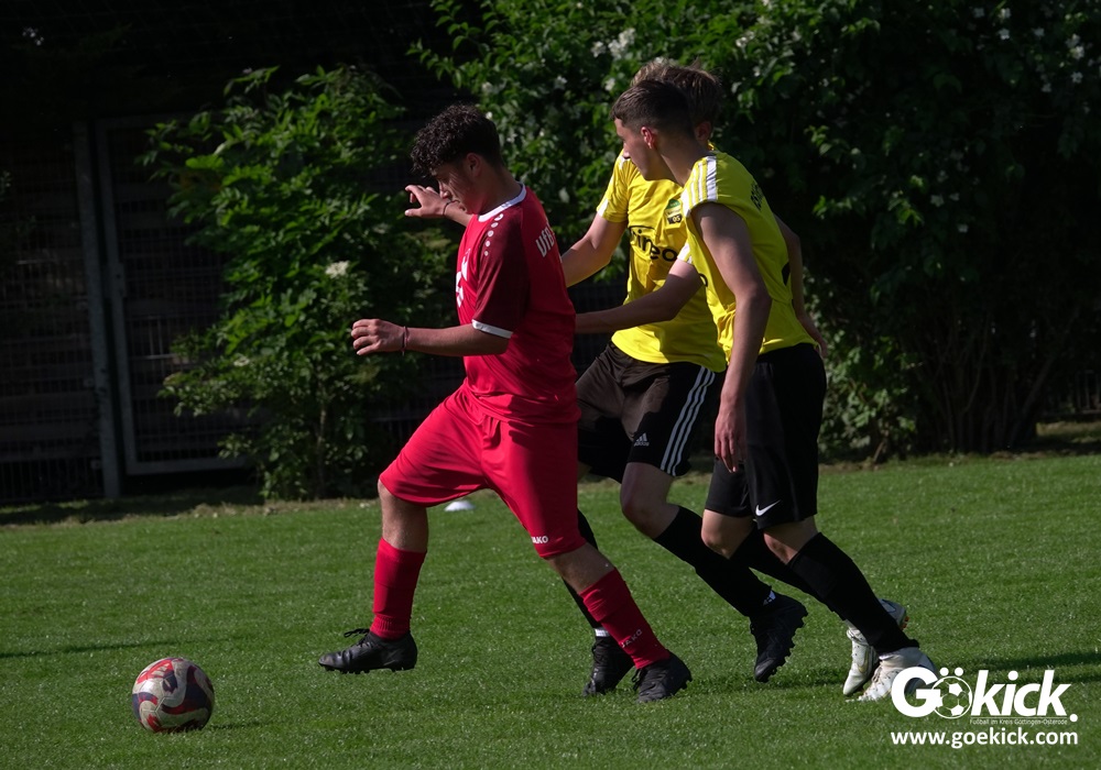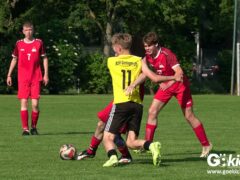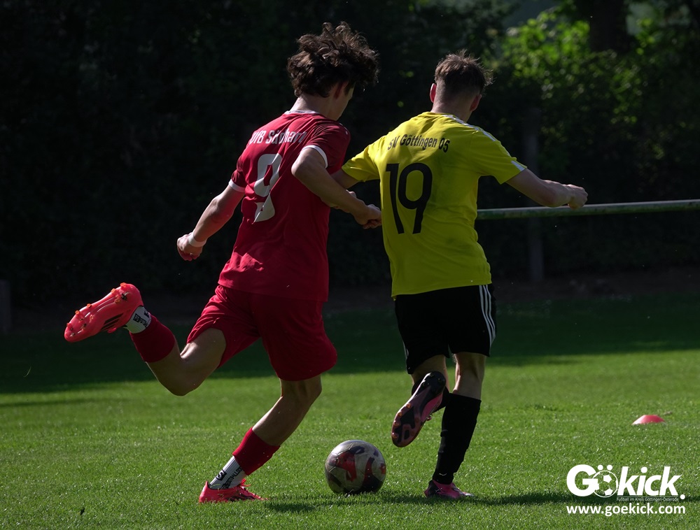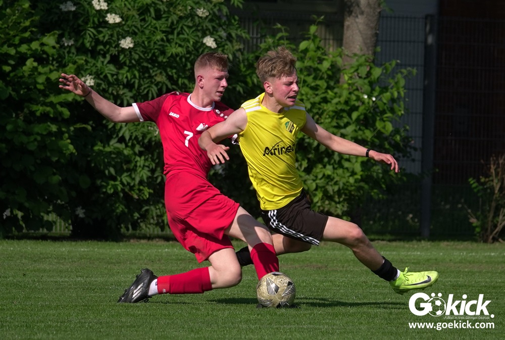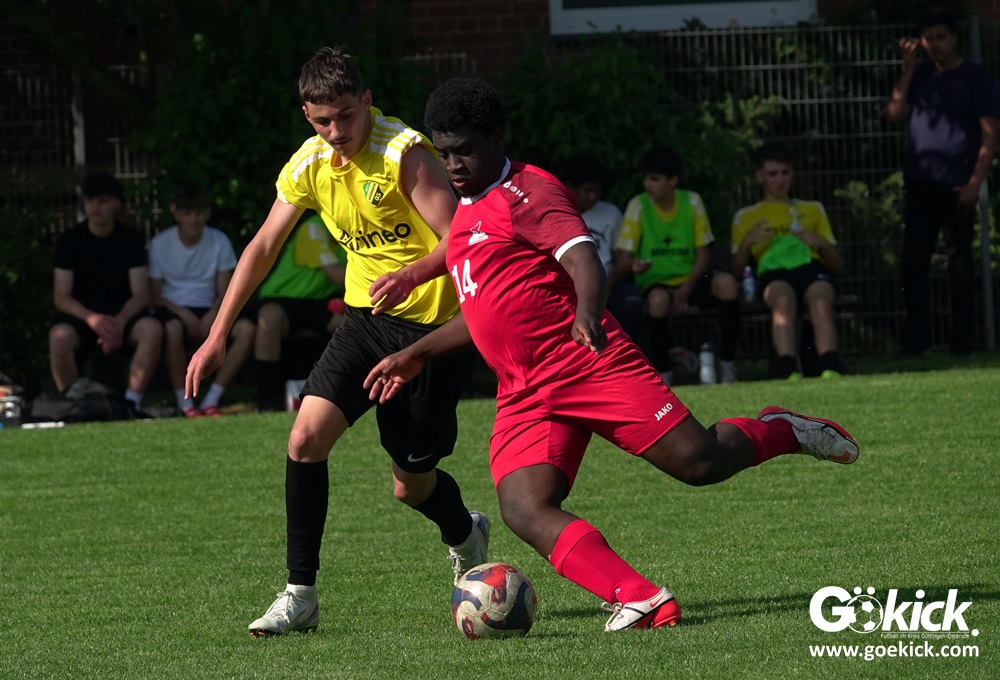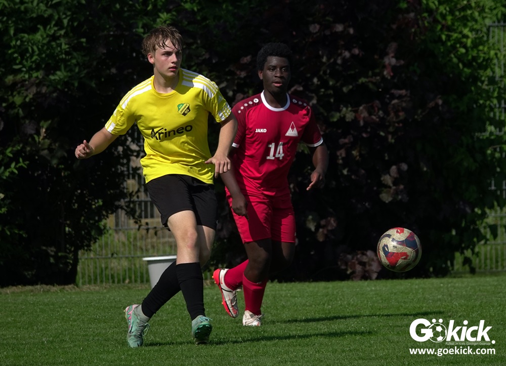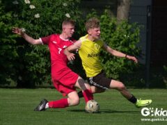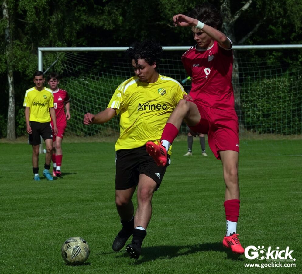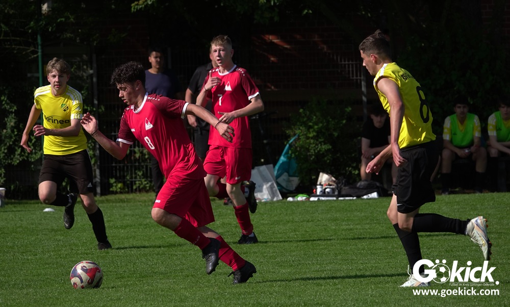 Die Meister-T-Shirts waren gedruckt, die Getränke waren kalt gestellt. Die B-Jugend-Mannschaft des RSV Geismar wollte am vergangenen Samstag mit einem Heim-Sieg über das Schlusslicht der B-Jugend-KreisligaMeisterrunde, den VfB Südharz, die Meisterschaft eintüten. Doch der Gast wehrte sich stärker, als erwartet und ließ den großen Anhang der Hausherren lange zittern. Doch letztendlich siegte der Gastgeber von Trainer Sascha Wiedemann mit 2:1 (1:1) und konnte nach dem Abpfiff über die Kreismeisterschaft jubeln. Das Ergebnis vom Verfolger-Duell zwischen der JSG HarzTor/Neuhof und der SVG Göttingen in Neuhof (2:2) war ohne Bedeutung für den Ausgang der Meisterschaft.
