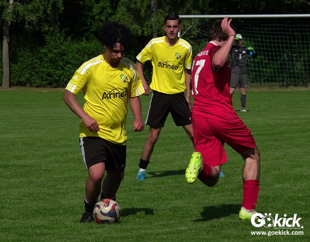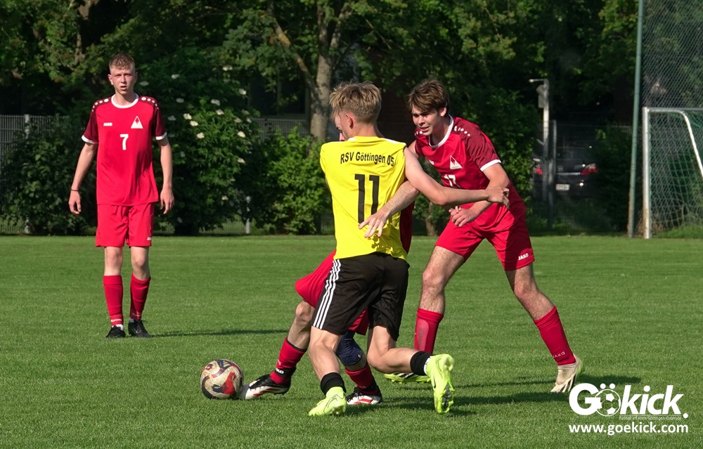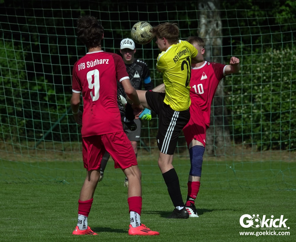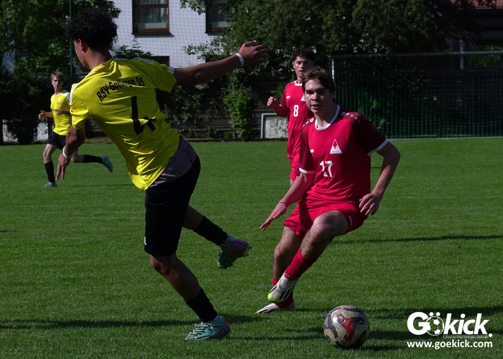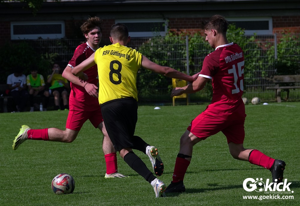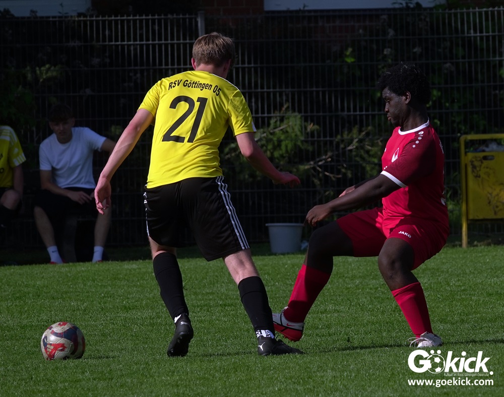 Elvis Klimenta war es, der den RSV bei hochsommerlichen Temperaturen auf dem Rasenplatz in Geismar nach 13 Minuten mit 1:0 in Führung brachte. Doch der Gast, der mit nur vier Punkten aus neun Spielen in der Meisterrunde angereist war, zeigte nach 17 Minuten, dass er nicht nur zum Gratulieren erschienen war – Mykhailo Shumylo traf zum Ausgleich. Dabei blieb es bis zum Halbzeitpfiff. Selbst ein Unentschieden hätte dem RSV zwar für die Meisterschaft gereicht, eine Niederlage sollte aber vermieden werden, weil der JSG HarzTor/Neuhof zwischenzeitlich bereits 2:0 führte.