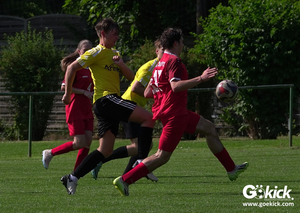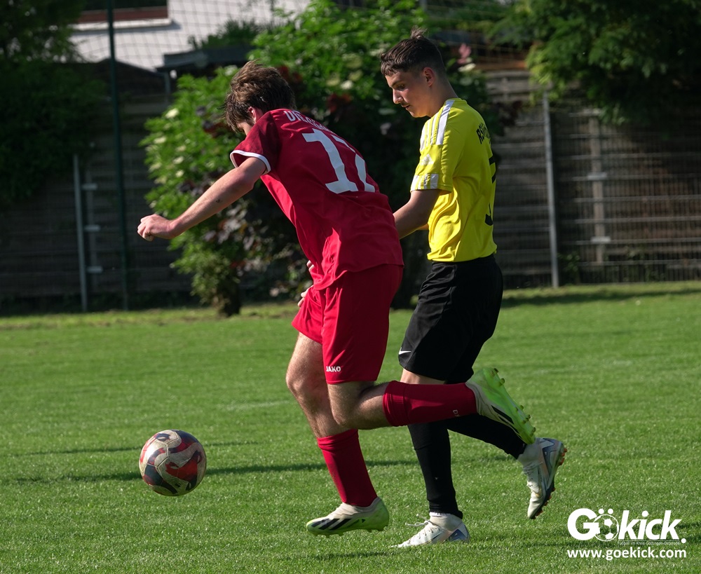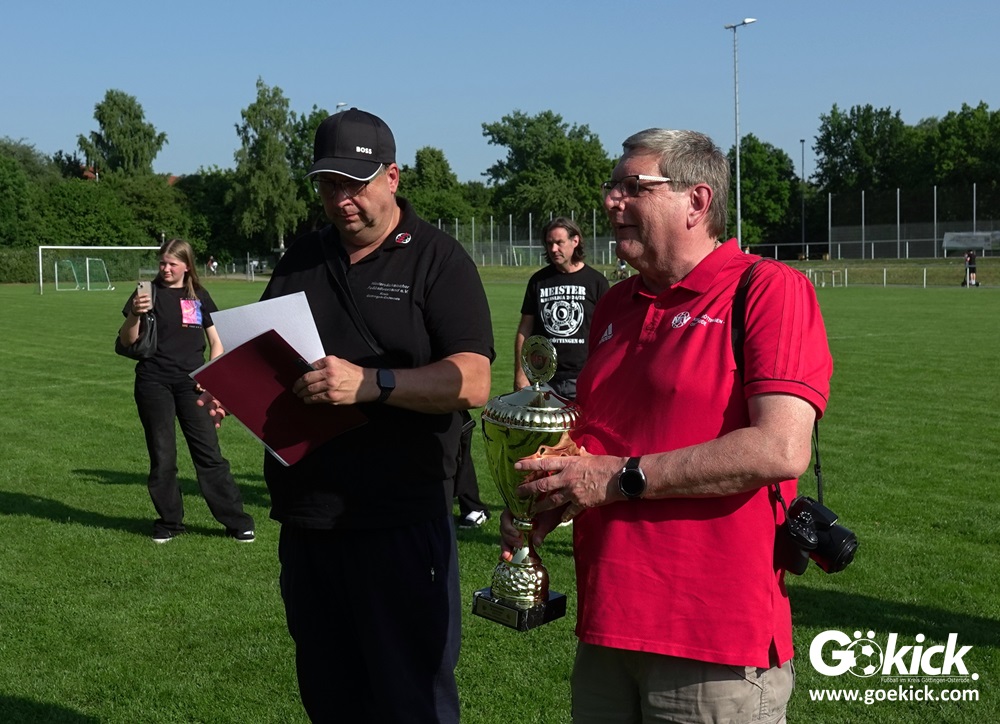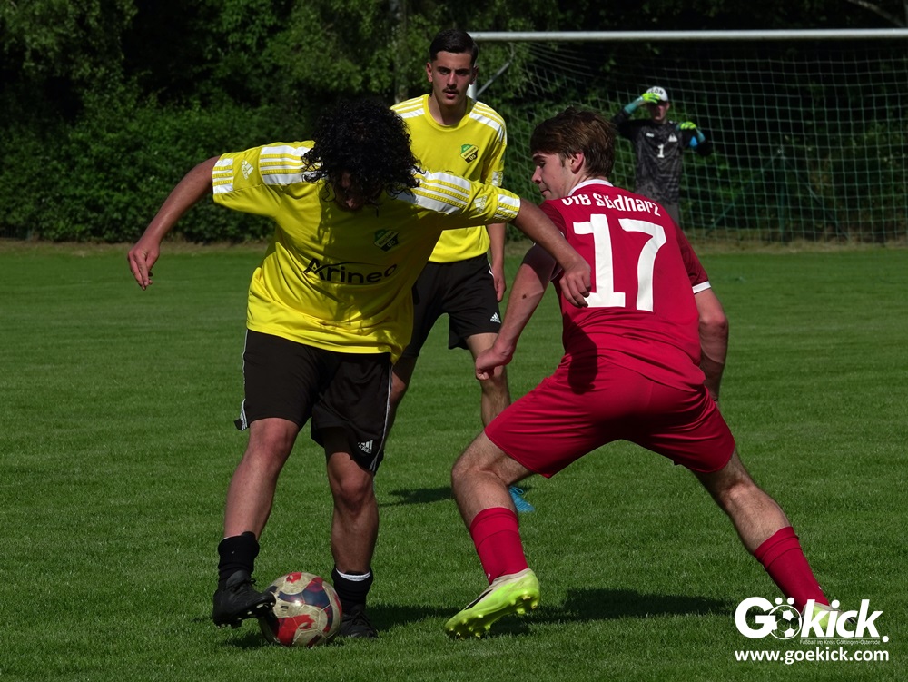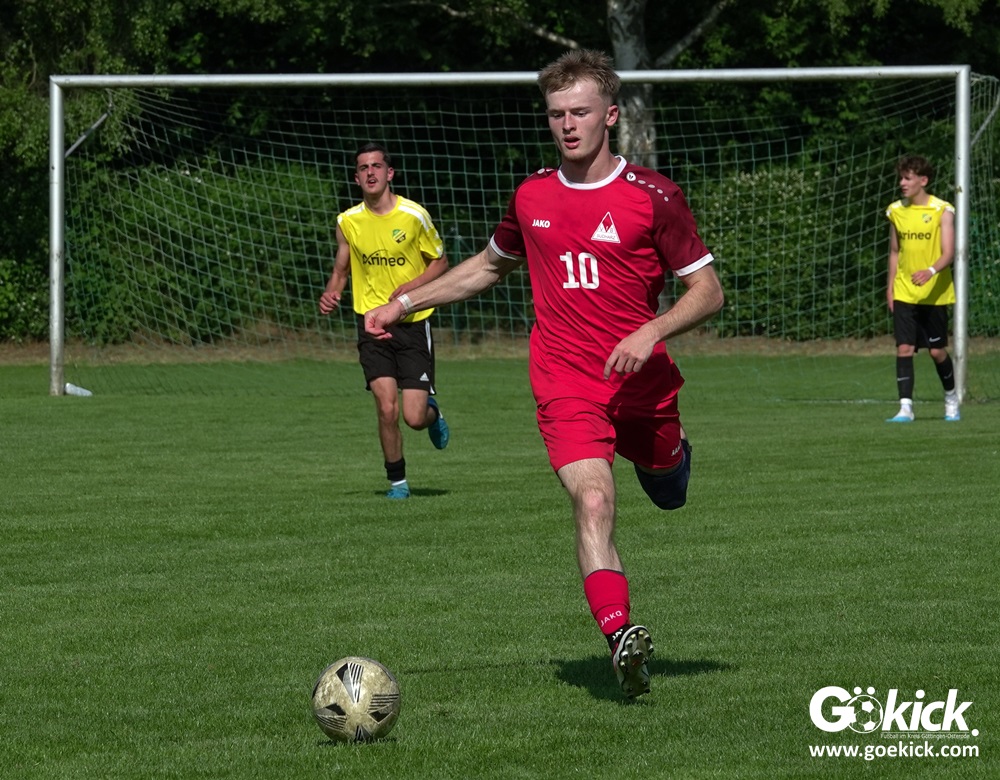 Elvis Klimenta war es, der den RSV bei hochsommerlichen Temperaturen auf dem Rasenplatz in Geismar nach 13 Minuten mit 1:0 in Führung brachte. Doch der Gast, der mit nur vier Punkten aus neun Spielen in der Meisterrunde angereist war, zeigte nach 17 Minuten, dass er nicht nur zum Gratulieren erschienen war – Mykhailo Shumylo traf zum Ausgleich. Dabei blieb es bis zum Halbzeitpfiff. Selbst ein Unentschieden hätte dem RSV zwar für die Meisterschaft gereicht, eine Niederlage sollte aber vermieden werden, weil der JSG HarzTor/Neuhof zwischenzeitlich bereits 2:0 führte.
