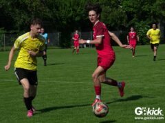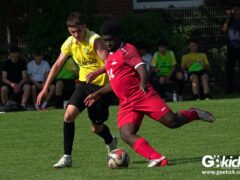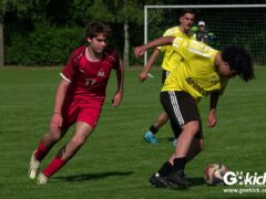 Im zweiten Abschnitt kämpften beide Teams mit hohem Einsatz. Ein zu Recht gegebener Foulelfmeter führt dann in der 67. Spielminute zur Führung für die Hausherren. Elias Haile, lautstark von seiner Mutter angefeuert, traf sicher zum 2:1 (Video). Sechs Minuten später die große Chance, die Entscheidung herbeizuführen: Erneut gab der gut leitende Schiedsrichter Sahin Bikil wegen eines Fouls Strafstoß für die Gastgeber. Diesmal sollte Diego Ratsch schießen. Doch seinen Schuss konnte Gäste-Schlussmann Keno-Marten Käse entschärfen (Video). In den Schlussminuten wurde es noch einmal aggressiv. Das ging so weit, dass ein Spieler der Gäste einem RSV-Spieler ins Gesicht schlug, wie der Unparteiische später zu Protokoll gab. Daraus entwickelte sich eine Rudelbildung mit Spielern, Funktionären und Eltern. Zum Glück eskalierte die Situation nicht. Der Südharz-Spieler wurde mit Roter Karte des Feldes verwiesen. Schiedsrichter Sahin Bikil pfiff das Spiel an, um es sofort auch zu beenden. Eine weise Entscheidung!