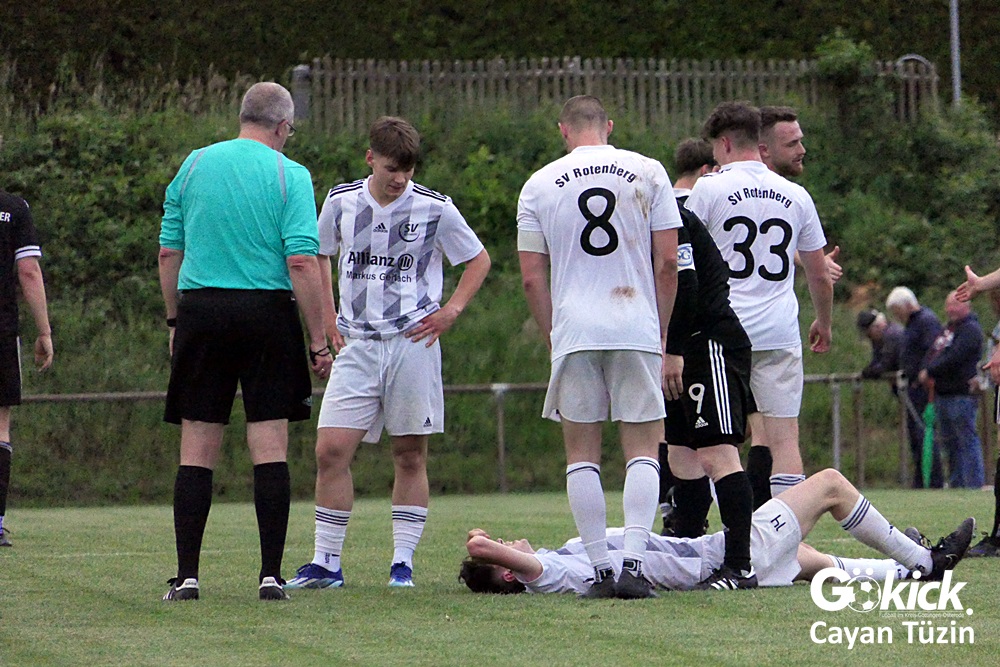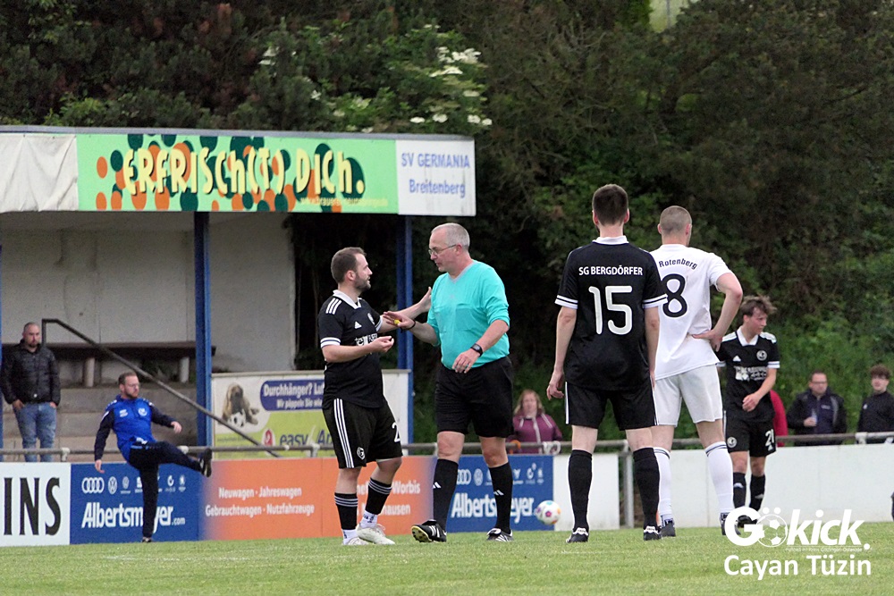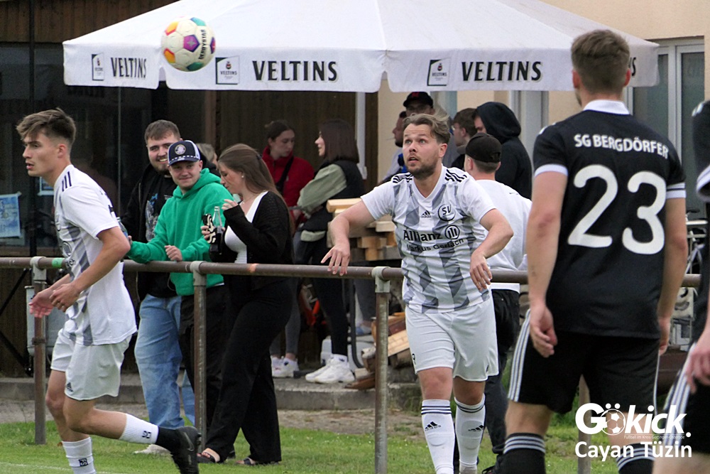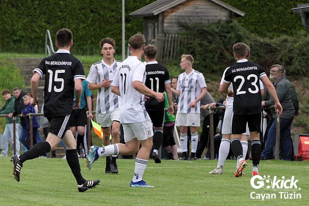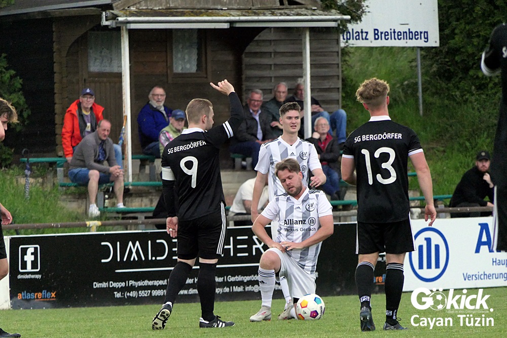 Im zweiten Abschnitt sahen die Zuschauer dann ein echtes Derby mit vielen, hitzig geführten Zweikämpfen. In der 68. Spielminute zeigte der gut leitende Unparteiische nach einem Foul von Bergdörfers Schlussmann Patrick Otto in seinem Strafraum auf den Punkt. Andre Diederich versenkte den Strafstoß zum 1:1-Ausgleich. Es ging weiter mit dem temporeichen Derby. In der86. Spielminute dann die Szene des Tages: Lennart Jauz war über die linke Seite in den Gäste-Strafraum eingedrungen, spielte noch einen Abwehrspieler aus und vollendete aus spitzem Winkel zur 2:1-Führung der Hausherren. In der Nachspielzeit ließ Gäste-Schlussmann Leon Hass nach einer Flanke von der rechten Seite den Ball vor die Füße von Tim Jünemann fallen, der aus zehn Metern zum 3:1 einschob. Damit war die Partie zu Ende und die SG Bergdörfer gewann das letzte Eichsfeld-Derby dieser Saison. Das Hinspiel am 14. Mai hatte der SV Rotenberg daheim noch mit 2:1 gewonnen.