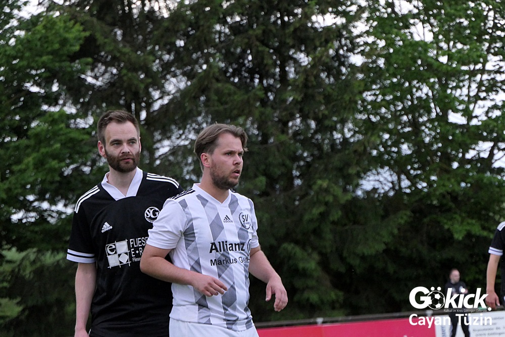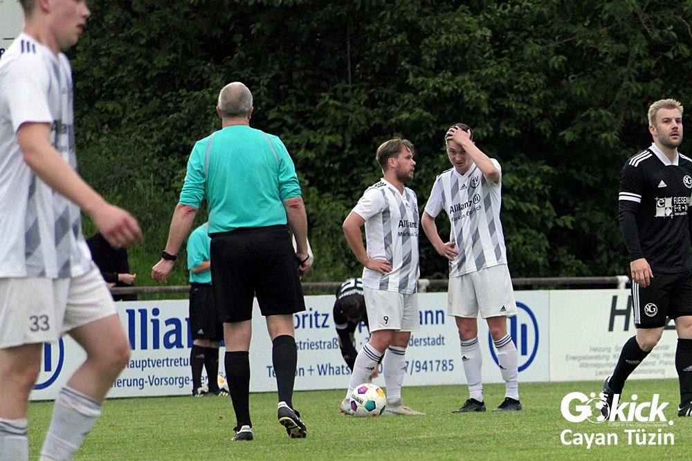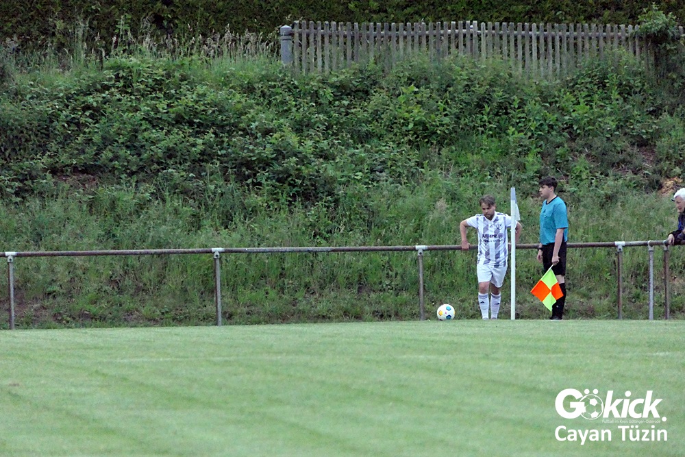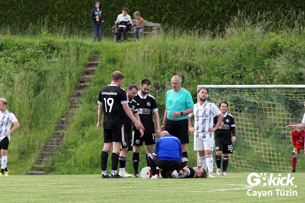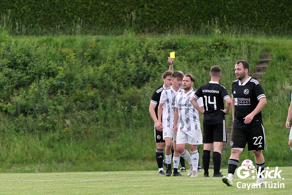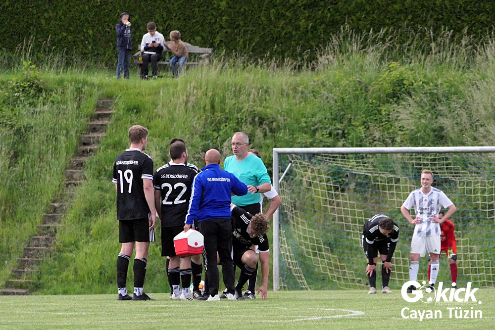 Die etwa 80 Zuschauer sahen sofort, dass die SG Bergdörfer dieses Derby gewinnen wollte. Nach einer Ecke in der 6. Spielminute vollendete Luca Michael Rusalo im Nachschuss zentral aus 12 Metern zur Führung der Hausherren. Anschließend jedoch waren kaum gefährliche Aktionen auf beide Seiten zu sehen, weil beide Abwehrreihen kompakt standen oder der entscheidende Pass nicht ankam. In der 40. Spielminute vergab Christoph Eckermann die große Chance zum 2:0. Mit der knappen Führung von 1:0 für die SG Bergdörfer ging es in die Halbzeitpause.