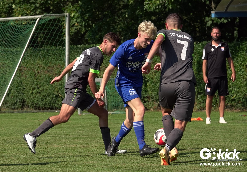 Tobias Godehard brachte sein Team schon nach wenigen Sekunden mit 1:0 in Führung. Doch die Gäste ließen sich so früh noch nicht abschütteln. Daniel Bikic traf nach 17 Minuten vom Strafstoßpunkt zum Ausgleich für den TSV. Der schnelle Nico Apel sorgte nach 26 Minuten für die erneute Führung für das Team des wegen einer familiären Angelegenheit abwesenden neuen Trainers Ercan Beyazit. Er wurde an der Seitenlinie von seinem Vorgänger Steve Piper vertreten, der dem Verein freundschaftlich verbunden bleibt. Fünf Minuten vor dem Seitenwechsel erzielte der eingewechselte Dimitrios Behrens den erneuten Ausgleich für seine Farben. Beim Stande von 2:2 ging es in die Halbzeitpause.
