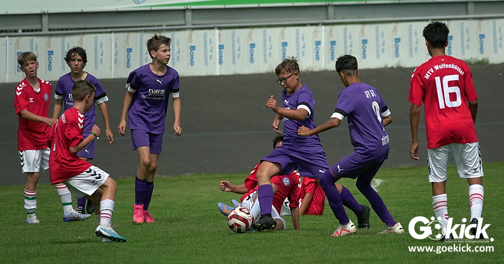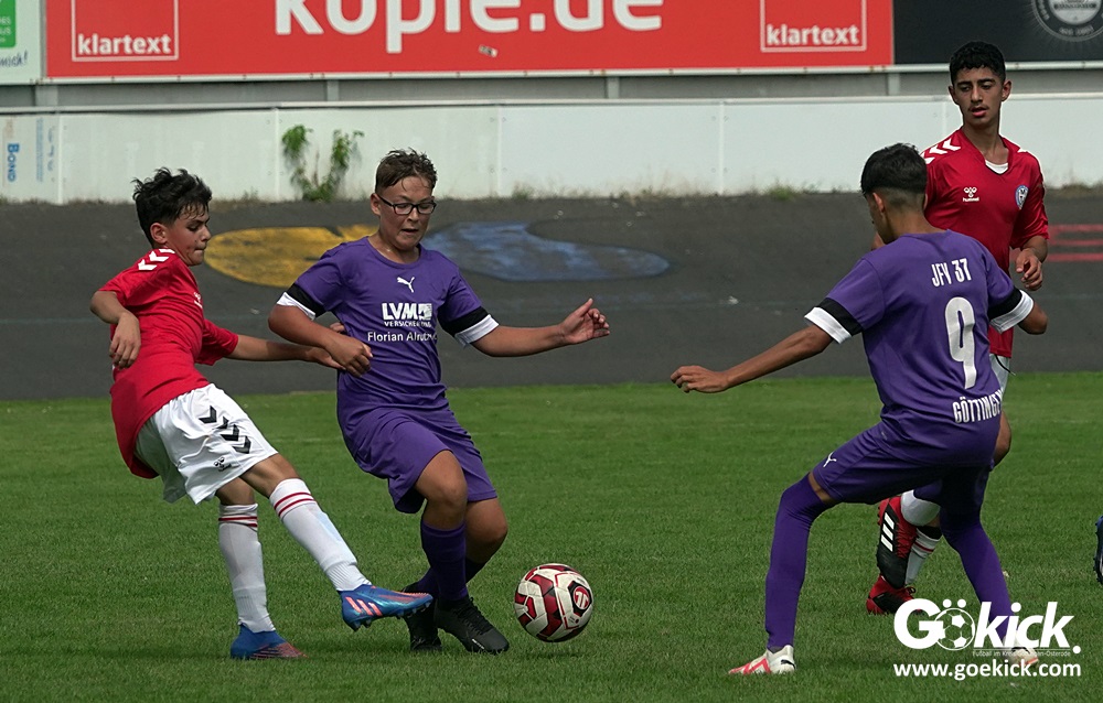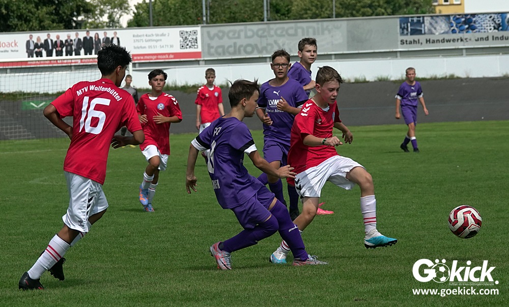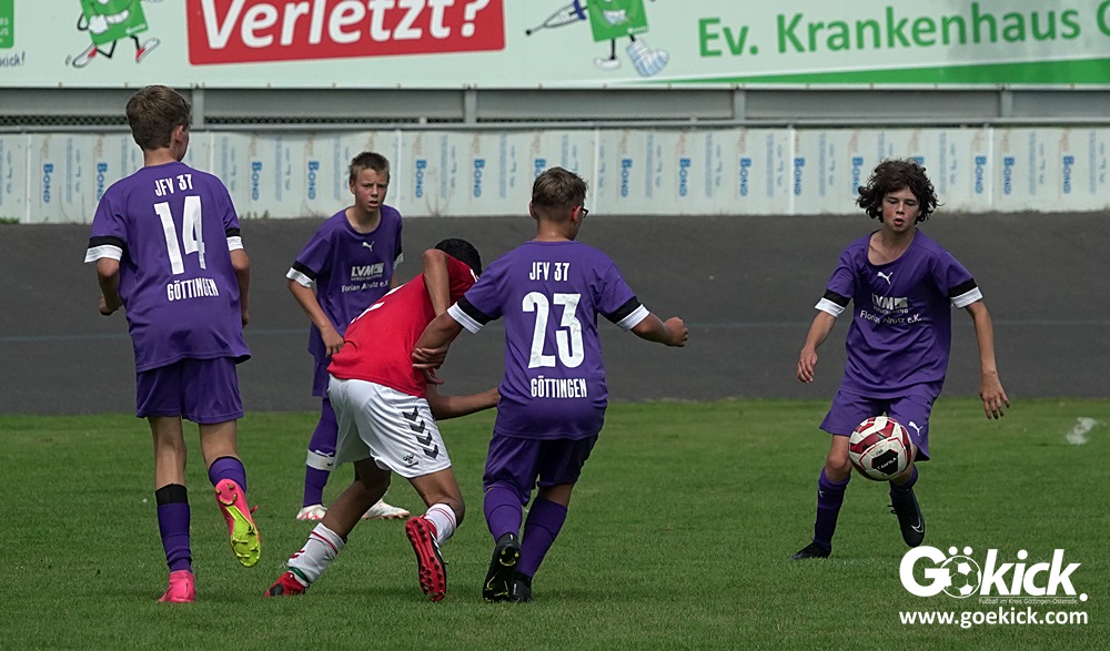Die zweite C-Jugend-Mannschaft des JFV 37 Göttingen (U14) befindet sich als frischgebackener Kreismeister aktuell in der Vorbereitung auf die neue Bezirksliga-Spielzeit. Das Team von Trainer Robin Blumenstein testete am vergangenen Samstag im Rahmen des „JFV 37-Tages“ im KRÜGERPARK am Sandweg gegen die zweite Mannschaft des MTV Wolfenbüttel aus der Bezirksliga-Mitte. Nach einem ausgeglichenen Spiel trennten sich die Teams leistungsgereicht 1:1-unentschieden.