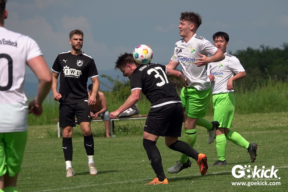 Die Zuschauer auf dem idyllisch gelegenen Sportplatz in Esebeck sahen im ersten Durchgang eine ausgeglichene Partie mit spielerischen Vorteilen für die Hausherren. Der Gast verlegte sich auf lange Bälle, brachte aber den Gastgeber fast nie in Gefahr. Mit dem für die Gäste schmeichelhaften 0:0 ging es in die Halbzeitpause.