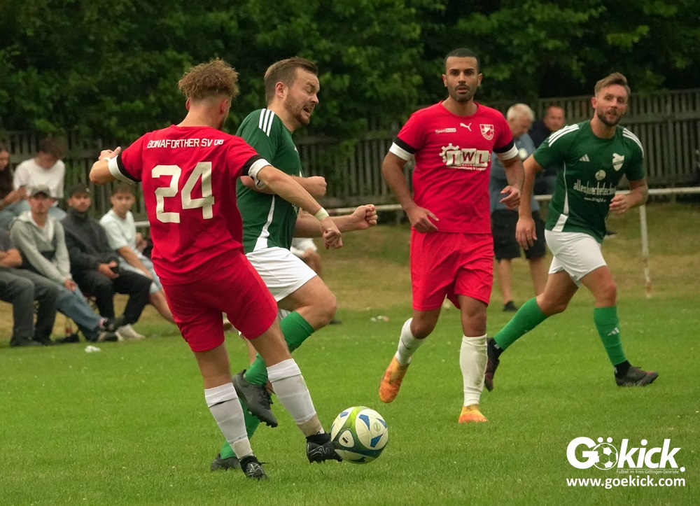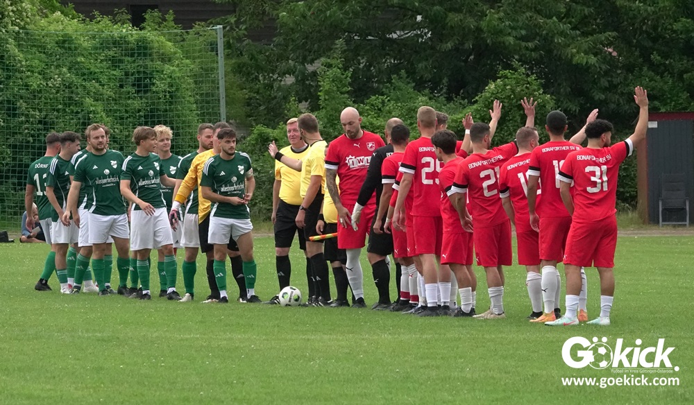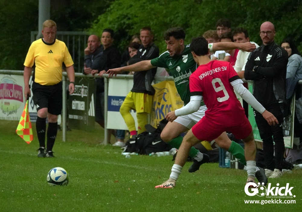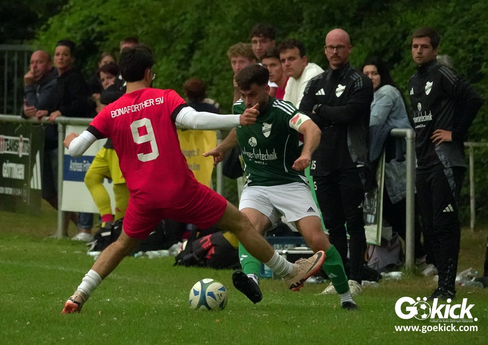 Im Finale war der Bonaforther SV von Anbeginn das bessere Team. Nach elf Minuten ging er durch Ahmet Demirtas mit 1:0 in Führung. Der Torschütze sah, dass der SG-Schlussmann Mike Stoebener zu weit vor seinem Kasten stand und überlupfte diesen aus zwölf Metern. Trotz weiterer Chancen blieb es bis zum Halbzeitpfiff von Schiedsrichter Devin Lübbe bei der verdienten 1:0-Führung der Bonaforther.