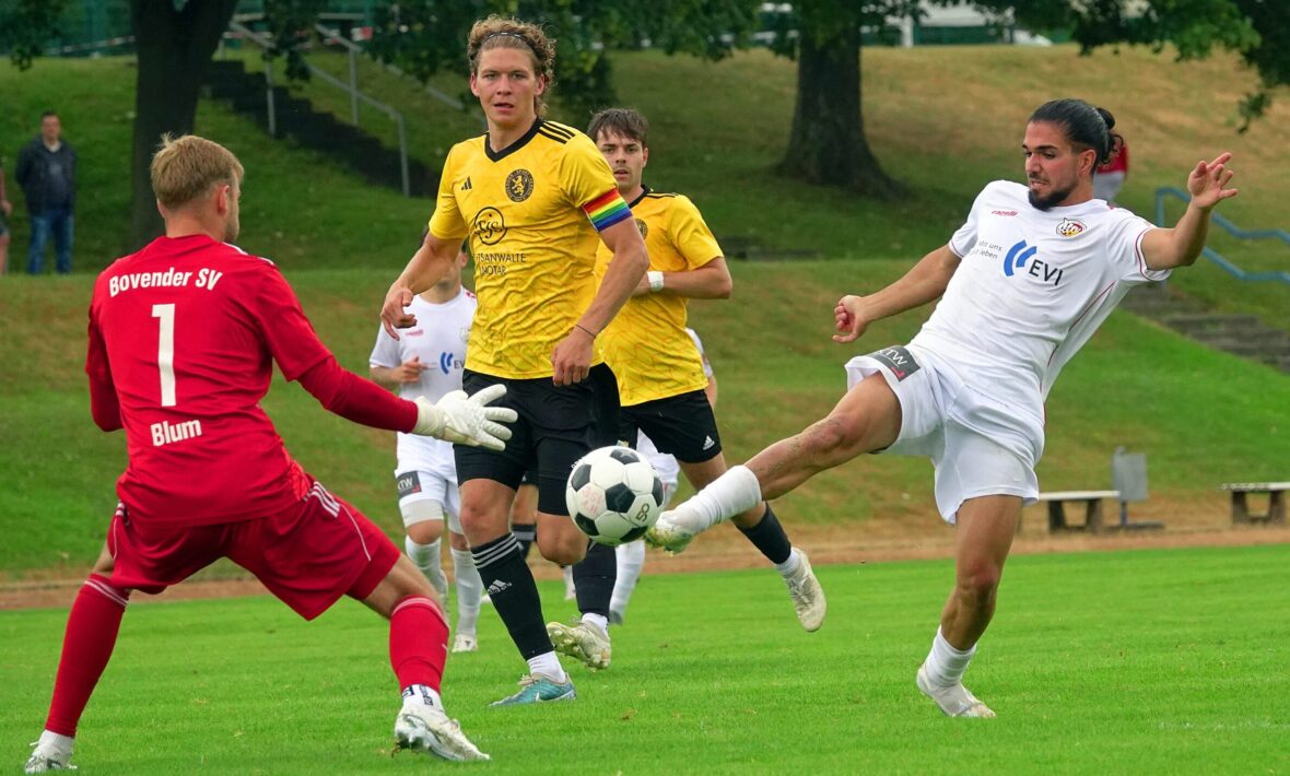 Einen starken Gast hatte sich der Landesligist Bovender SV im zweiten Testspiel eingeladen. Nach dem 0:5 beim Oberliga-Zehnten Lupo Martini Wolfsburg am 6. Juli, stand am vergangenen Samstag der Oberliga-Achte VfV Borussia 06 Hildesheim am Südring auf dem Platz. Für das Team von Trainer Yannick Broscheit ein echter Prüfstein. Und sein Team schlug sich beim1:3 (0:1) achtbar.