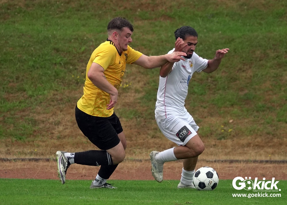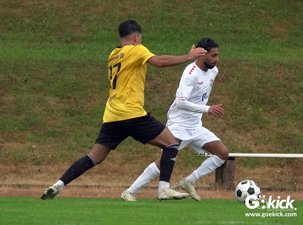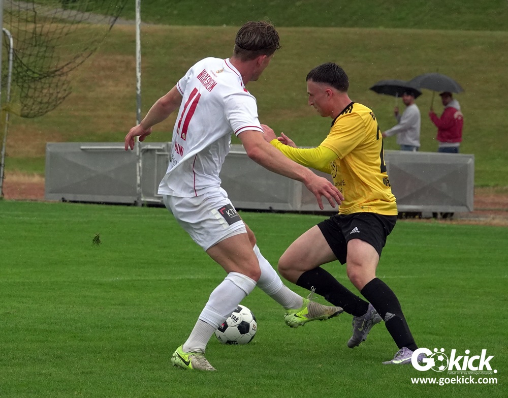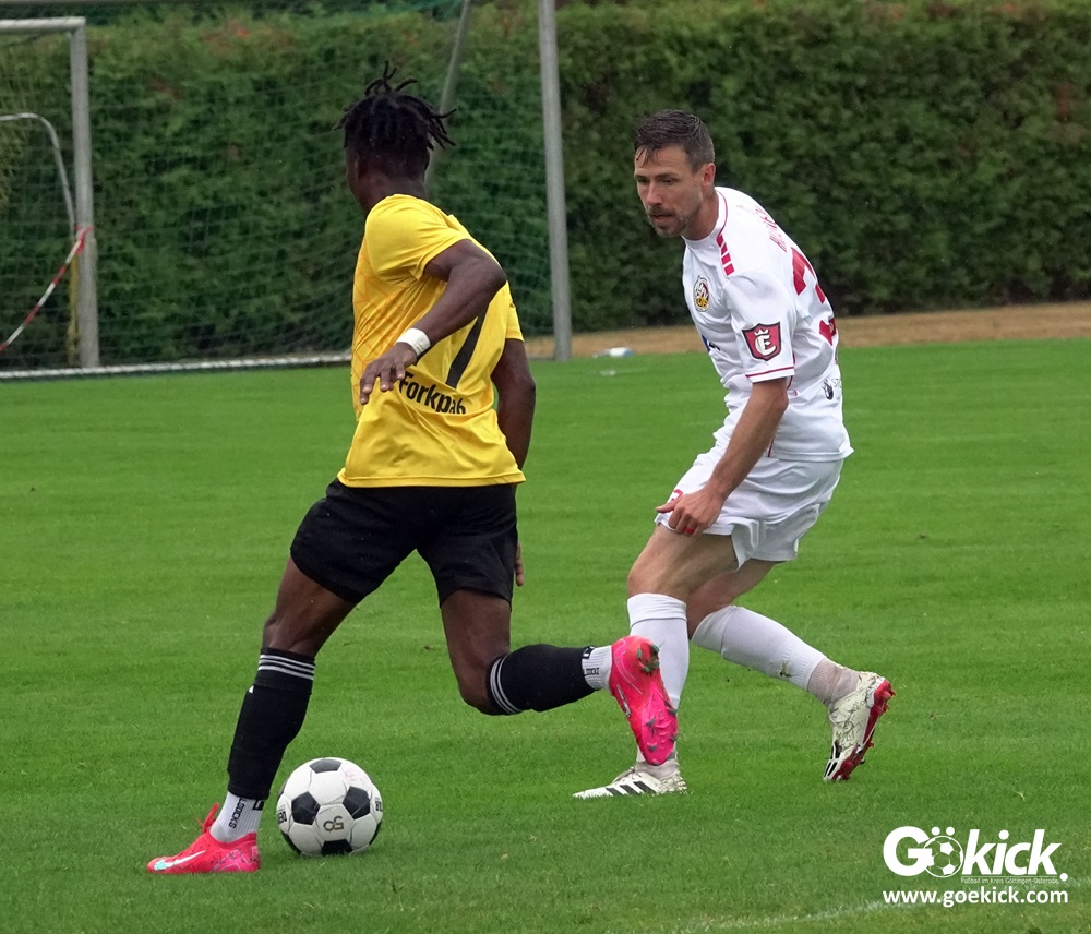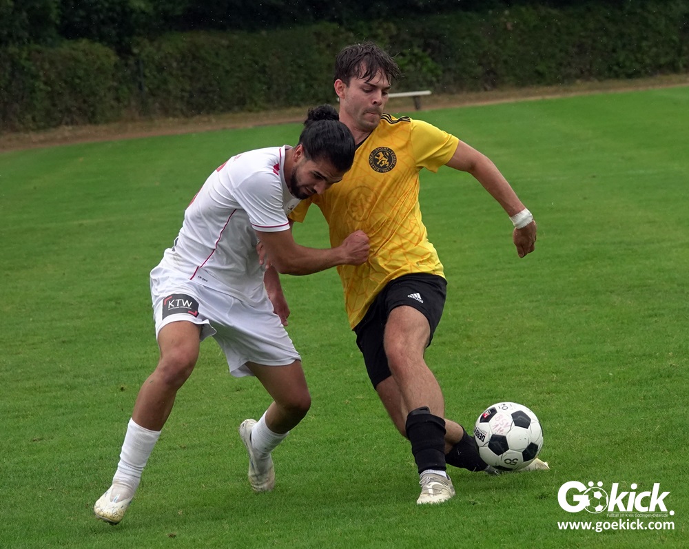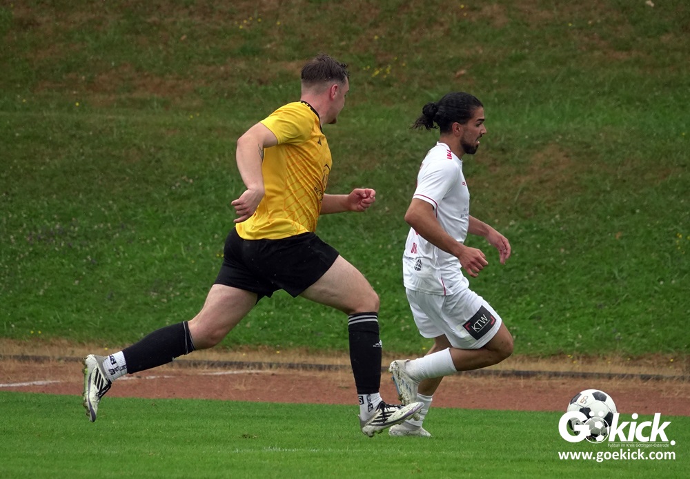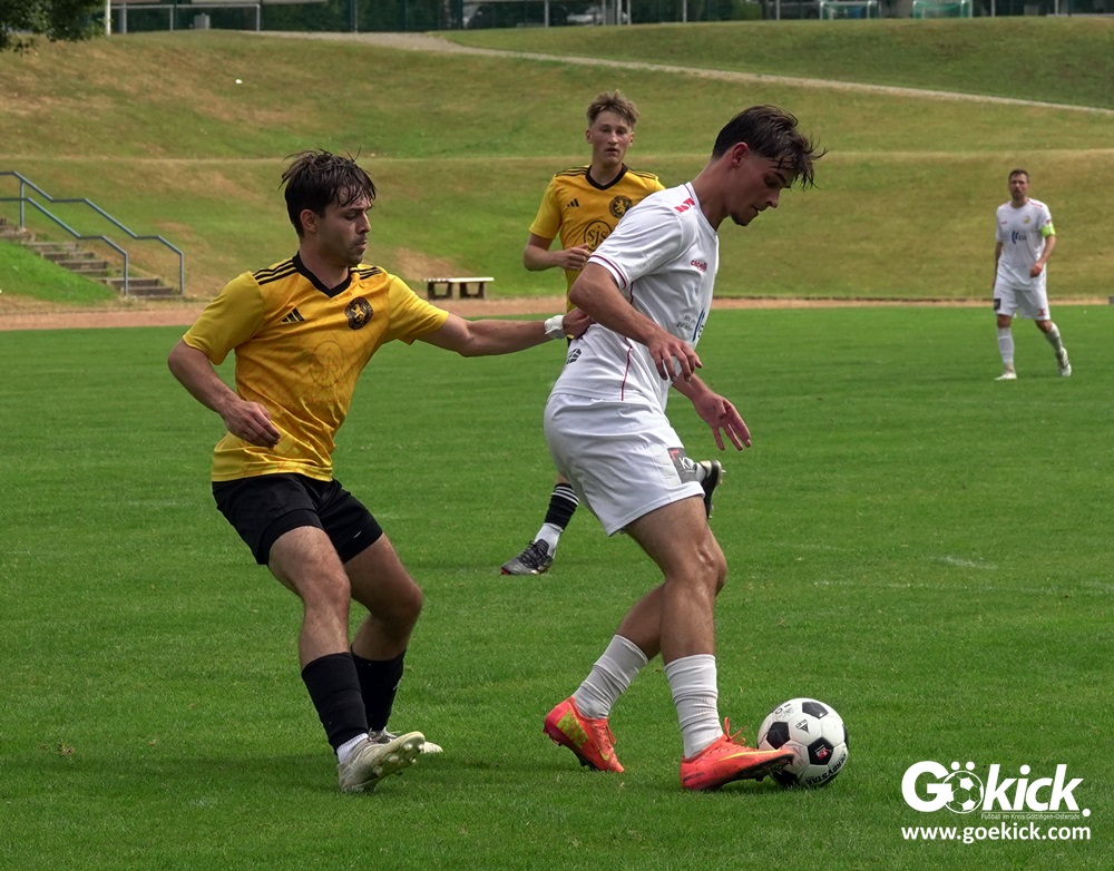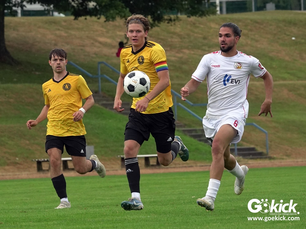 Der Oberligist war technisch überlegen und schlug ein hohes Tempo an. Entsprechend musste der Gastgeber oft hinterher laufen. Doch die Defensive stand lange Zeit sicher. In der 20. Spielminute jedoch brach der Gast über seine linke Angriffsseite durch und Mick Peter Gudra, beim FC Schalke 04 ausgebildet und im Besitz von Zweitliga-Erfahrung, vollendete im Zentrum, fünf Meter vor Bovendens neuem Schlussmann Theodor Bachmann sicher. Doch für mehr reichte es nicht für die Gäste in der verregneten ersten Halbzeit. Beim Spielstand von 0:1 wurden die Seiten gewechselt.