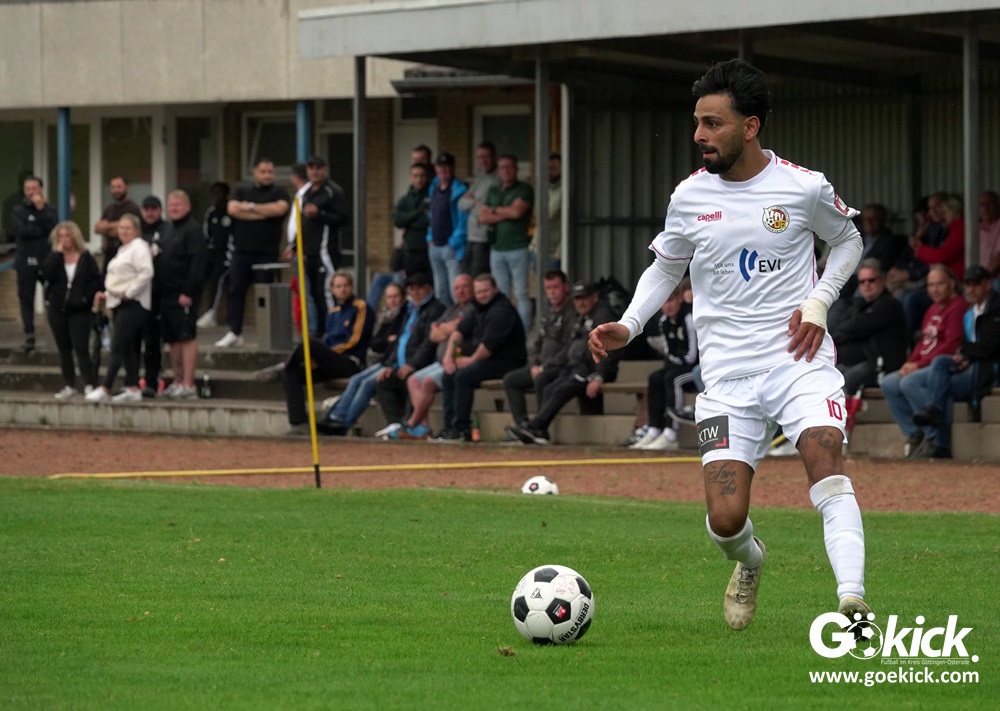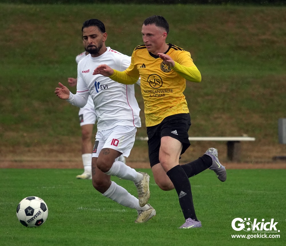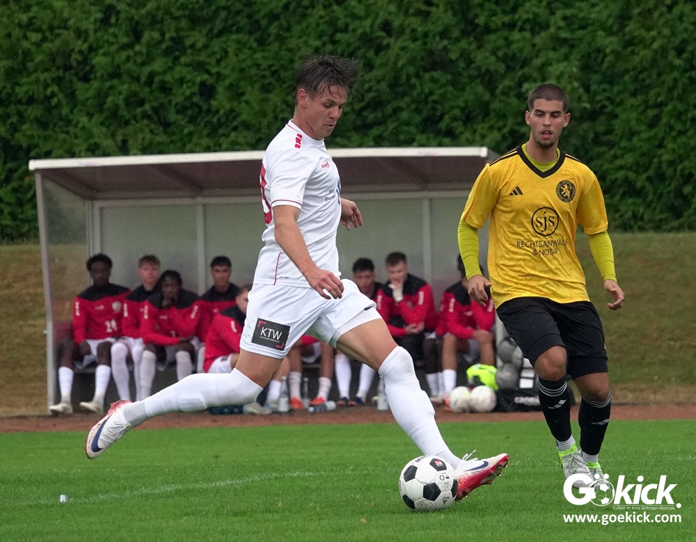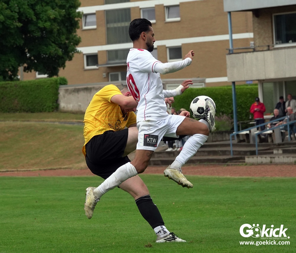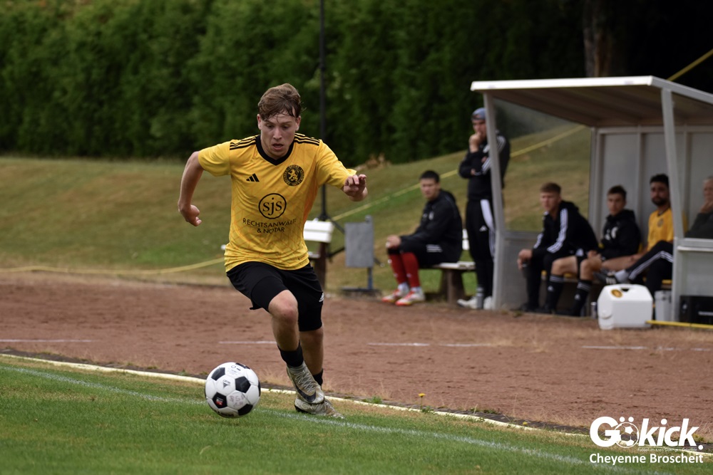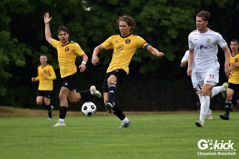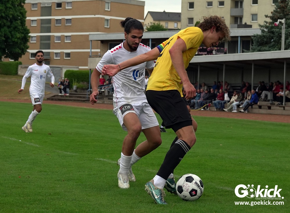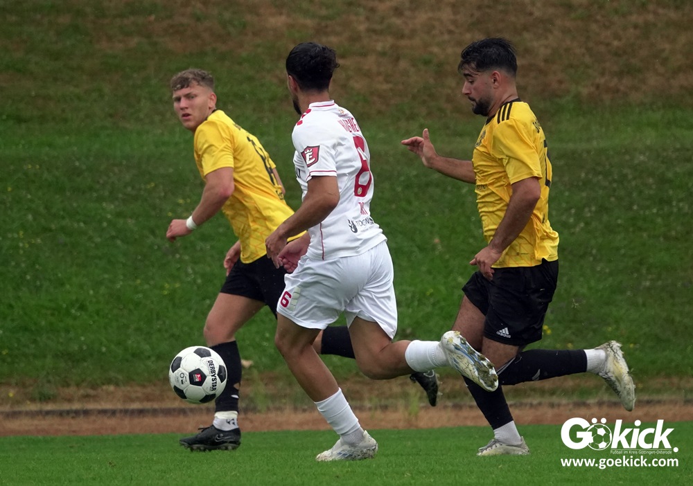 Der Oberligist war technisch überlegen und schlug ein hohes Tempo an. Entsprechend musste der Gastgeber oft hinterher laufen. Doch die Defensive stand lange Zeit sicher. In der 20. Spielminute jedoch brach der Gast über seine linke Angriffsseite durch und Mick Peter Gudra, beim FC Schalke 04 ausgebildet und im Besitz von Zweitliga-Erfahrung, vollendete im Zentrum, fünf Meter vor Bovendens neuem Schlussmann Theodor Bachmann sicher. Doch für mehr reichte es nicht für die Gäste in der verregneten ersten Halbzeit. Beim Spielstand von 0:1 wurden die Seiten gewechselt.