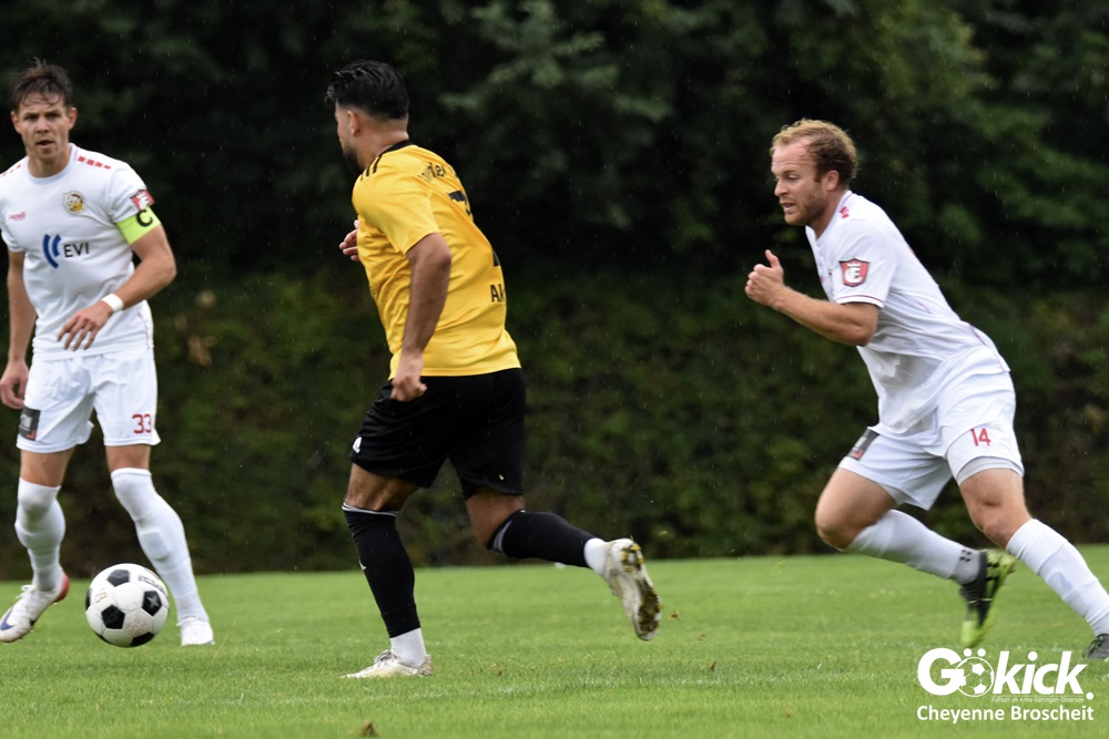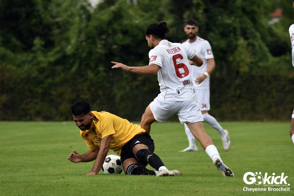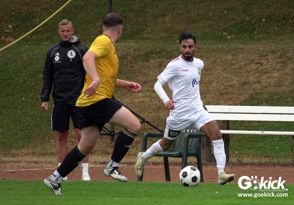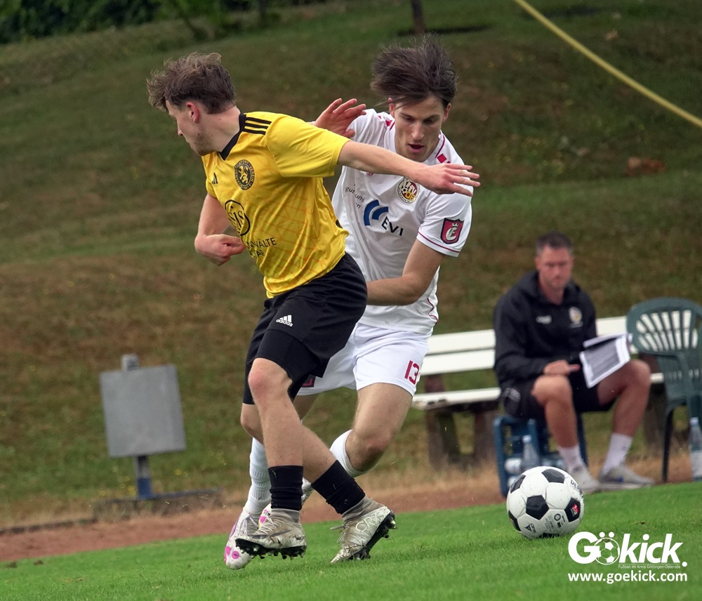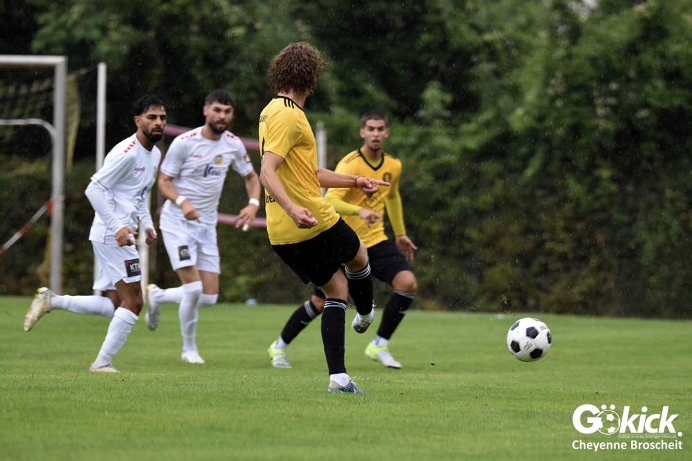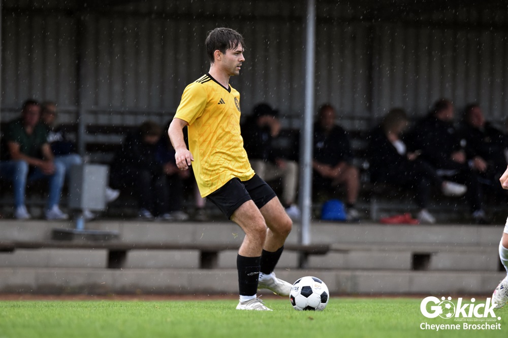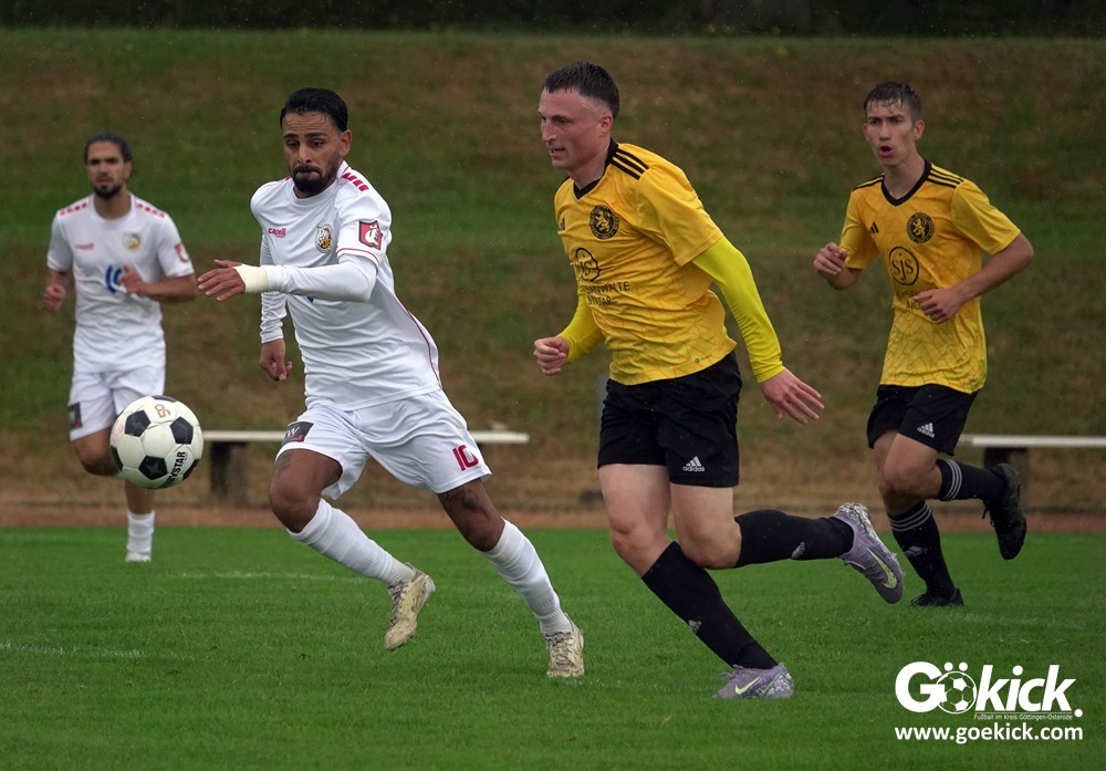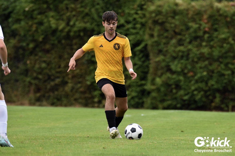 Der Oberligist war technisch überlegen und schlug ein hohes Tempo an. Entsprechend musste der Gastgeber oft hinterher laufen. Doch die Defensive stand lange Zeit sicher. In der 20. Spielminute jedoch brach der Gast über seine linke Angriffsseite durch und Mick Peter Gudra, beim FC Schalke 04 ausgebildet und im Besitz von Zweitliga-Erfahrung, vollendete im Zentrum, fünf Meter vor Bovendens neuem Schlussmann Theodor Bachmann sicher. Doch für mehr reichte es nicht für die Gäste in der verregneten ersten Halbzeit. Beim Spielstand von 0:1 wurden die Seiten gewechselt.