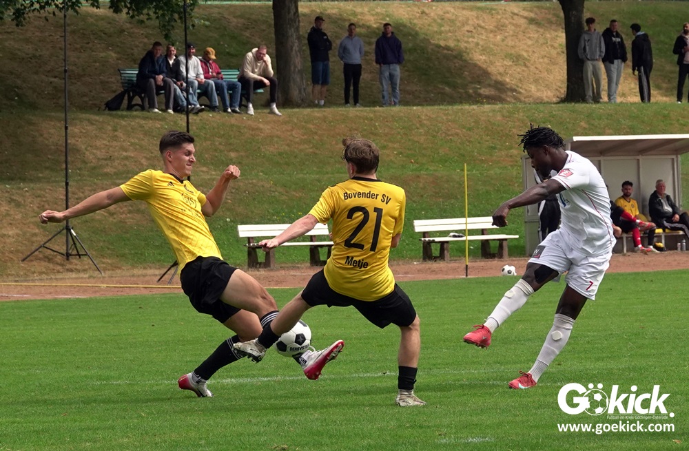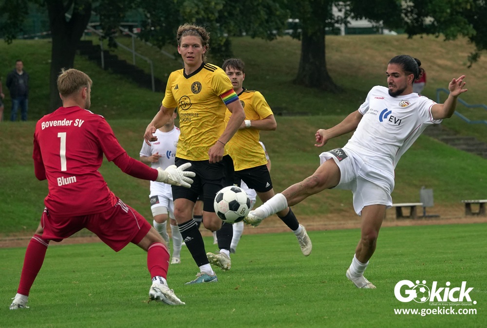 Einen starken Gast hatte sich der Landesligist Bovender SV im zweiten Testspiel eingeladen. Nach dem 0:5 beim Oberliga-Zehnten Lupo Martini Wolfsburg am 6. Juli, stand am vergangenen Samstag der Oberliga-Achte VfV Borussia 06 Hildesheim am Südring auf dem Platz. Für das Team von Trainer Yannick Broscheit ein echter Prüfstein. Und sein Team schlug sich beim1:3 (0:1) achtbar.