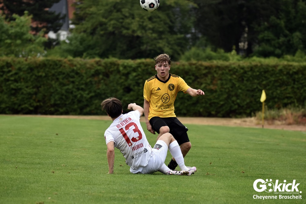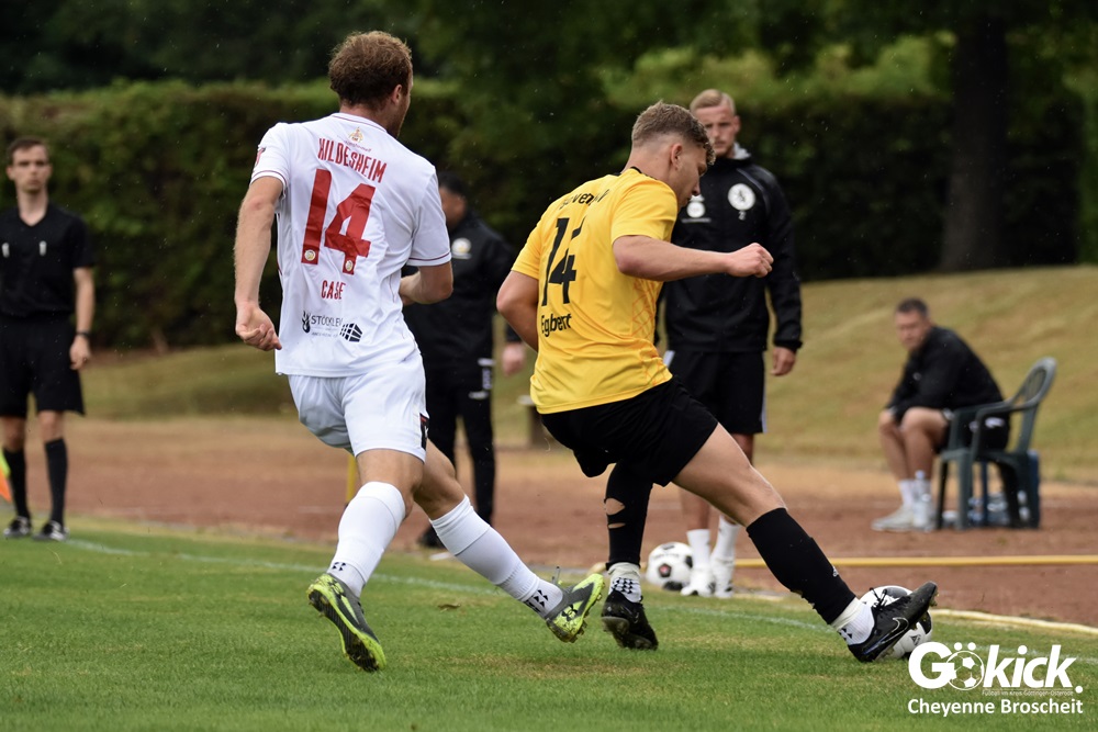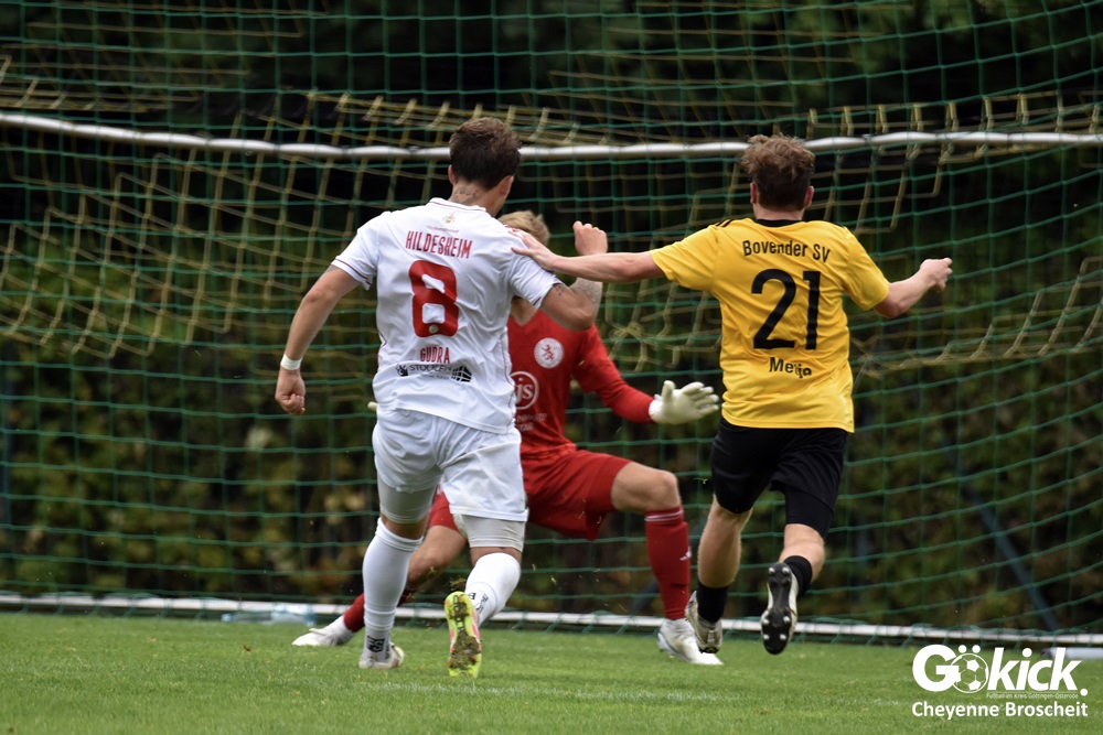 Broscheit wechselte zur Pause drei Spieler ein – es ist schließlich Vorbereitungszeit. Hildesheim blieb weiter überlegen, doch es fehlte oft die Gradlinigkeit vor dem Tor. Spartas ehemaliger Torjäger Attila Kaplan, der einst in Hildesheim spielte, fand die Spielweise der Gäste zu kompliziert und nicht konsequent genug. Mit ihren Fähigkeiten hätte der Gast die Partie frühzeitig entscheiden müssen. Mit seinem zweiten Tagestreffer gelang Mick Peter Gundra nach 73 Minuten das 2:0. Der im zweiten Durchgang im Bovender Tor stehende Jan-Niklas Blum war gegen den Flachschuss ohne Abwehrchance. Das wiegte die Gäste in Sicherheit. Denn nur eine Minute später erahnte der eingewechselte Dennis Falinski einen Querpass vor dem Gäste-Strafraum. Er schoss direkt auf das Hildesheimer Tor und erzielte den Anschlusstreffer für die wacker kämpfenden Hausherren. Bis in die Nachspielzeit hinein gestaltete der BSV den Ausgang dieser Partie offen, in der 93. Spielminute fiel dann doch das 3:1 für den Oberligisten. Dabei blieb es bis zum Schlusspfiff von Schiedsrichter Liam Maurits Draf, der keine Mühe mit der fairen Partie hatte.
