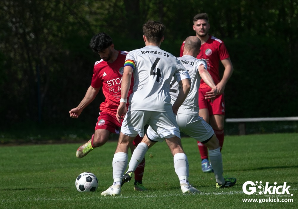Drei Minuten waren im zweiten Durchgang gespielt, da gelang Raschid Younis der überraschende Ausgleich für die Gäste. Im weiteren Verlauf der zweiten Halbzeit blieb der Bovender SV das bessere Team, belohnte sich aber nicht für seinen Aufwand. Am Ende teilten die Kontrahenten beim 1:1-Endstand die Punkte am Südring.