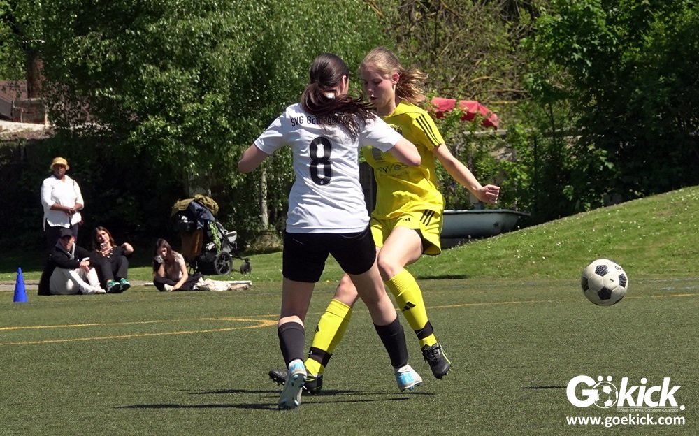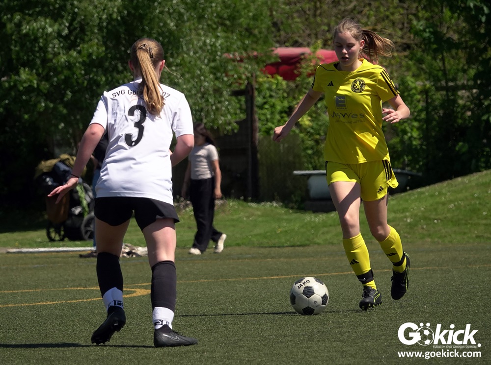 Der Bovender SV dominierte am Samstag von Anbeginn das Geschehen. Angeführt von der überragenden Carlotta Kaiser rollte Angriff auf Angriff auf das SVG-Tor. Hätte SVG-Schlussfrau Tabea Krengel nicht einen so starken Tag gehabt, wäre die SVG bereits früh in Rückstand geraten. So dauerte es bis zur 27. Spielminute, ehe die Kapitänin Carlotta Kaiser mit einem Flachschuss aus 10 Metern die Führung für die Gäste erzielte. Die SVG kämpfte wacker, gegen den starken Gegner erarbeitete sie sich aber nur wenige Chancen. Mit der 1:0-Führung ging es auch in die Pause.