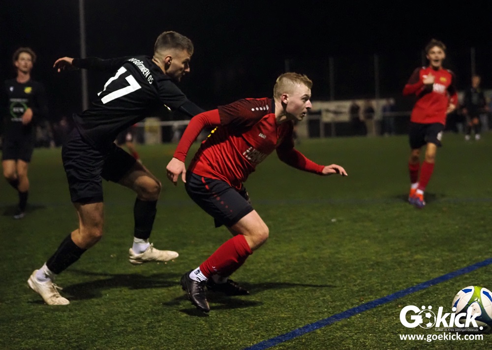 In der Schlussphase warf der RSV Geismar unter der Leitung von Trainer Lasse Ahl noch einmal alles nach vorn. Erheiternd die Dialoge, die der Göttinger Trainer mit Mitgliedern des Stabes seines Gegenübers, Philipp Weißenborn, führte. Beide Teams scheiterten jeweils einmal am Aluminium, es blieb bis zum Abpfiff von Schiedsrichter Devin Lübbe ein offener Schlagabtausch.