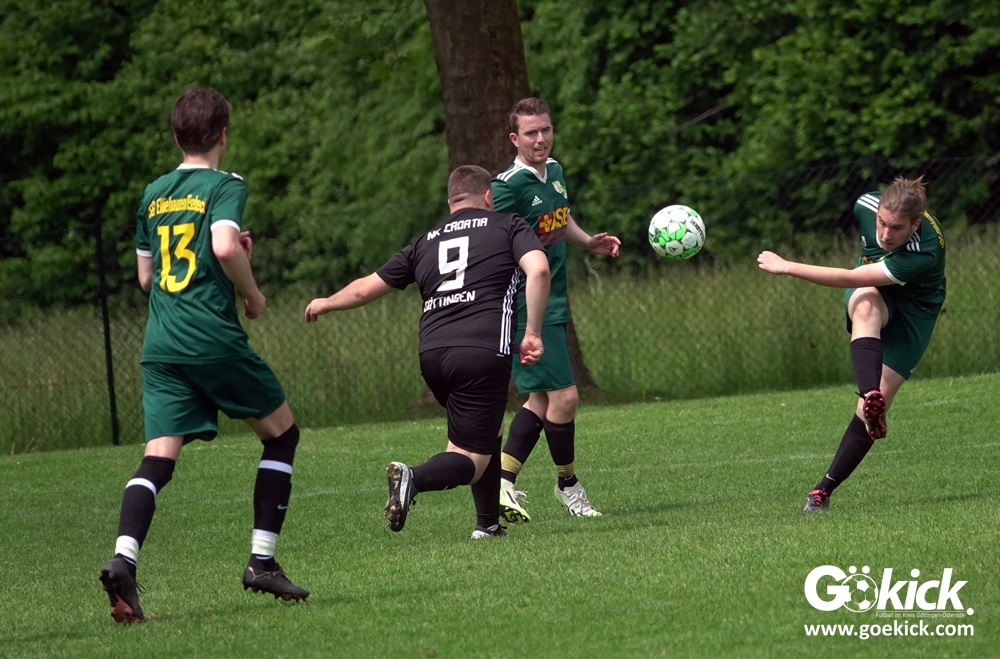 Die gute Bilanz der zweiten Mannschaft der SG Elliehausen/Esebeck wurde am Pfingstmontag etwas getrübt. Gegen die zweite Mannschaft des NK Croatia, mit 13 Punkten ein Kellerkind der 3. Kreisklasse C, unterlag die SG mit 1:2 (1:0). Damit verpasst das Team aus dem Nordwesten Göttingens, den zweiten Tabellenplatz zu erobern. Die Croatia-Reserve hingegen klettert auf Platz sechs der Tabelle der Liga.