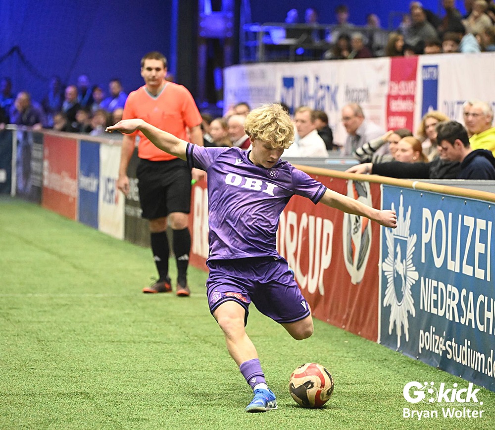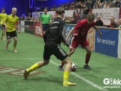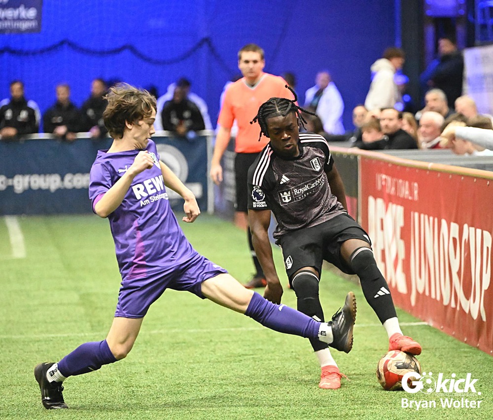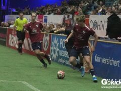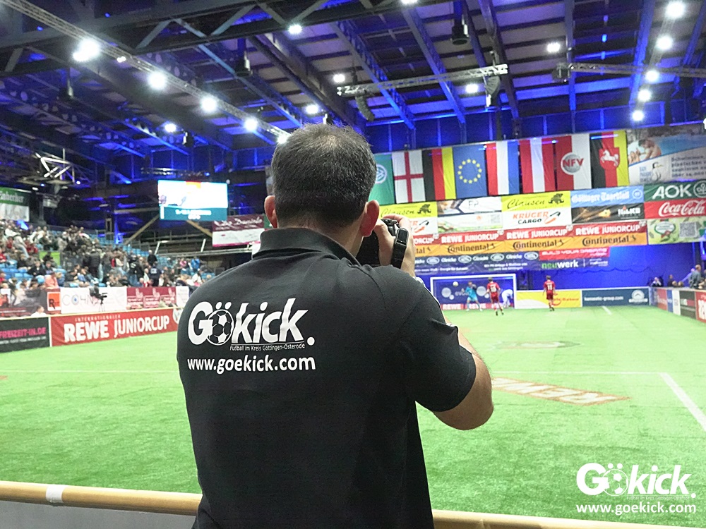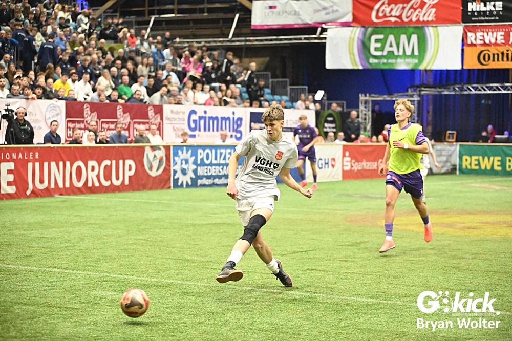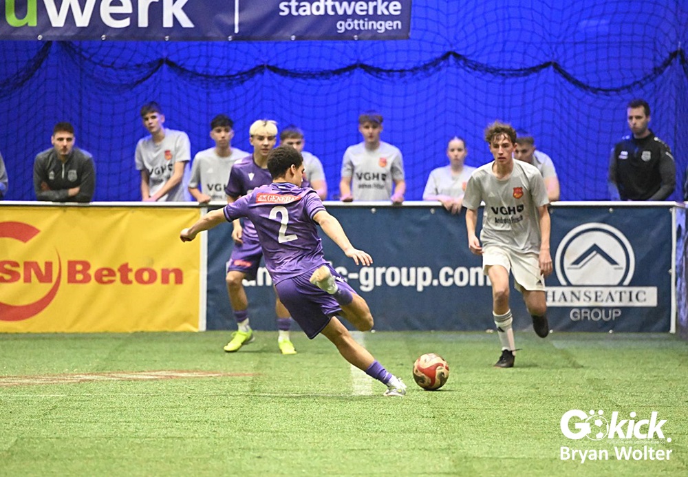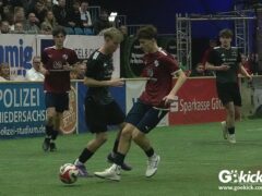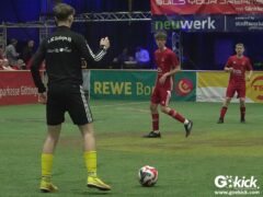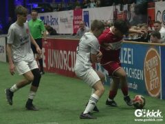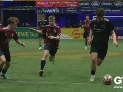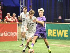 Der erste Spieltag des REWE JUNIORCUPs 2025 ist Geschichte. Das Schneechaos am Nachmittag und die damit verzögerte Anreise von Hannover 96 sorgten für eine Änderung des Spielplans und einen um eine Stunde verzögerten Beginn der Veranstaltung. Doch in der warmen Halle und bei guter Stimmung mit leckerer Verpflegung war der Abend ohne Verstimmungen auszuhalten. Der erste Tag brachte dann auch gleich die erste, kleinere Überraschung. In der TSN-Beton-Gruppe gelang es dem Landesligisten JFV 37 Göttingen, dem englischen Gast FC Fulham, beim 3:3 einen Punkt abzuknöpfen.
