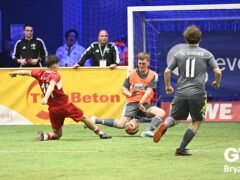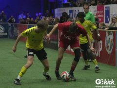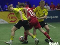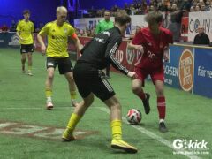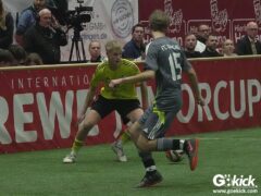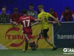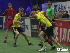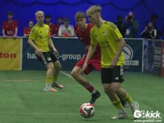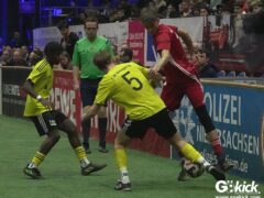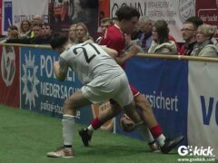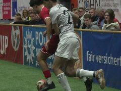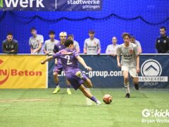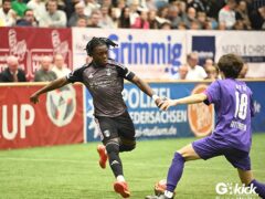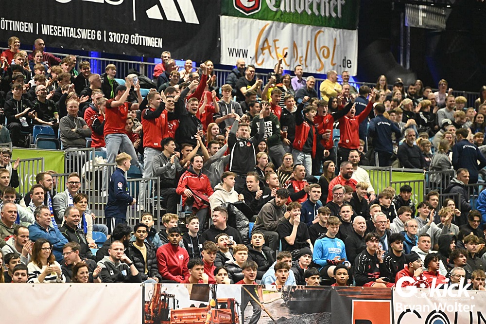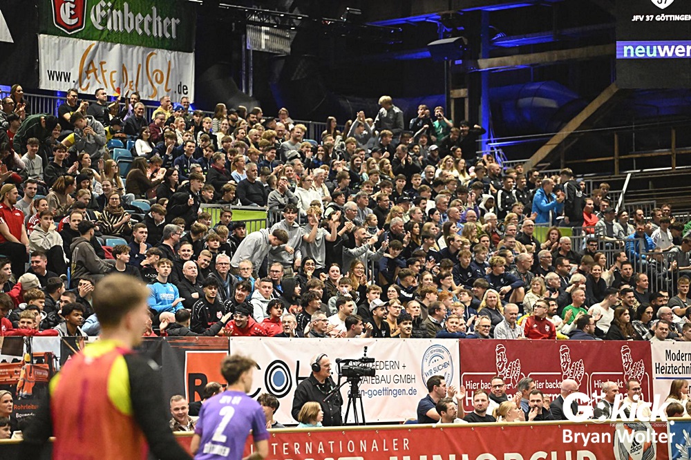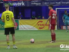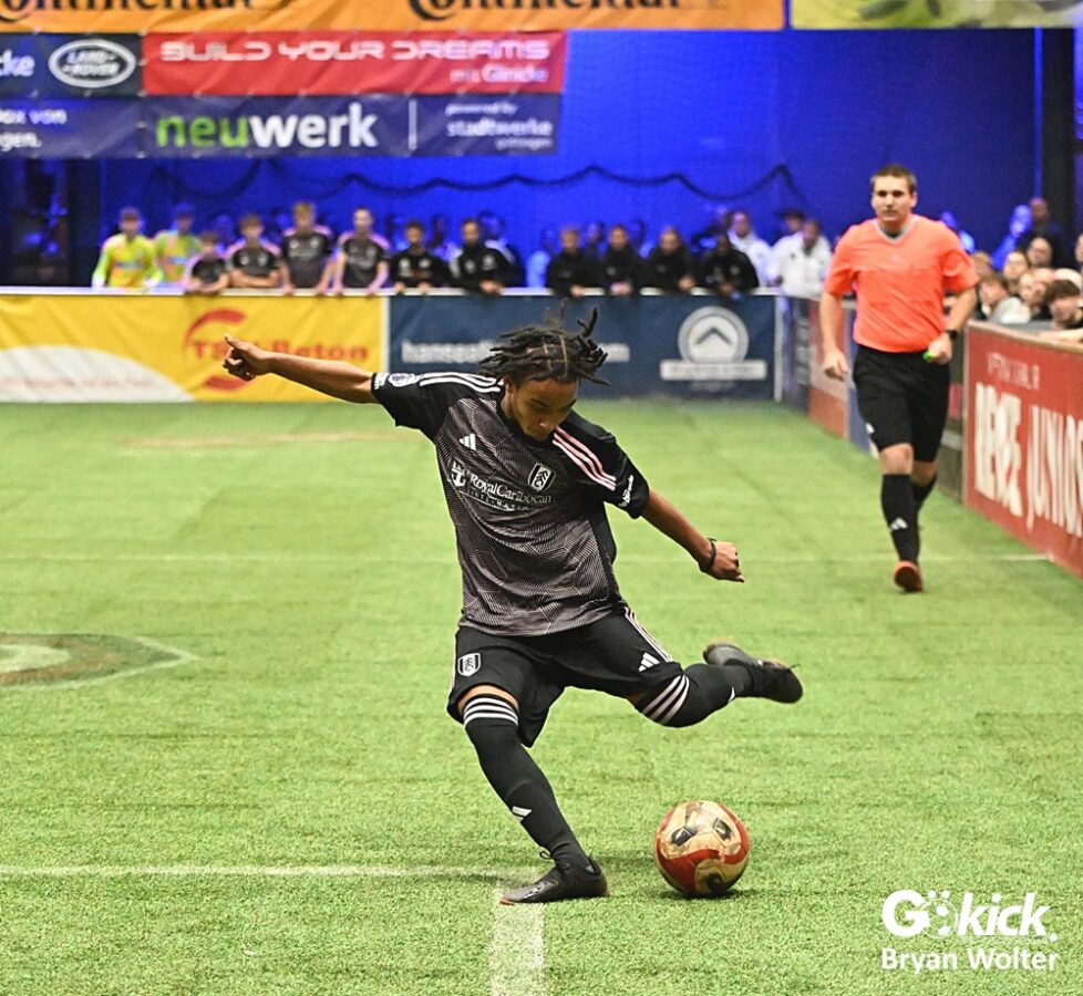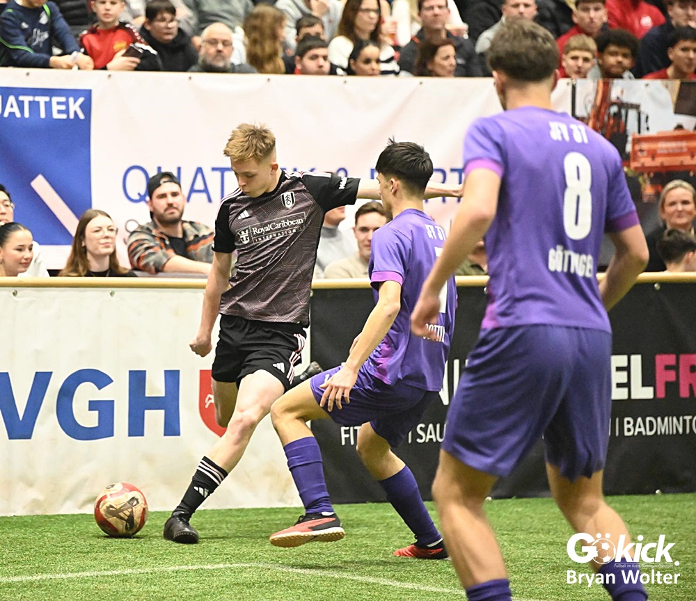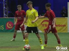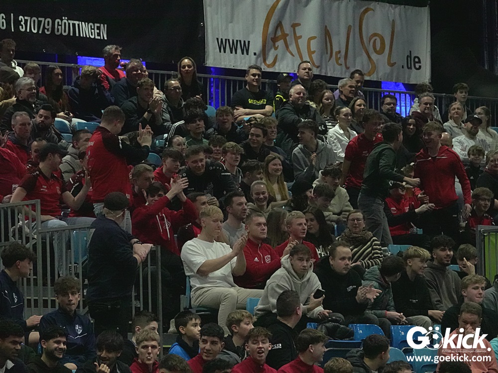 Der erste Spieltag des REWE JUNIORCUPs 2025 ist Geschichte. Das Schneechaos am Nachmittag und die damit verzögerte Anreise von Hannover 96 sorgten für eine Änderung des Spielplans und einen um eine Stunde verzögerten Beginn der Veranstaltung. Doch in der warmen Halle und bei guter Stimmung mit leckerer Verpflegung war der Abend ohne Verstimmungen auszuhalten. Der erste Tag brachte dann auch gleich die erste, kleinere Überraschung. In der TSN-Beton-Gruppe gelang es dem Landesligisten JFV 37 Göttingen, dem englischen Gast FC Fulham, beim 3:3 einen Punkt abzuknöpfen.