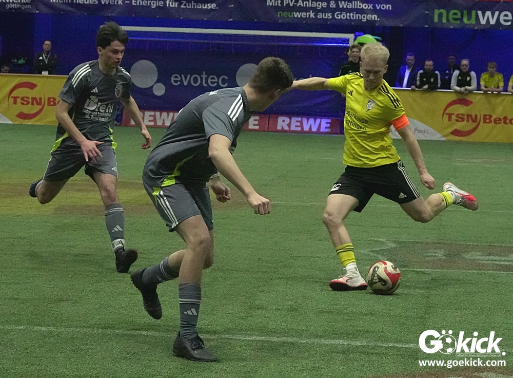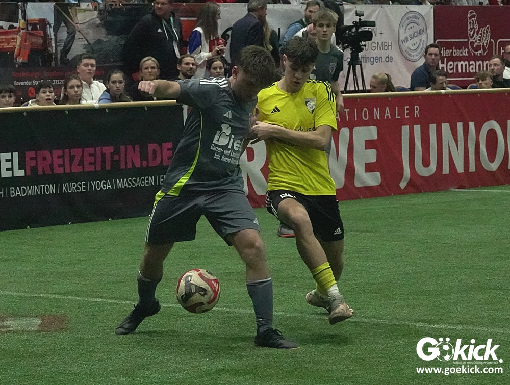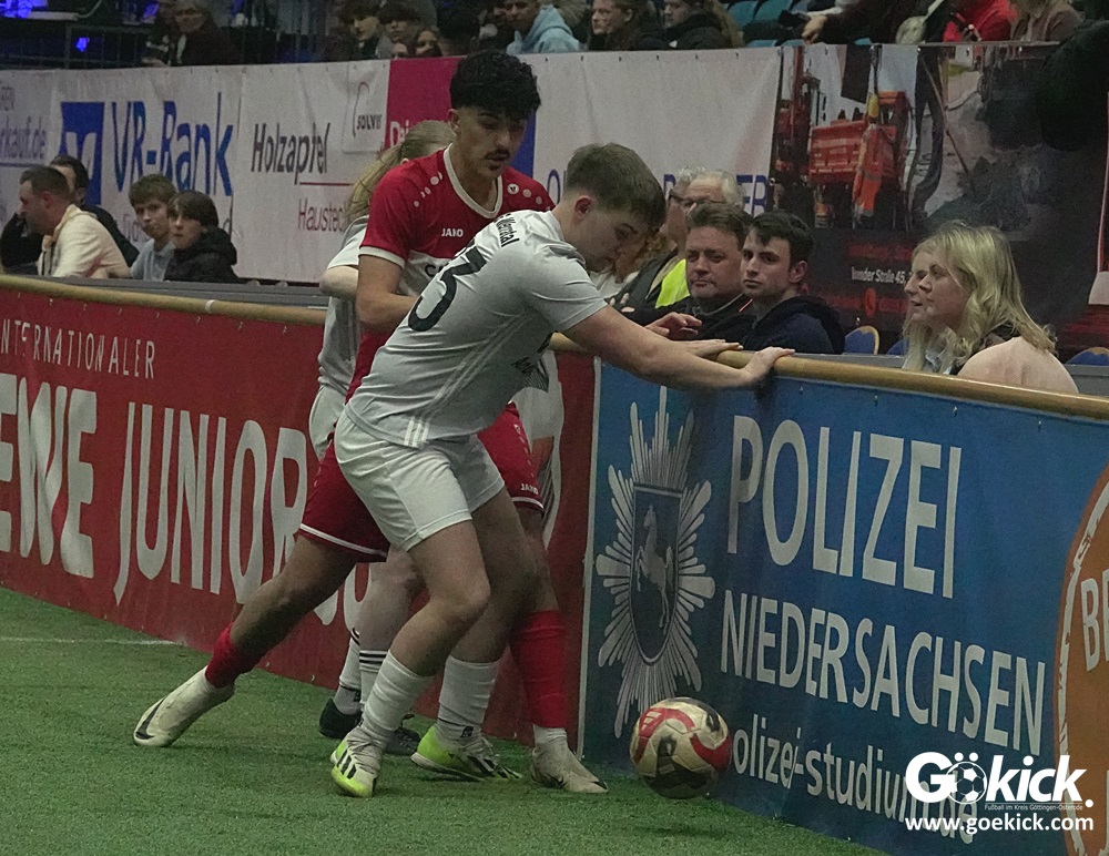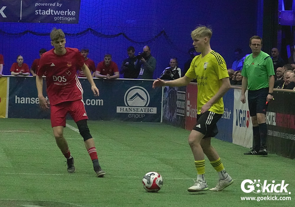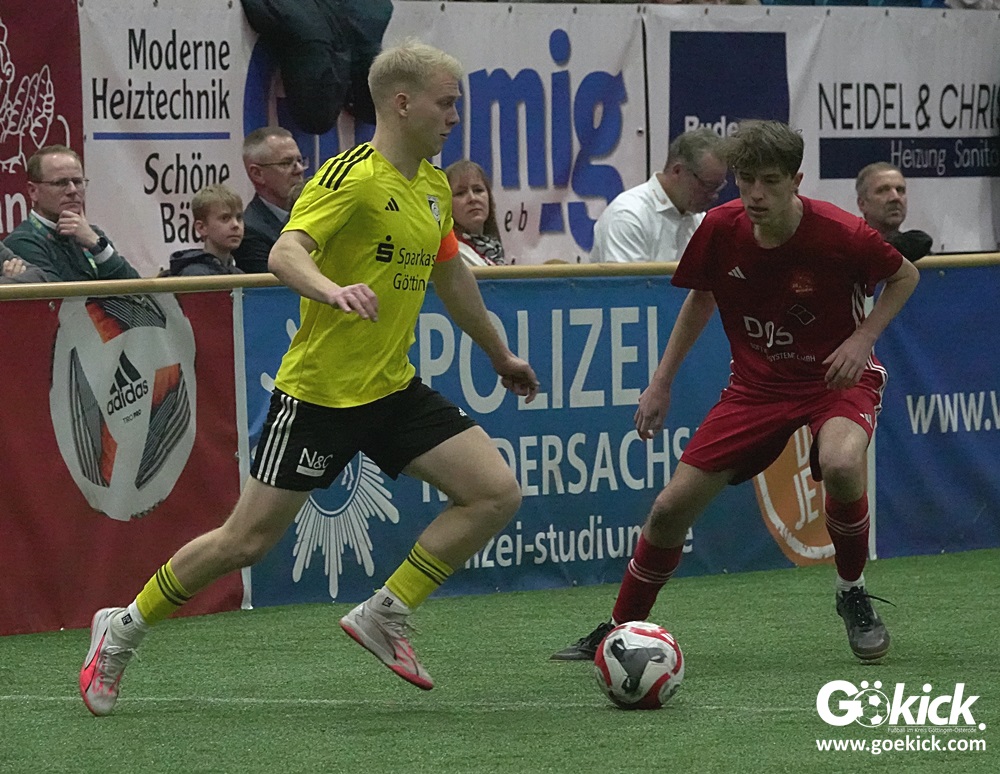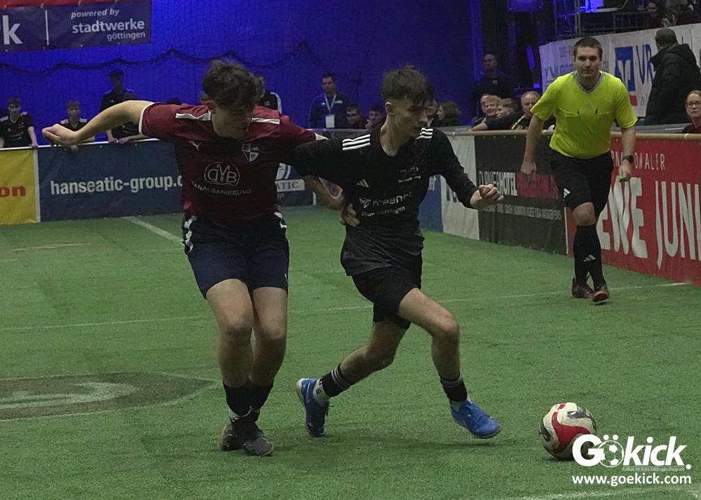 VfR Dostluk Osterode: Die 1:5-Niederlage zum Auftakt für den Turnierneuling gegen die SG Werratal war zwar ärgerlich, doch durchaus noch zu verkraften. Doch im zweiten Spiel in der Geschichte des Turniers gab es dann gleich den ersten Sieg. Die Jungs vom Harzrand siegten mit 2:0 gegen den Bezirksligisten FC Gleichen. Die Chancen auf die Zwischenrunde sind dennoch nur gering.