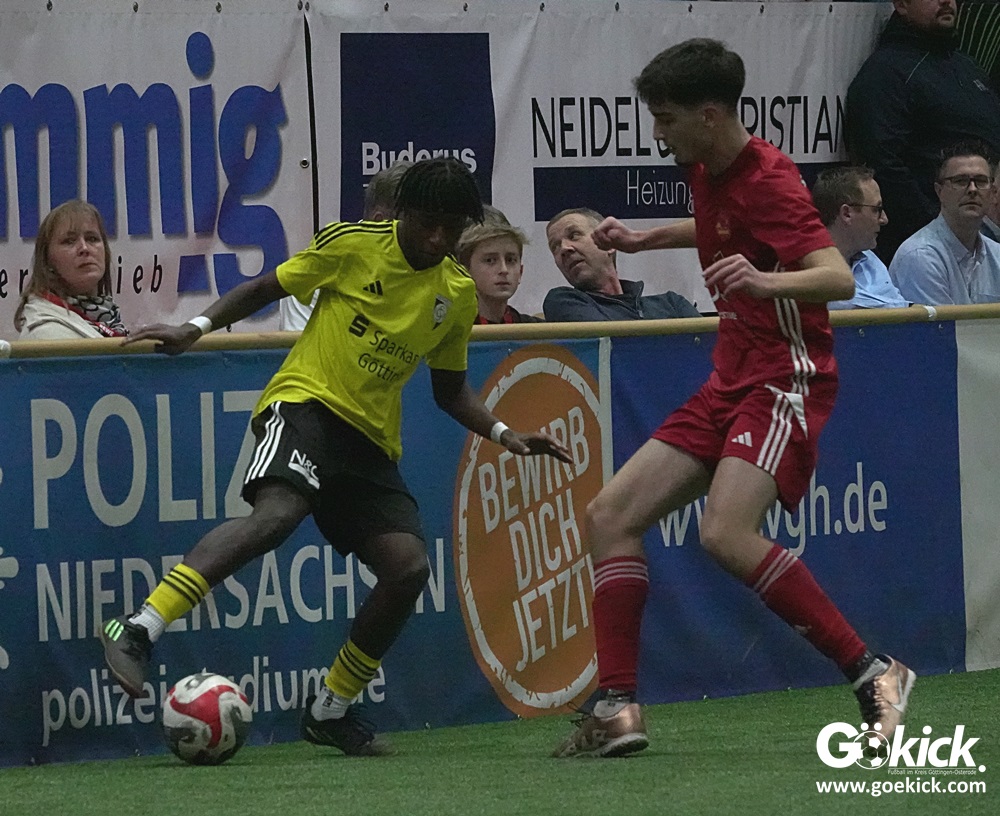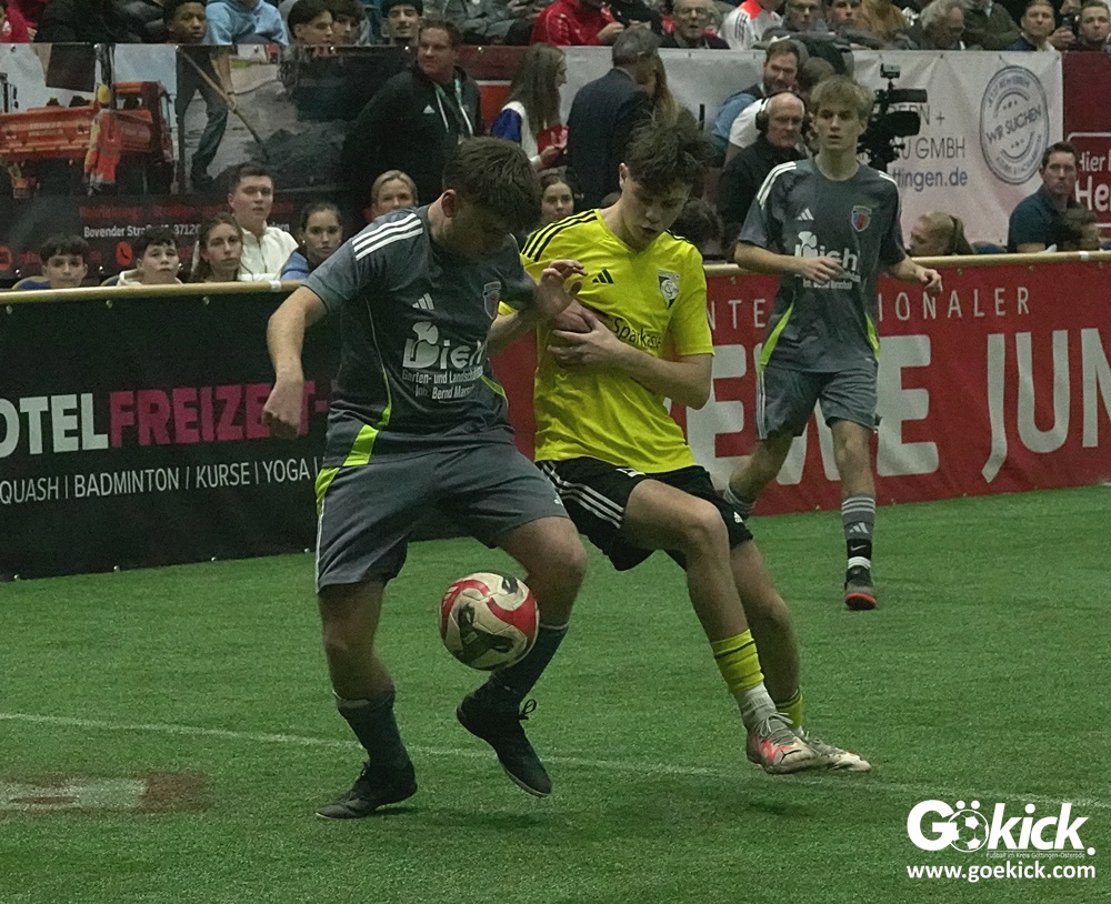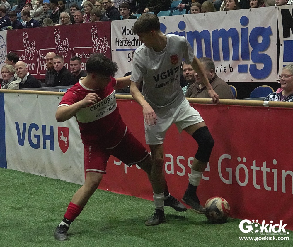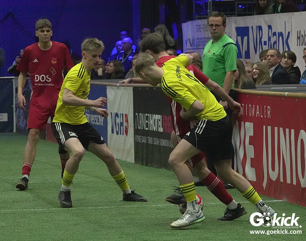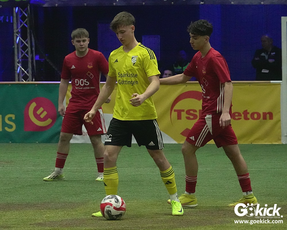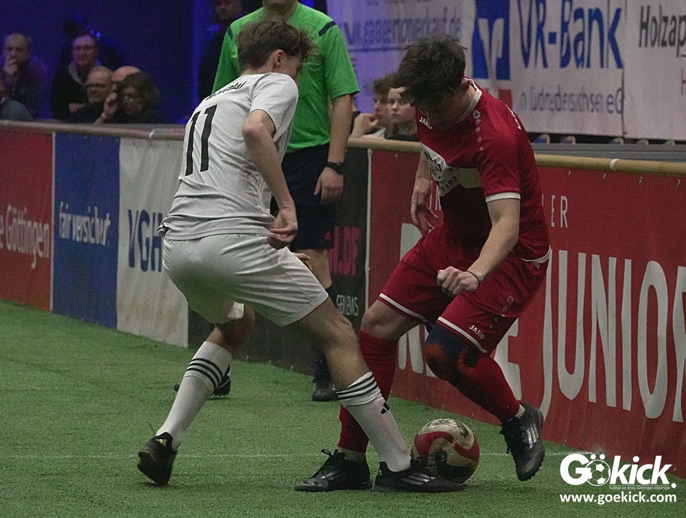 VfR Dostluk Osterode: Die 1:5-Niederlage zum Auftakt für den Turnierneuling gegen die SG Werratal war zwar ärgerlich, doch durchaus noch zu verkraften. Doch im zweiten Spiel in der Geschichte des Turniers gab es dann gleich den ersten Sieg. Die Jungs vom Harzrand siegten mit 2:0 gegen den Bezirksligisten FC Gleichen. Die Chancen auf die Zwischenrunde sind dennoch nur gering.