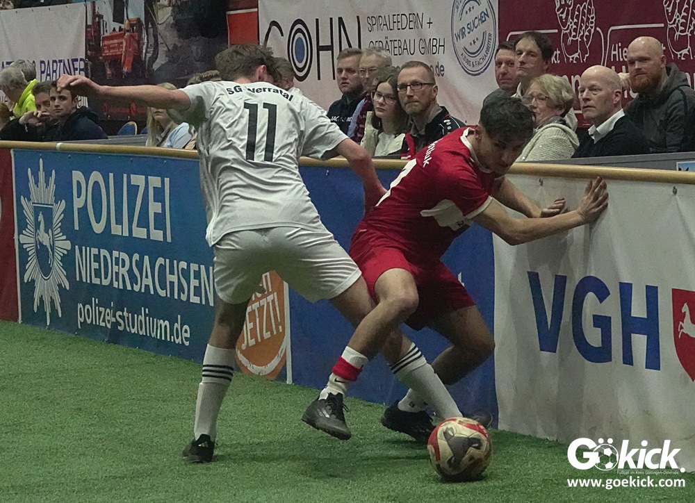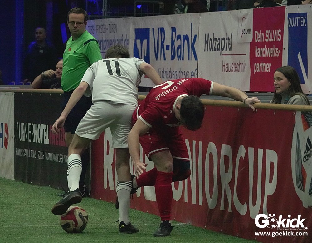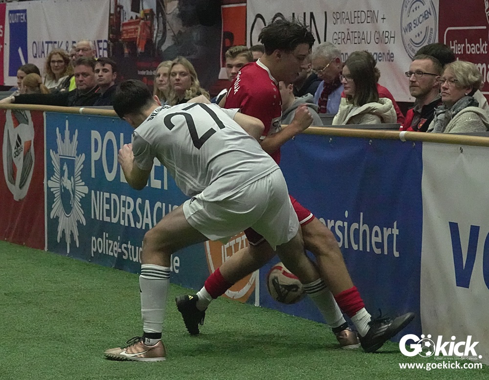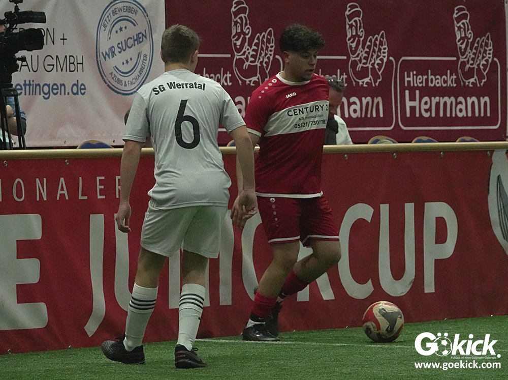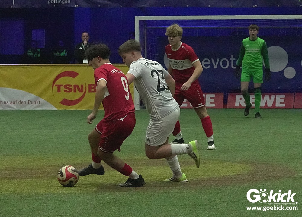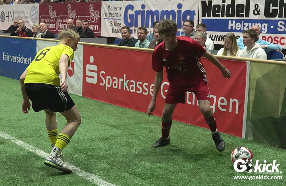 VfR Dostluk Osterode: Die 1:5-Niederlage zum Auftakt für den Turnierneuling gegen die SG Werratal war zwar ärgerlich, doch durchaus noch zu verkraften. Doch im zweiten Spiel in der Geschichte des Turniers gab es dann gleich den ersten Sieg. Die Jungs vom Harzrand siegten mit 2:0 gegen den Bezirksligisten FC Gleichen. Die Chancen auf die Zwischenrunde sind dennoch nur gering.