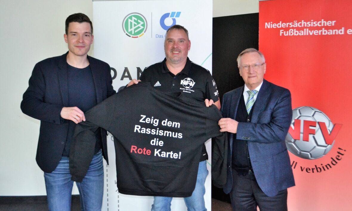Nachdem Dennis Eckhardt als Kreisieger bei der Aktion "Danke Schiri" im Dezember 2021 vom Kreis Northeim/Einbeck ausgezeichnet wurde, wurde er nun auch durch den Bezirk Braunschweig zum Sieger in der Katogorie U 50 gekürt. Mit der Auszeichnung verbunden war auch eine Einladung zur Verbandsveranstaltung im Pressehaus Heise "Das Örtliche" in Hannover. Dort wurden die Sieger vom Verbands-SR-Obmann Bernd Domurat, in Anwesenheit des NFV-Vorsitzenden Günter Distelrath und dem Geschäftsführer des Heiseverlag sowie dem Bundesligaschiedsrichter Harm Osmers, ausgezeichnet. Aus dem Kreis der vier Bezirkssieger in der Altersstufe U 50 wurde Dennis Eckhardt dabei sogar als Verbandssieger ausgewählt. Hierdurch wird als Vertreter Niedersachsens mit den Verbandssiegern Frauen und Ü 50 am 08.05.2022 zur DFB-Ehrung nach Frankfurt reisen. An diesem Tag wird in Anwesenheit aller Verbandssieger aus ganz Deutschland das Schiedsrichtergespann mit sämtlichen Landessiegern beflockt mit den Namen auf dem Rücken das Bundesligaspiel Eintracht Frankfurt- Borussia Mönchengladbach leiten.