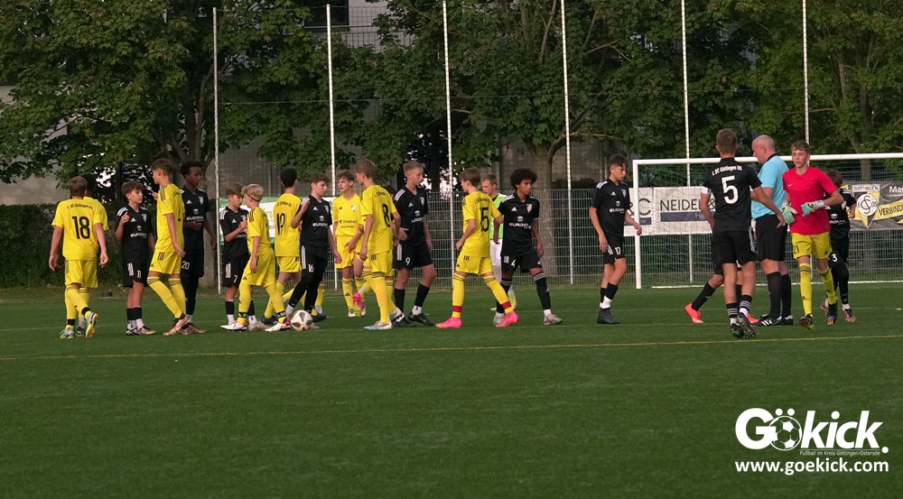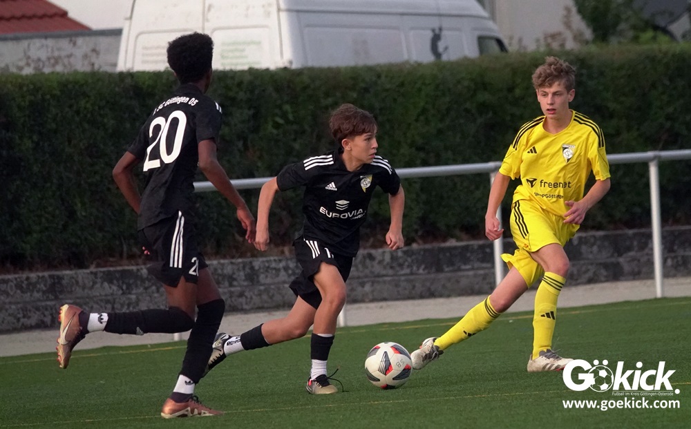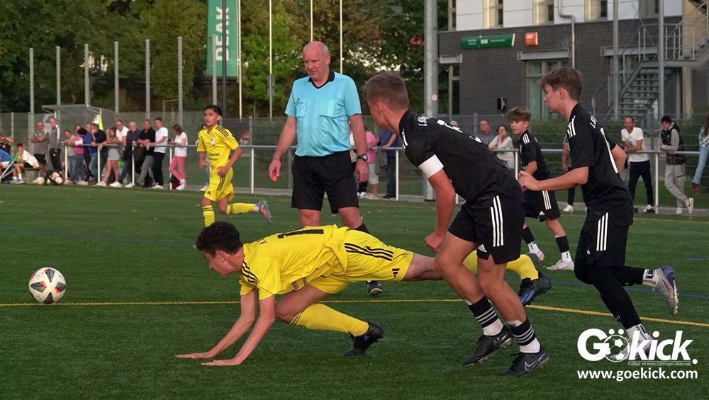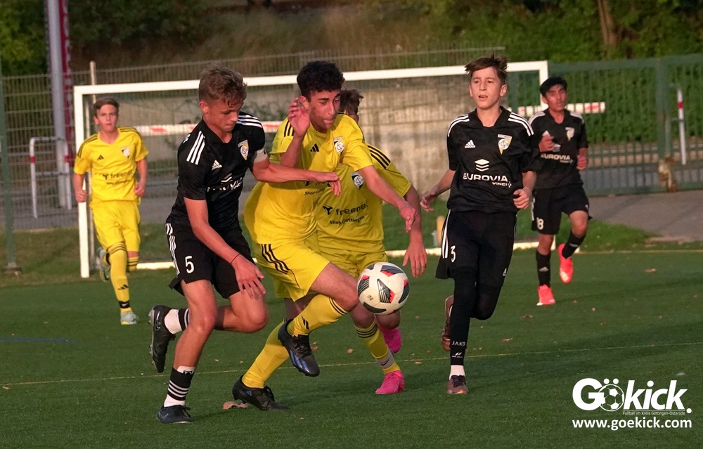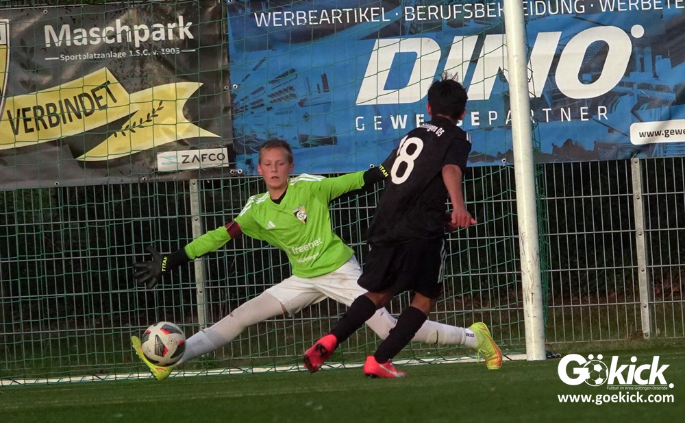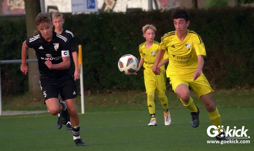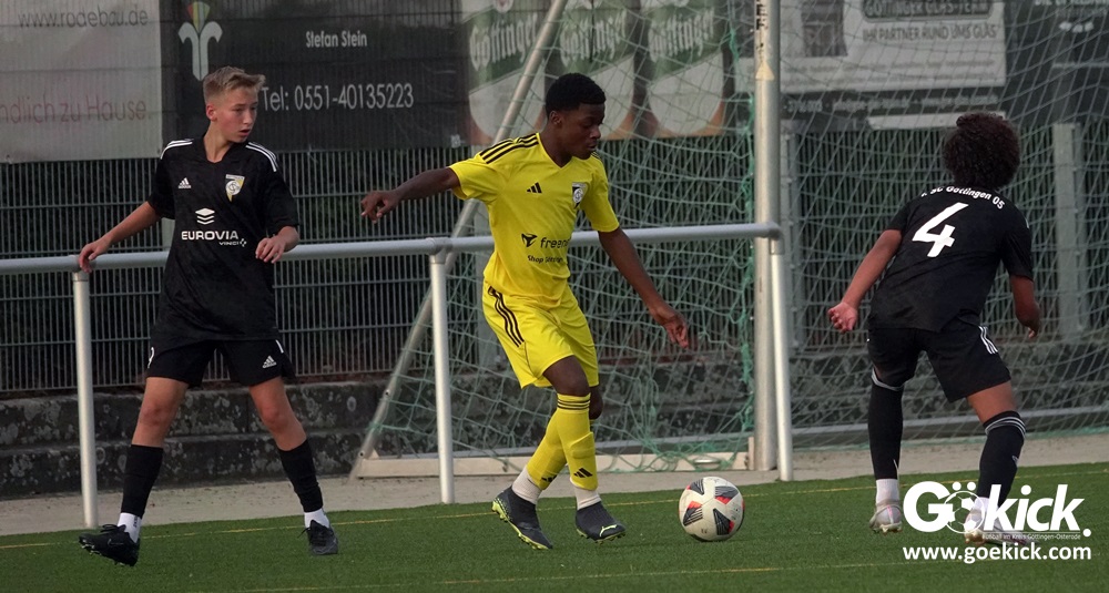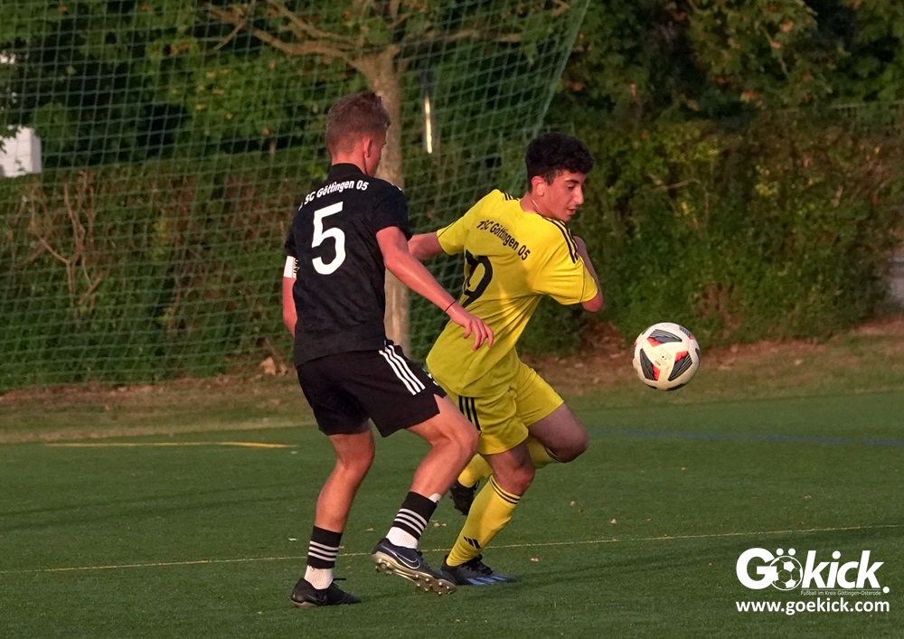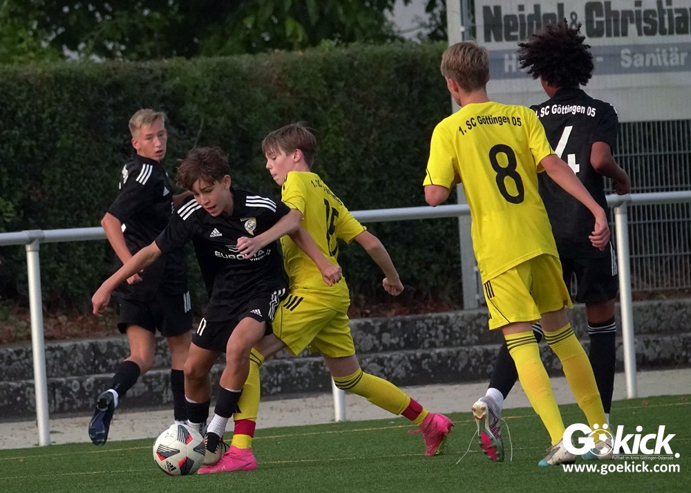 Am Montag vor dem Tag der Deutschen Einheit erlebten die Zuschauer auf dem Kunstrasenplatz der städtischen Sportanlage Maschpark im C-Jugend-Bezirkspokal das Aufeinandertreffen der beiden Teams des 1. SC Göttingen 05 im direkten Duell. Die U14 aus der Bezirksliga war der Gastgeber für die U15 aus der Landesliga. Am Ende siegte vor etwa 90 Zuschauern der ältere Jahrgang standesgemäß mit 9:0 (2:0) und steht damit in der 4. Pokal-Runde, dem Achtelfinale.