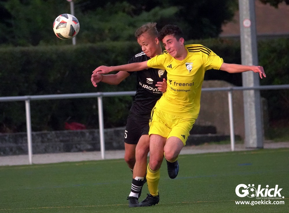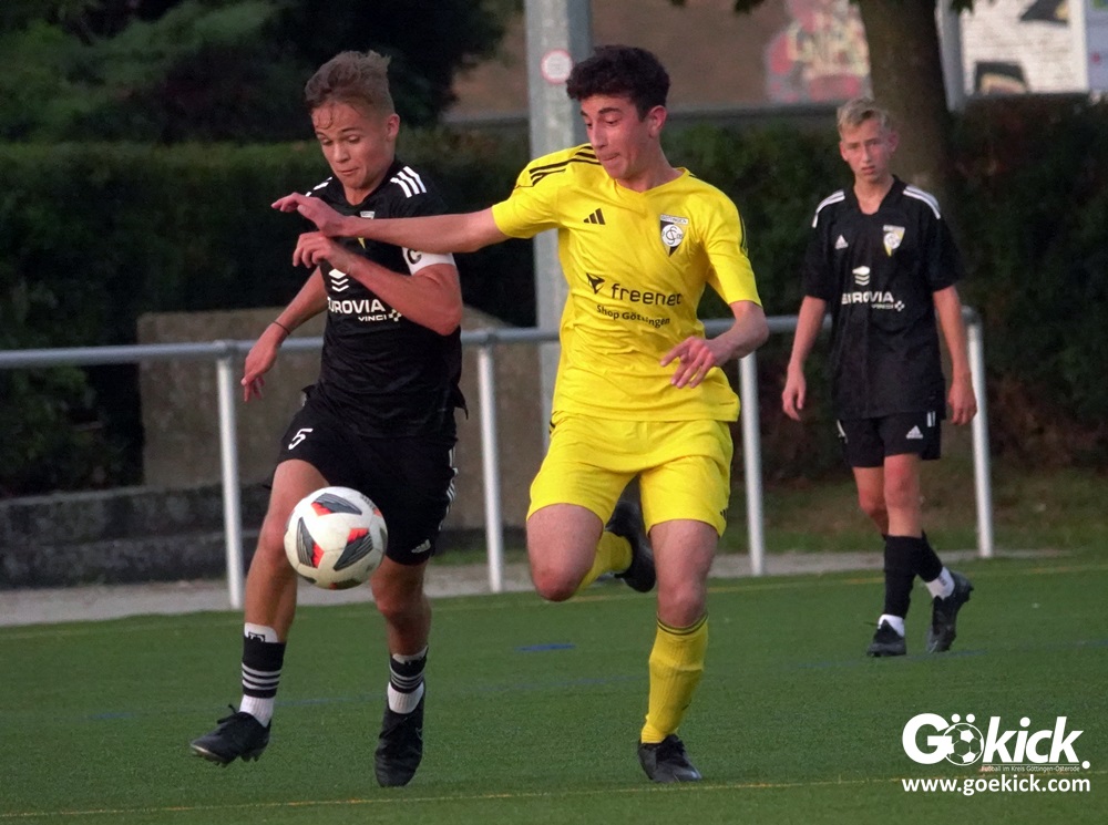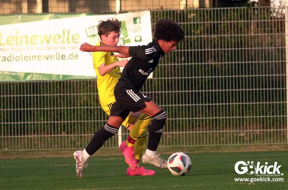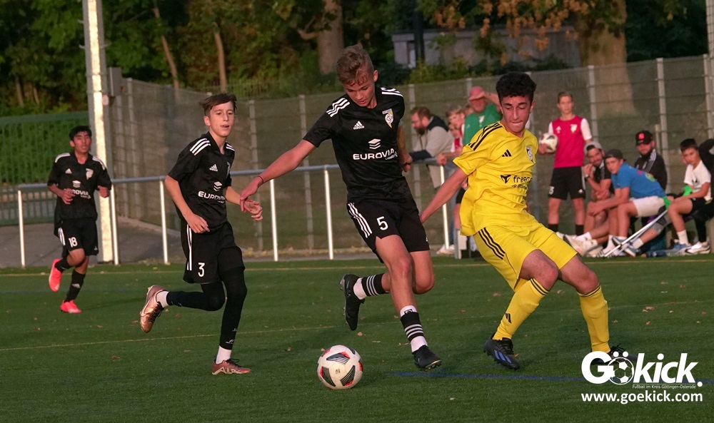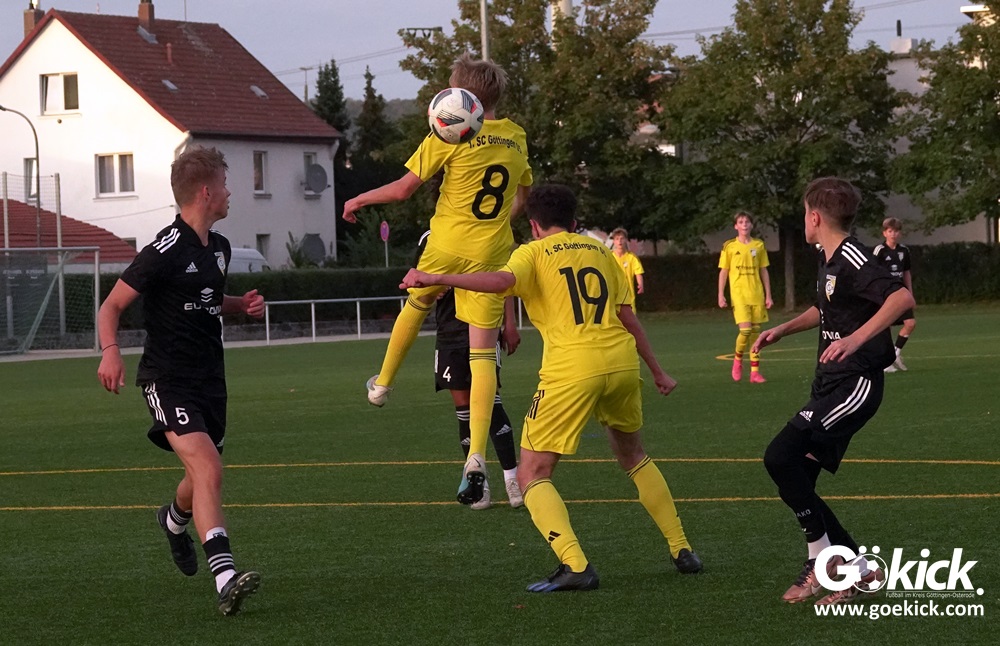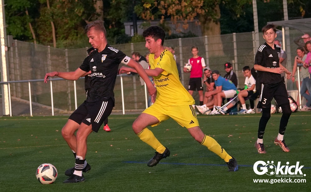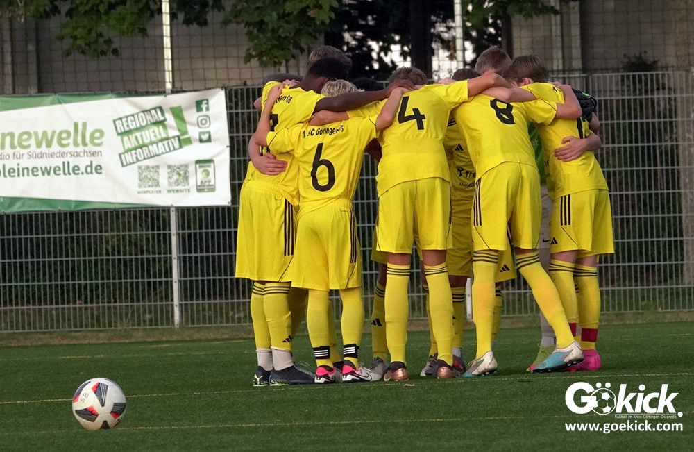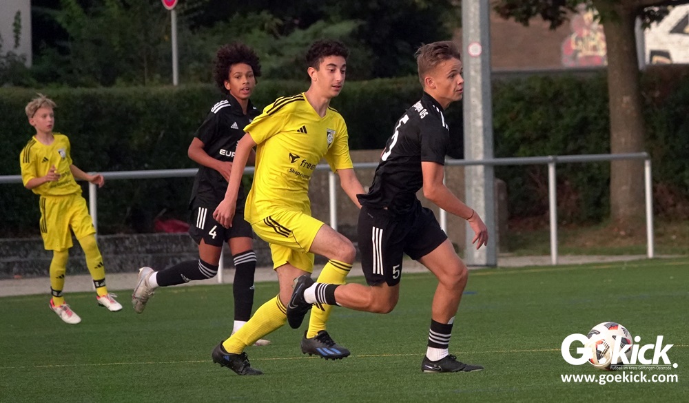 Am Montag vor dem Tag der Deutschen Einheit erlebten die Zuschauer auf dem Kunstrasenplatz der städtischen Sportanlage Maschpark im C-Jugend-Bezirkspokal das Aufeinandertreffen der beiden Teams des 1. SC Göttingen 05 im direkten Duell. Die U14 aus der Bezirksliga war der Gastgeber für die U15 aus der Landesliga. Am Ende siegte vor etwa 90 Zuschauern der ältere Jahrgang standesgemäß mit 9:0 (2:0) und steht damit in der 4. Pokal-Runde, dem Achtelfinale.