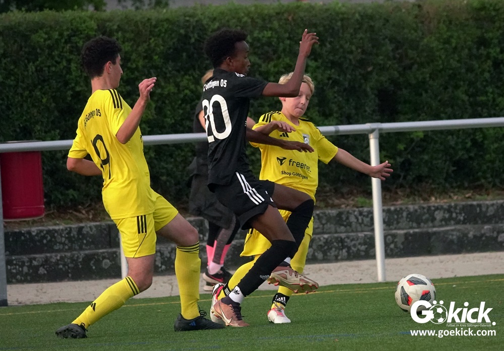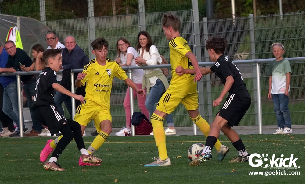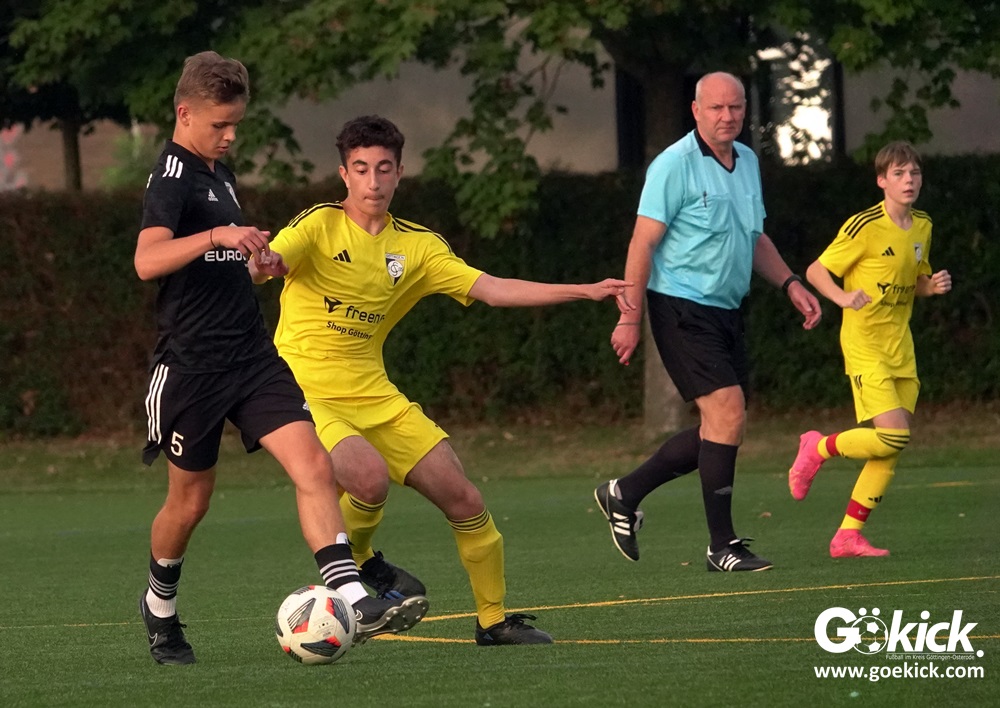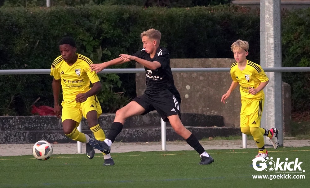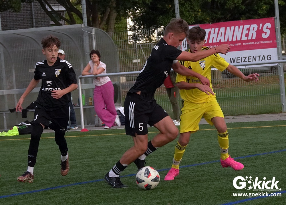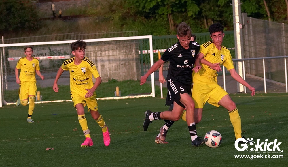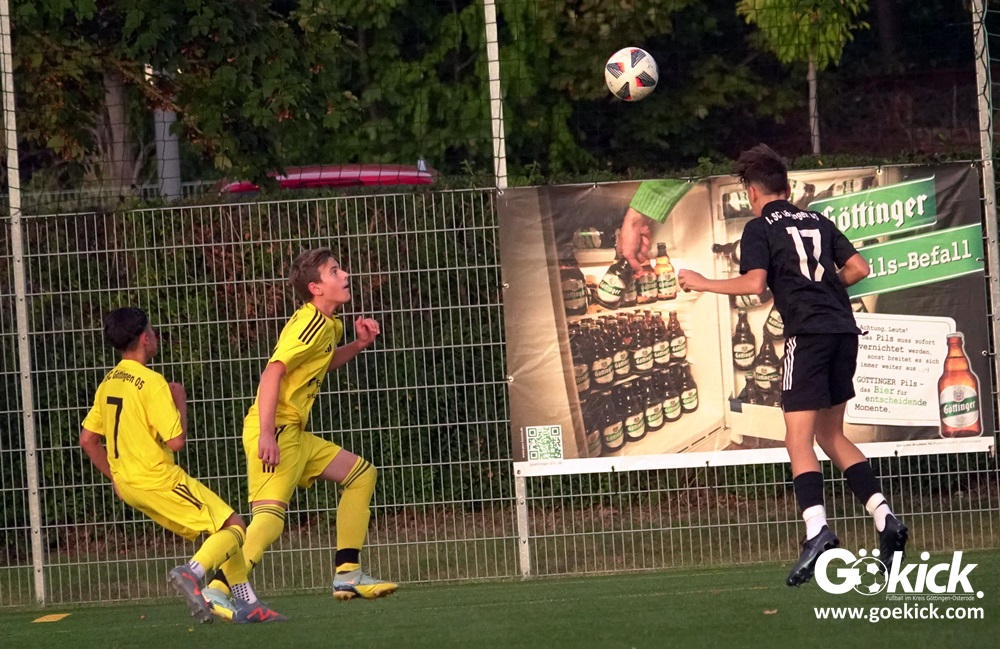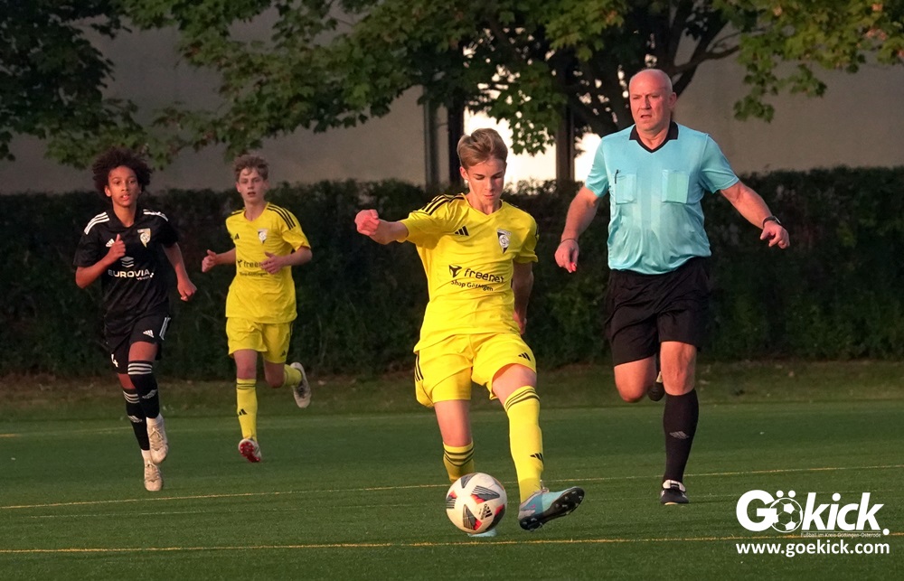 Am Montag vor dem Tag der Deutschen Einheit erlebten die Zuschauer auf dem Kunstrasenplatz der städtischen Sportanlage Maschpark im C-Jugend-Bezirkspokal das Aufeinandertreffen der beiden Teams des 1. SC Göttingen 05 im direkten Duell. Die U14 aus der Bezirksliga war der Gastgeber für die U15 aus der Landesliga. Am Ende siegte vor etwa 90 Zuschauern der ältere Jahrgang standesgemäß mit 9:0 (2:0) und steht damit in der 4. Pokal-Runde, dem Achtelfinale.