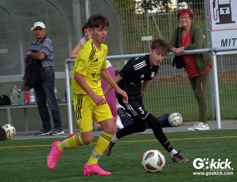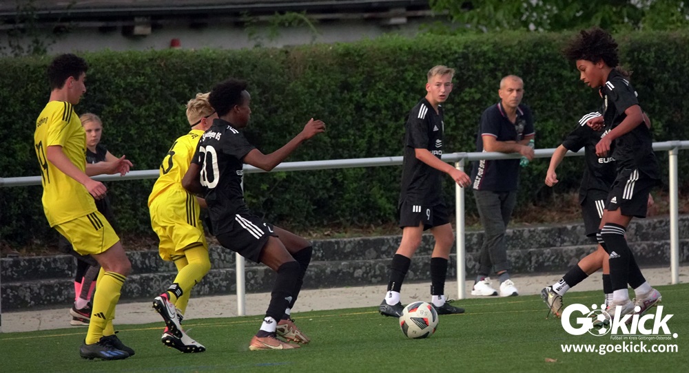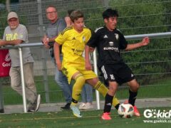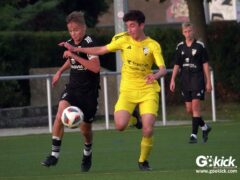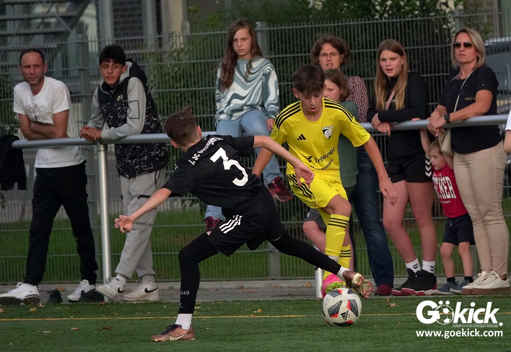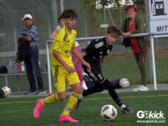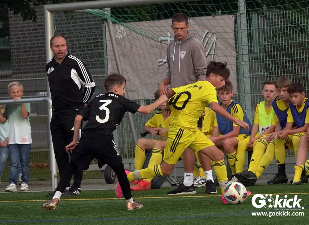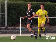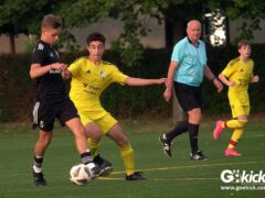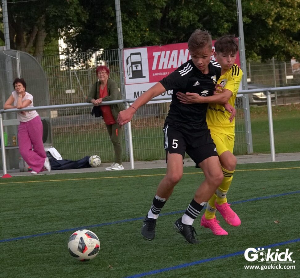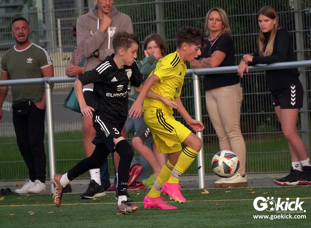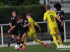 So deutlich das Ergebnis am Ende ausfiel, so kurios war der Verlauf der Partie. Mit dem ersten Angriff erzielte der Regionalliga-Absteiger auch gleich die Führung durch Tom Leonhard Kunze (1.). Anschließend entwickelte sich ein Spiel, in dem der Außenseiter den Favoriten mehr ärgerte, als erwartet. Obwohl die U15 naturgemäß das Spiel bestimmte, war der jüngere Jahrgang vom Trainerduo Dimitrios Avdoulidis und Luca Uhlendorff mit seinen Kontern immer wieder gefährlich. Nach 16 Minuten traf die U14 sogar den Pfosten des Tores der U15. Doch praktisch mit dem Halbzeitpfiff musste der „Gastgeber“ das 0:2 durch Philipp Overkamp schlucken (35.).